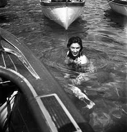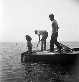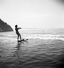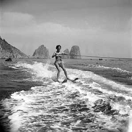 Neg- RETROSPETTIVA GRAZIELLA LONARDI BUONTEMPO MECENATE E COLLEZIONISTA D'ARTE NELLA FOTO AL MARE SULL'ISOLA DI CAPRI NELL'ANNO 1950 MENTRE FA SCI NAUTICO AG ALDO LIVERANI SAS