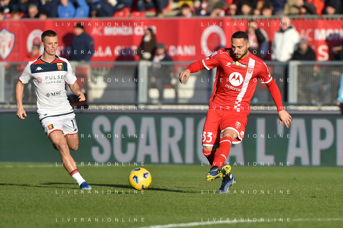 TVRG Monza vs Genoa nella foto Andrea Colpani (Monza) e Ridgeciano Haps (Genoa) Monza 10-12-2023 U-Power Stadium Campionato Serie A TIM - 15a giornata foto Roberto Garavaglia/ag. Aldo Liverani sas/ AGENZIA ALDO LIVERANI SAS