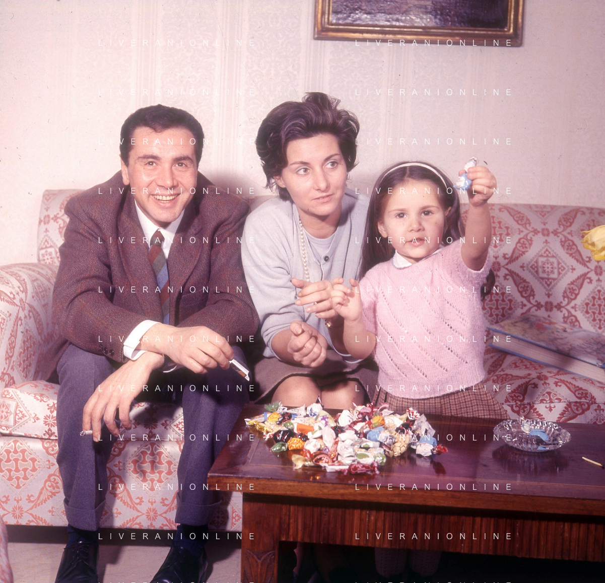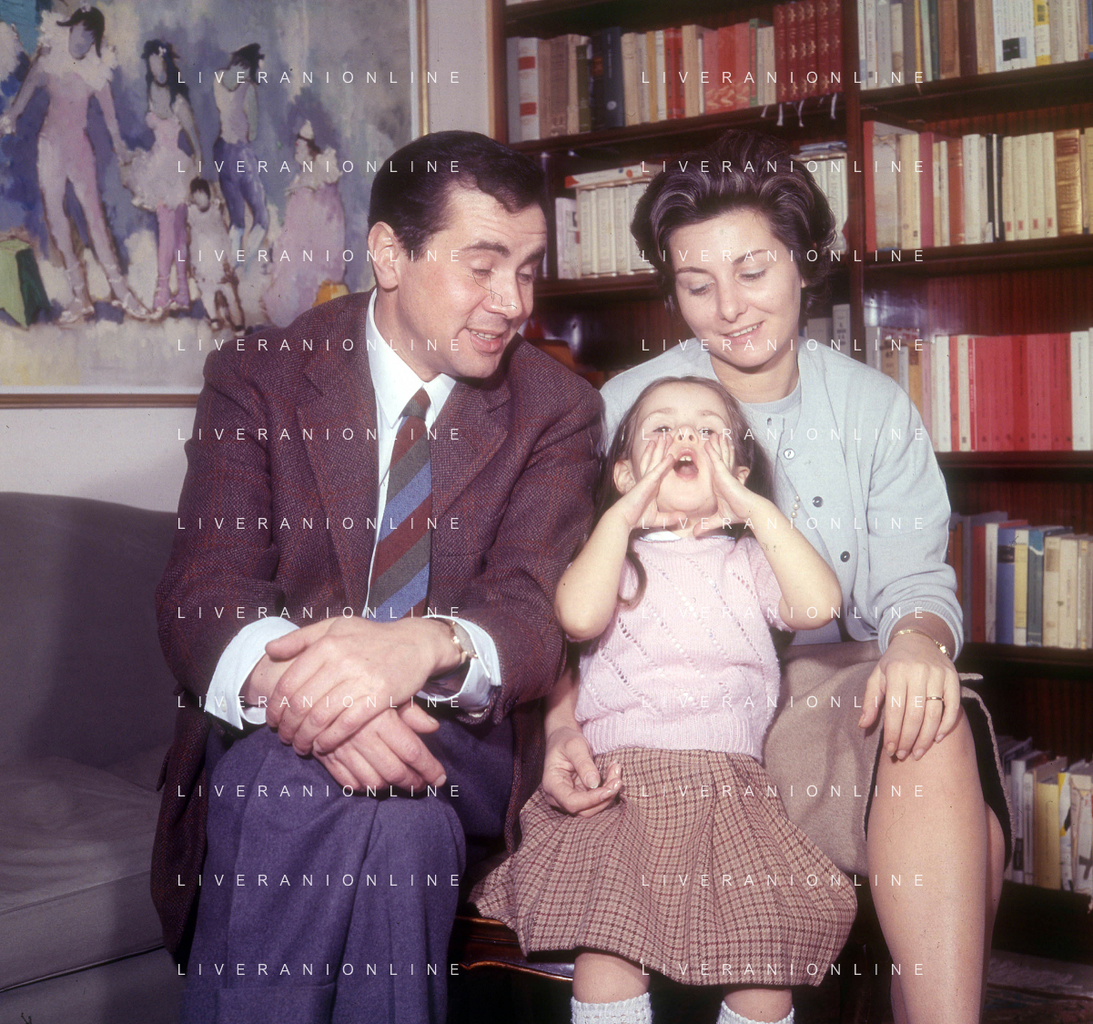 COL-RETROSPETTIVA ENZO TORTORA PRESNTATORE TELEVISIVO-GIORNALISTA E POLITICO NELLA FOTO ENZO TORTORA CON LA MOGLIE MIRANDA FANTACCI E LA FIGLIA SILVIA NELL'ANNO 1966 A MILANO AG ALDO LIVERANI SAS