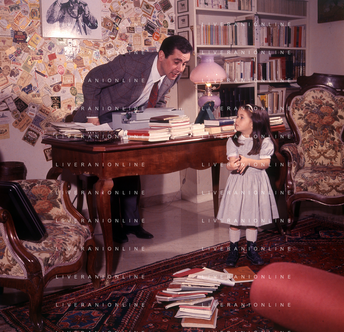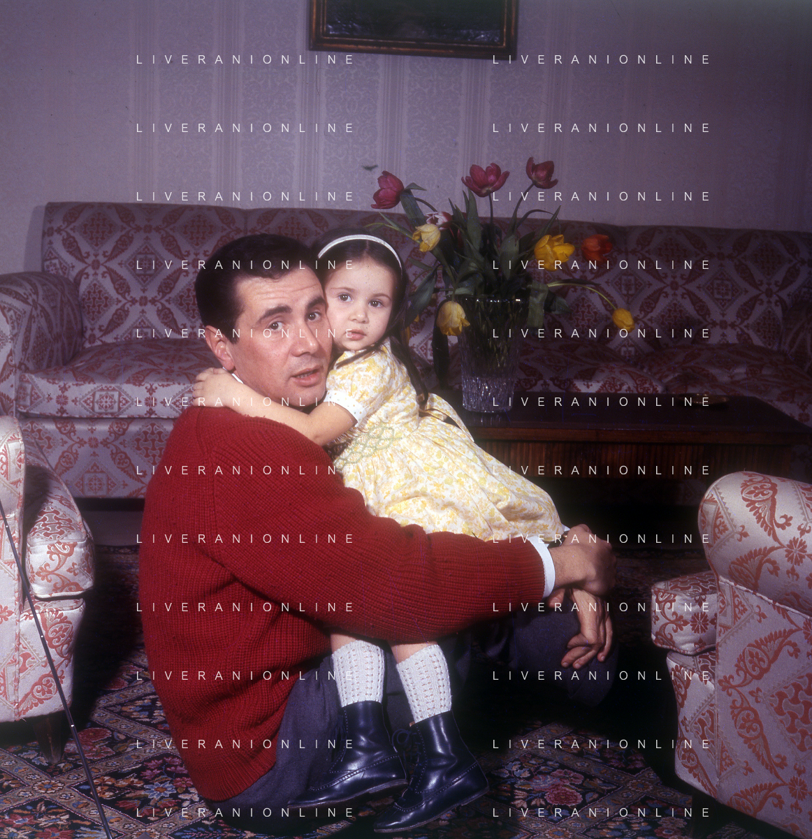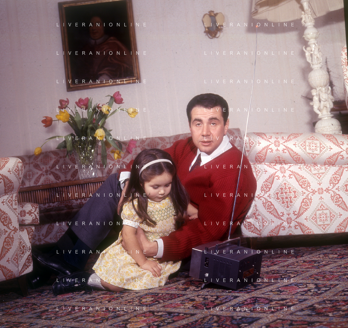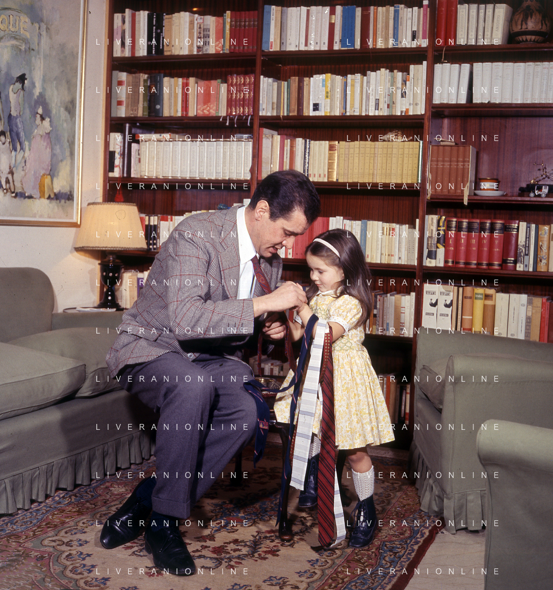 COL-RETROSPETTIVA ENZO TORTORA PRESNTATORE TELEVISIVO-GIORNALISTA E POLITICO NELLA FOTO ENZO TORTORA CON LA FIGLIA SILVIA NELL'ANNO 1966 A MILANO AG ALDO LIVERANI SAS