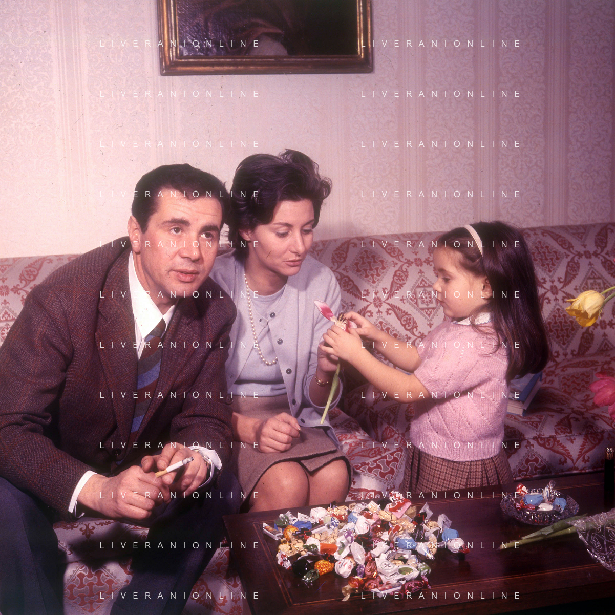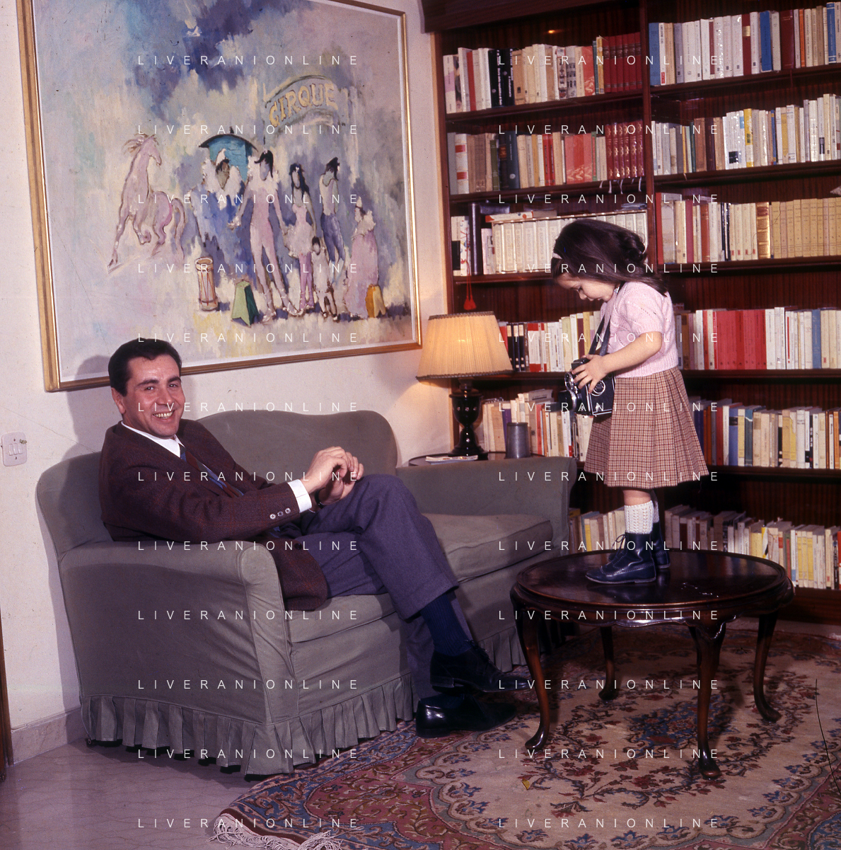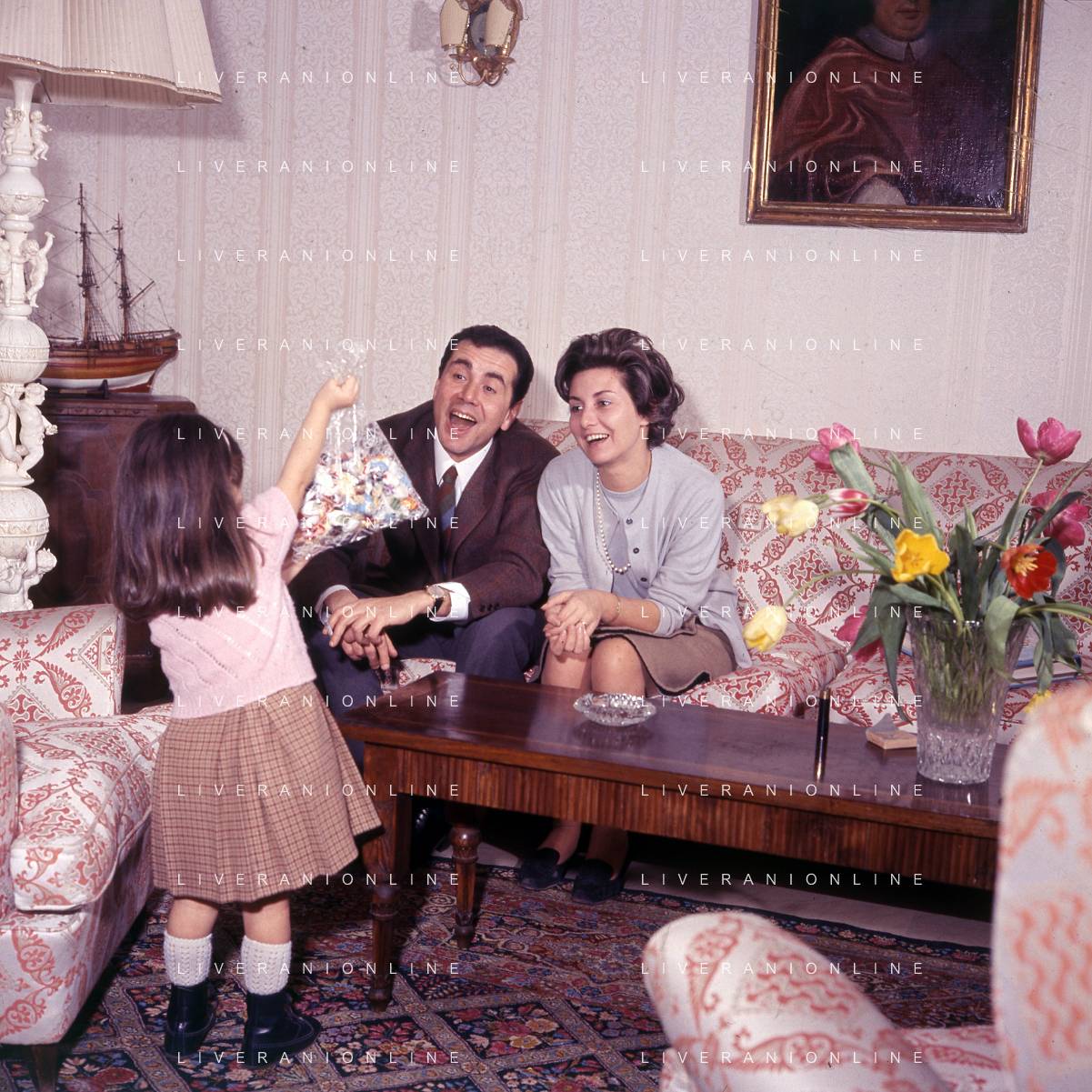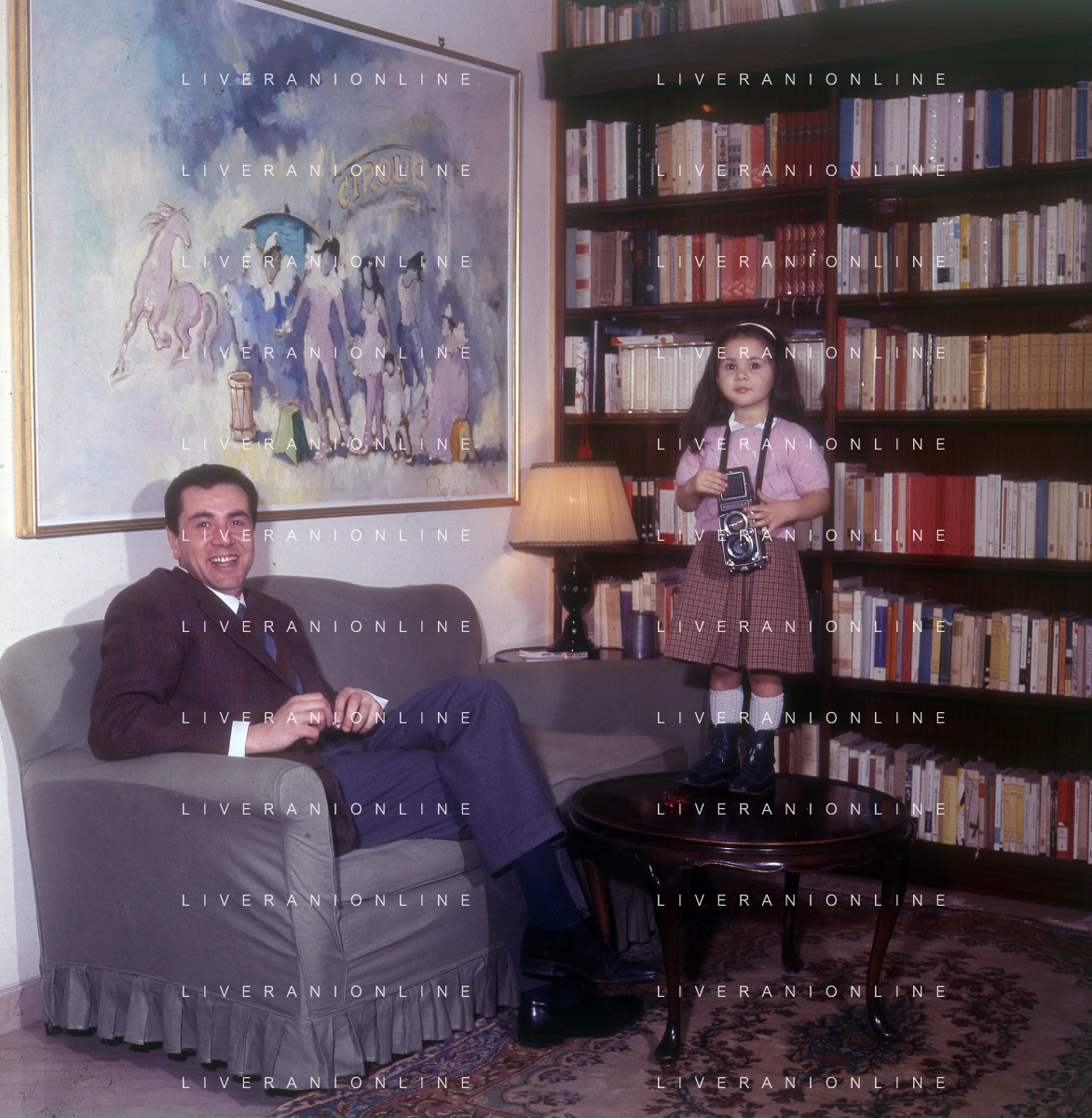 COL-RETROSPETTIVA ENZO TORTORA PRESNTATORE TELEVISIVO-GIORNALISTA E POLITICO NELLA FOTO ENZO TORTORA CON LA FIGLIA SILVIA NELL'ANNO 1966 A MILANO AG ALDO LIVERANI SAS