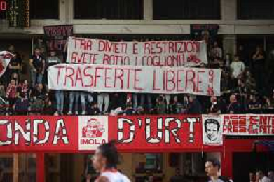 IMOLA 10 12 2023 ANDREA COSTA BASKET-OZZANO SERIE B NELLA FOTO TIFOSI DELL'ANDREA COSTA BASKET STRISCIONE FOTO GIANNI SANNA-AG ALDO LIVERANI SAS