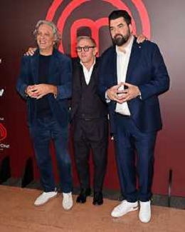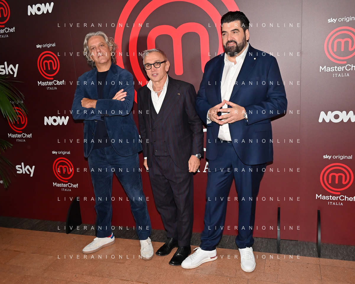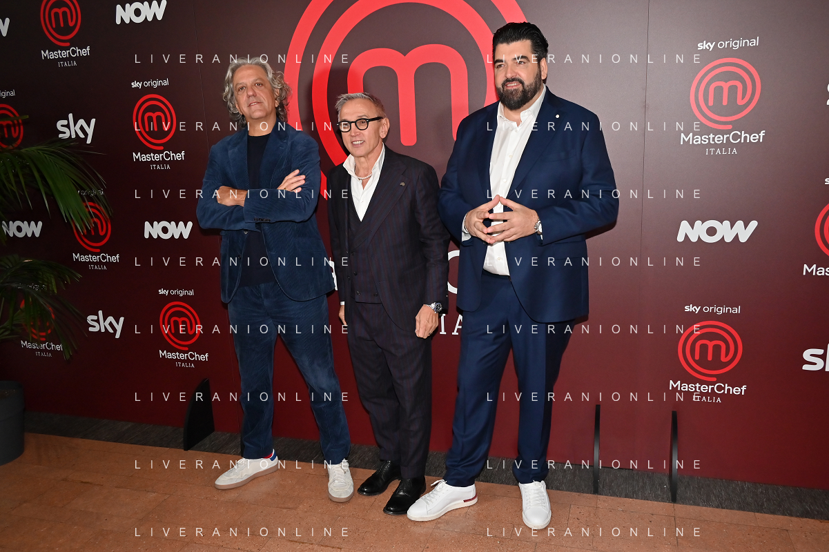 TVRG Photocall MasterChef nella foto da SX Giorgio Locatelli, Bruno Barbieri e Antonino Cannavacciuolo Milano 11-12-2023 Photocall in occasione della conferenza stampa di presentazione di MasterChef foto Roberto Garavaglia/ag. Aldo Liverani sas /AGENZIA ALDO LIVERANI SAS