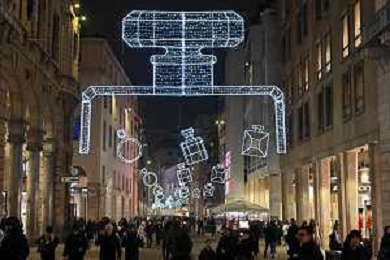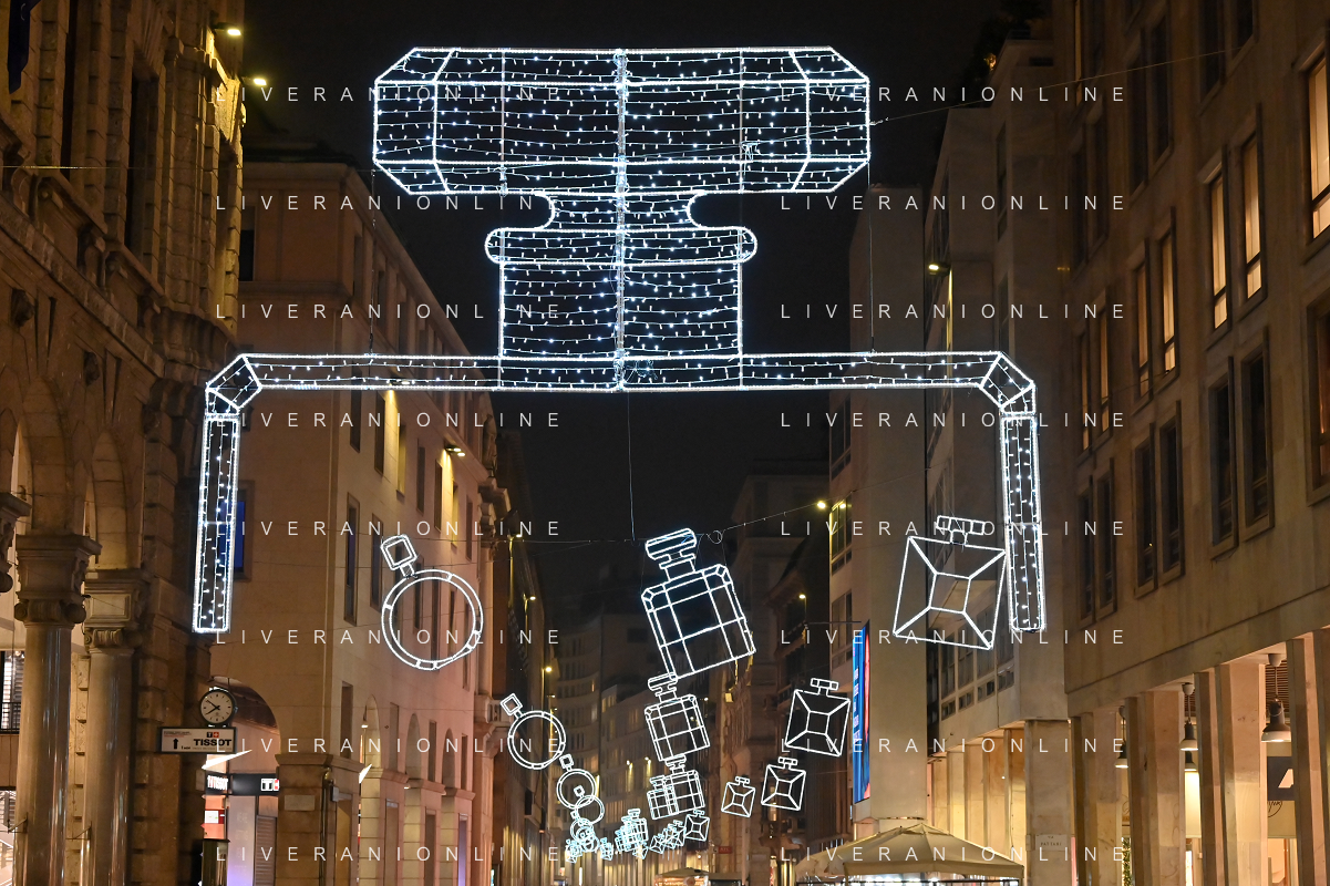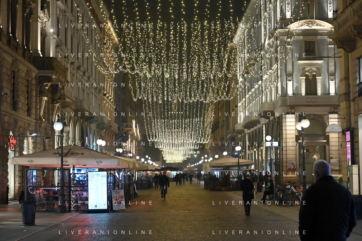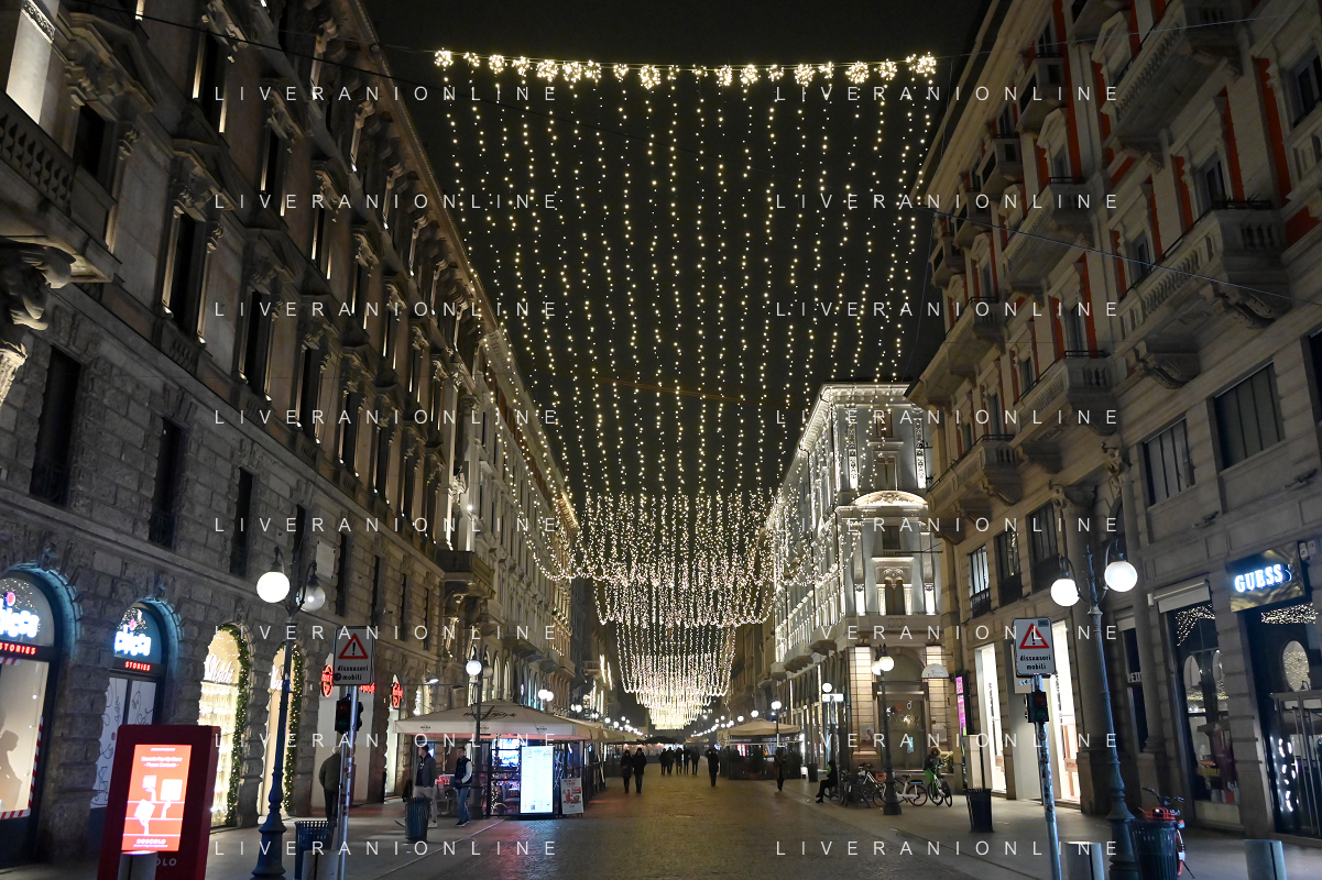 TVRG Luci Natale Milano nella foto luci in via Verri Milano 11-12-2023 Il centro citta' nel periodo delle feste di Natale foto Roberto Garavaglia/ag. Aldo Liverani sas/AGENZIA ALDO LIVERANI SAS