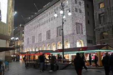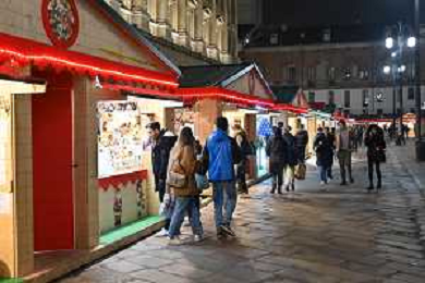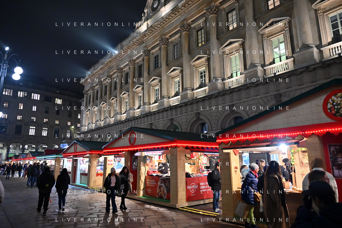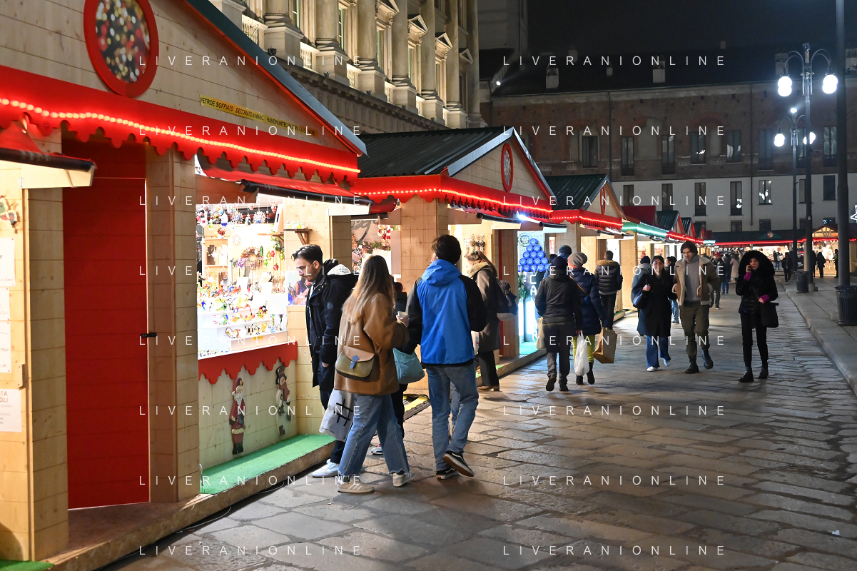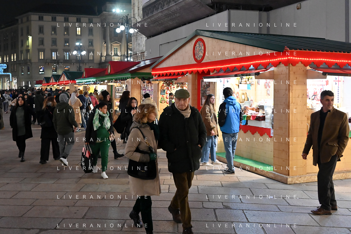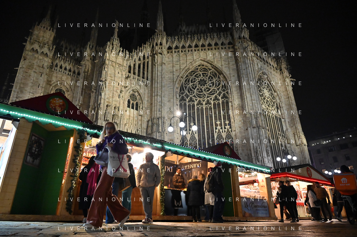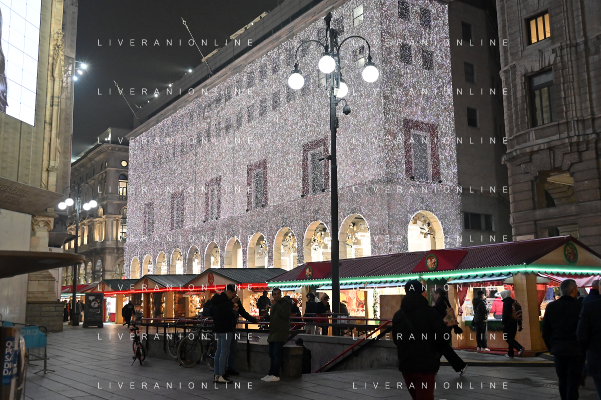 TVRG Luci Natale Milano nella foto mercatino di Natale in piazza Duomo Milano 11-12-2023 Il centro citta' nel periodo delle feste di Natale foto Roberto Garavaglia/ag. Aldo Liverani sas/AGENZIA ALDO LIVERANI SAS