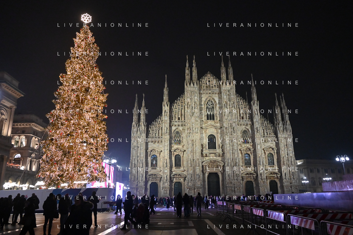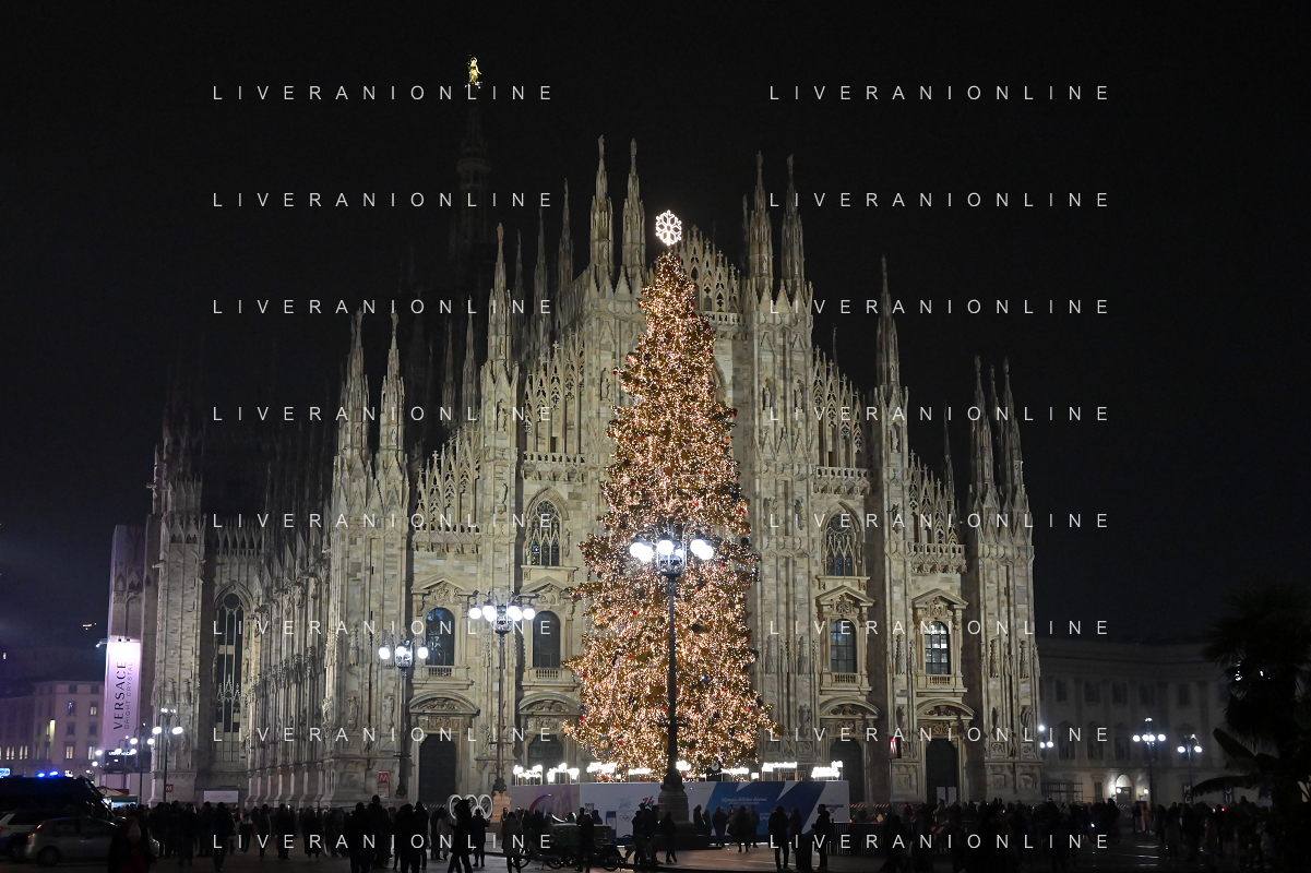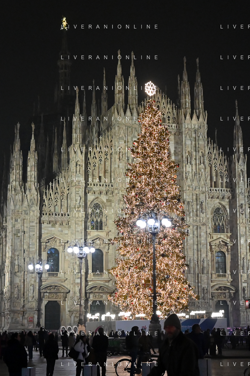 TVRG Luci Natale Milano nella foto albero di Natale in piazza Duomo Milano 11-12-2023 Il centro citta' nel periodo delle feste di Natale foto Roberto Garavaglia/ag. Aldo Liverani sas/AGENZIA ALDO LIVERANI SAS