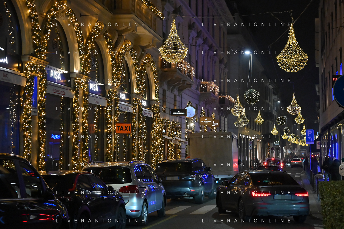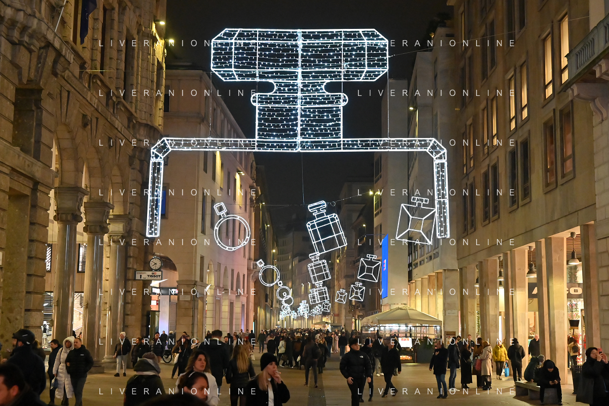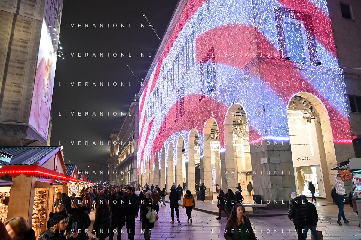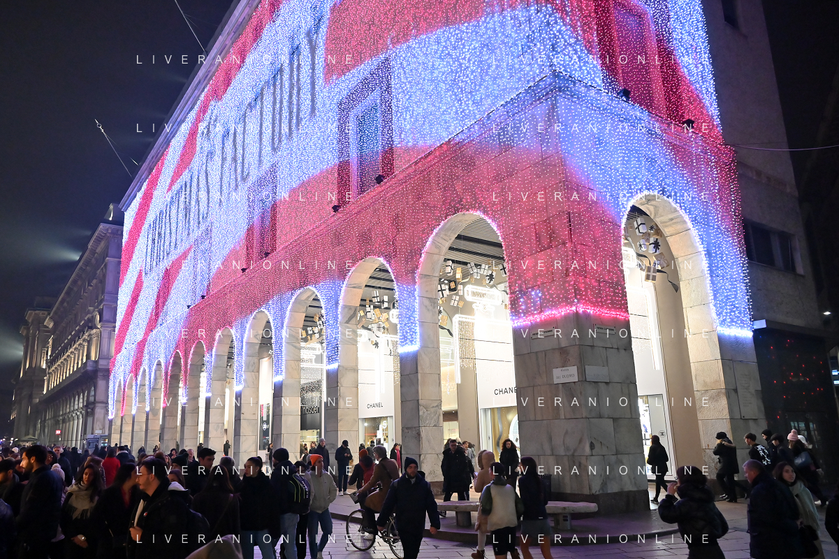 TVRG Luci Natale Milano nella foto luci in corso Vittorio Emanuele Milano 11-12-2023 Il centro citta' nel periodo delle feste di Natale foto Roberto Garavaglia/ag. Aldo Liverani sas/AGENZIA ALDO LIVERANI SAS
