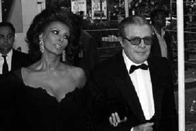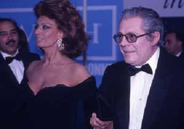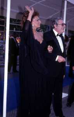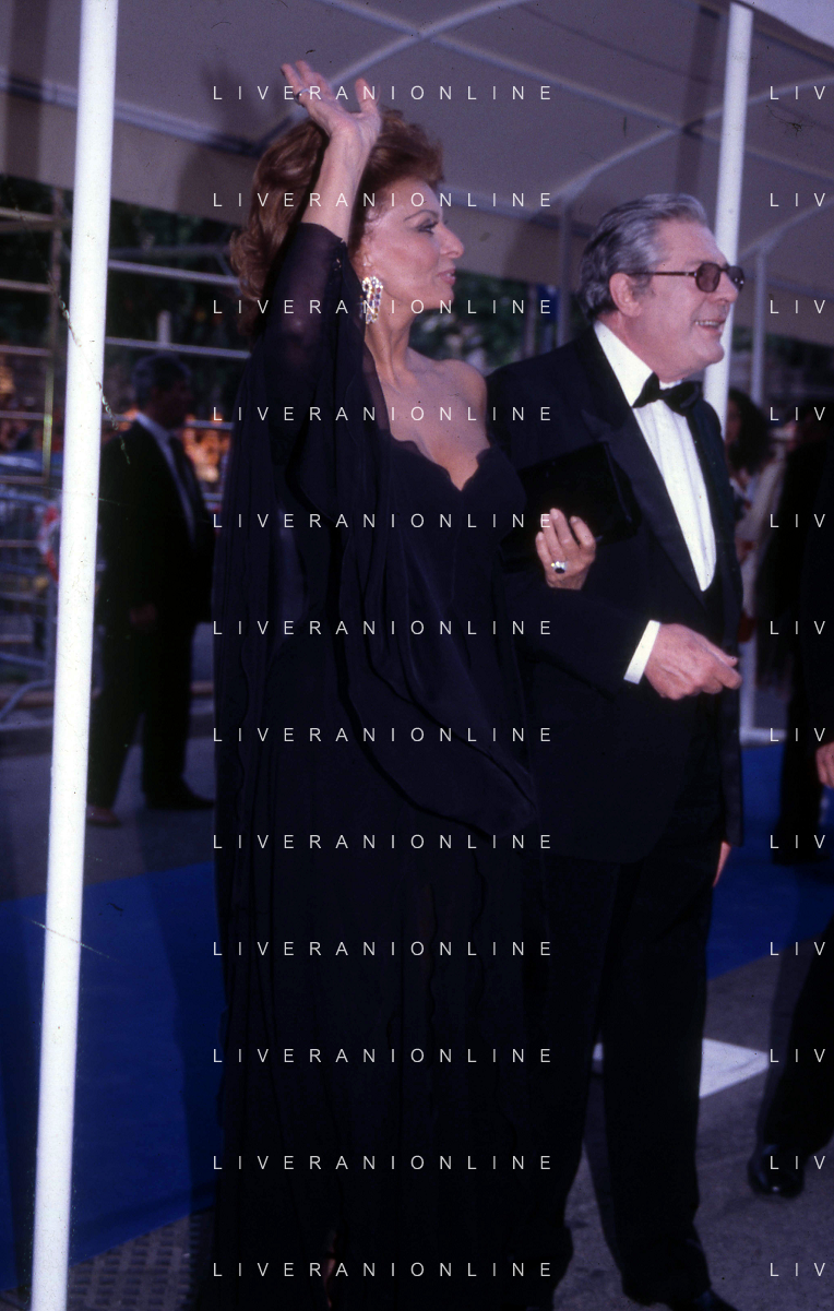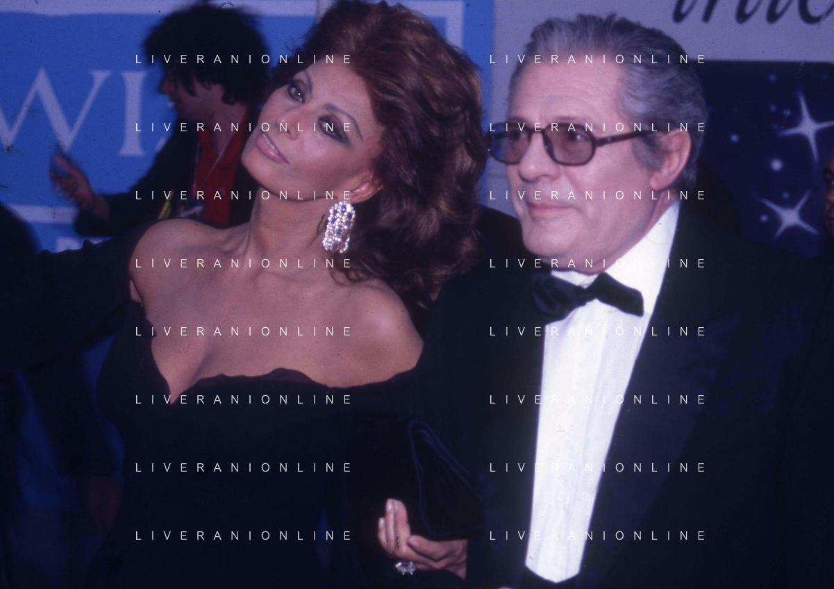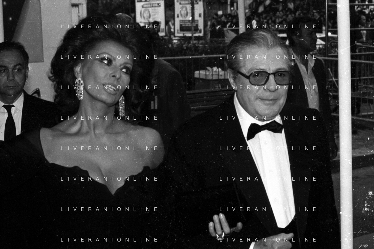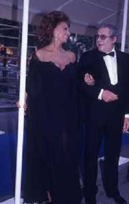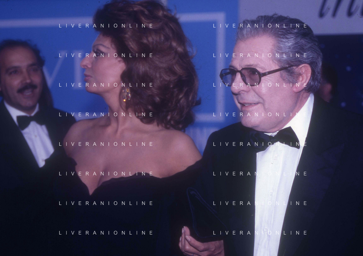 NEG- RETROSPETTIVA SOPHIA LOREN ATTRICE NELLA FOTO SOPHIA LOREN CON MARCELLO MASTROIANNI A MILANO PER LA PREMIAZIONE DEI TELEGATTI IL GIORNO 09-05-1995 AG ALDO LIVERANI SAS