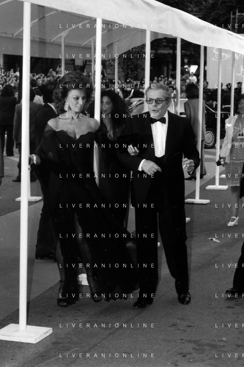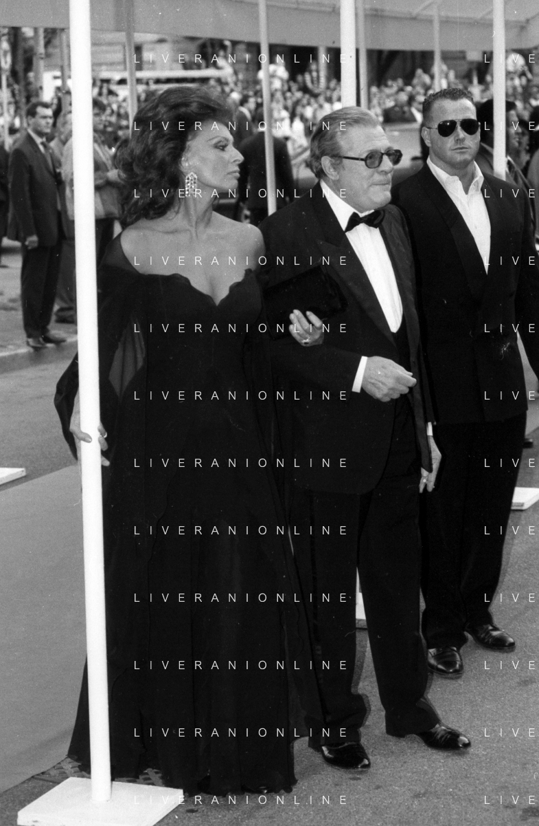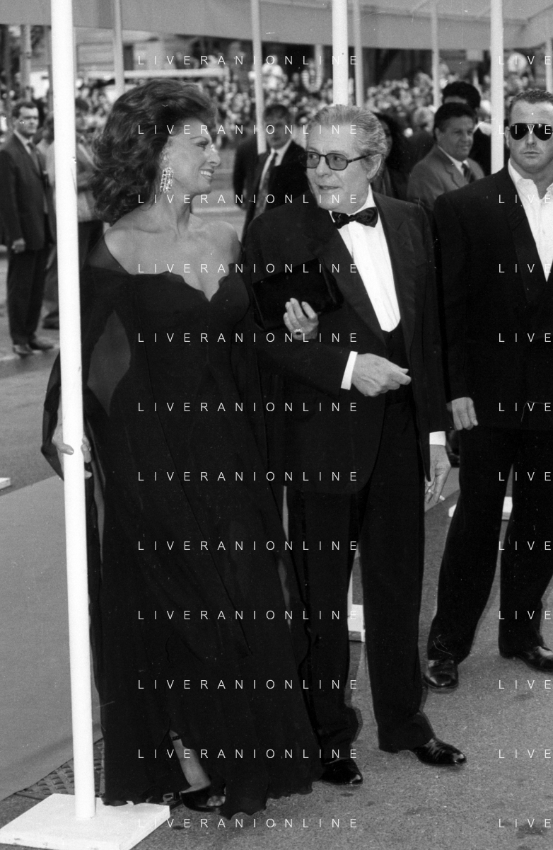 RETROSPETTIVA SOPHIA LOREN ATTRICE NELLA FOTO SOPHIA LOREN CON MARCELLO MASTROIANNI A MILANO PER LA PREMIAZIONE DEI TELEGATTI IL GIORNO 09-05-1995 AG ALDO LIVERANI SAS