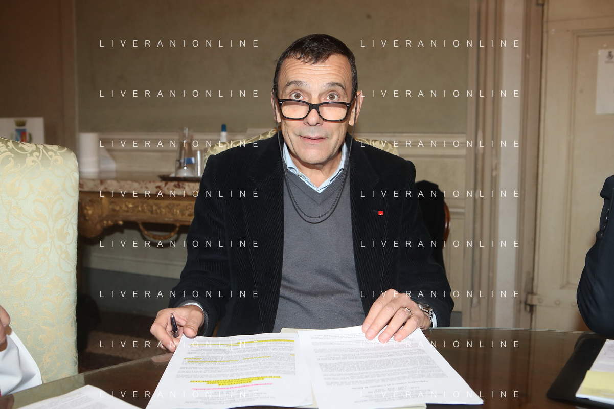 IMOLA 14 12 2023 Giunta Comunale e CGIL - CISL - UIL territoriali e SPI CGIL FNP CISL UILP UIL UN FONDO DI 350 MILA EURO PER TUTTI I BISOGNI SOCIALI E DELLE FAMIGLIE. RINVIATO L ADEGUAMENTO ISTAT PER I SERVIZI DI MENSA E TRASPORTO SCOLASTICO FINO A DOPO L APPROVAZIONE DELLA FINANZIARIA NELLA FOTO STEFANO MONI SEGRETARIO CGIL FOTO GIANNI SANNA-AG ALDO LIVERANI SAS
