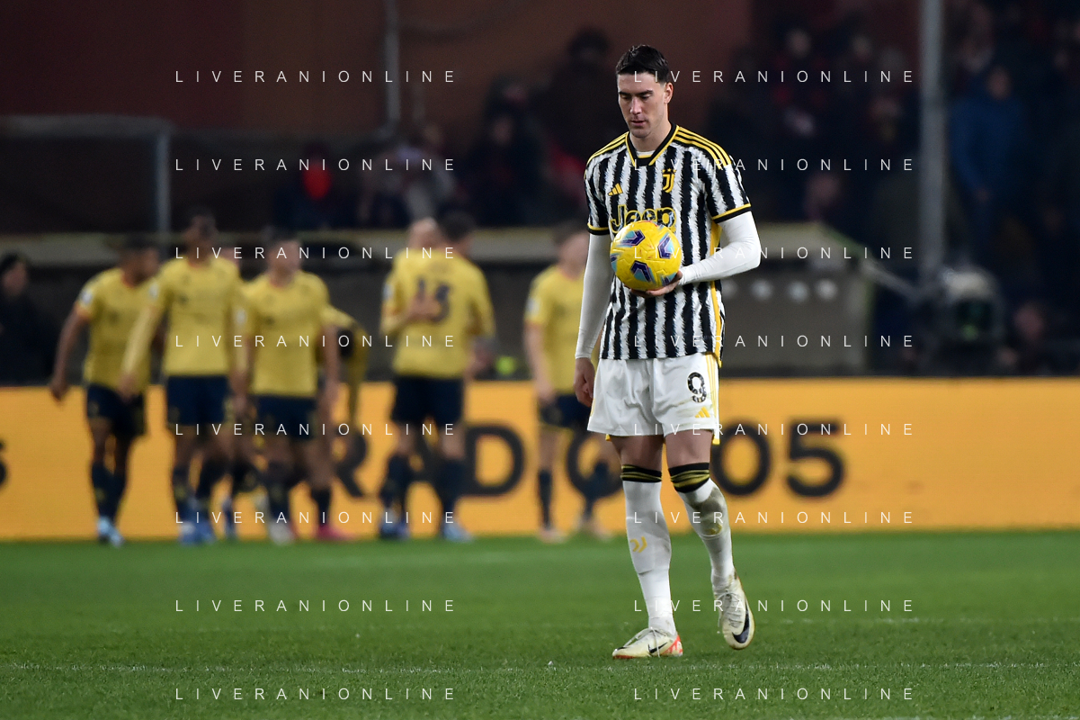 Genoa vs Juventus nella foto Dusan Vlahovic (Juventus) delusione dopo il gol subito dell'1 a 1 Genoa Genova 15-12-2023 Stadio Luigi Ferraris - Marassi Campionato Serie A TIM - 16a giornata foto Roberto Garavaglia/ag. Aldo Liverani sas / AGENZIA ALDO LIVERANI SAS