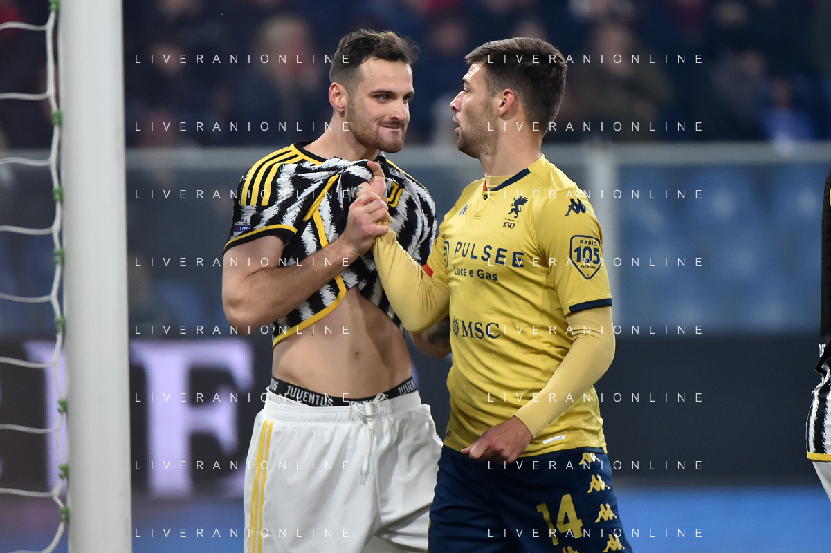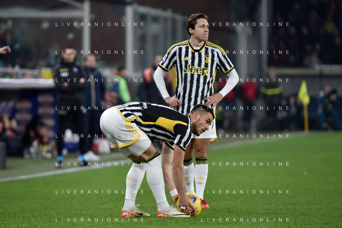 Genoa vs Juventus nella foto Filip Kostic (Juventus) e dietro Federico Chiesa (Juventus) Genova 15-12-2023 Stadio Luigi Ferraris - Marassi Campionato Serie A TIM - 16a giornata foto Roberto Garavaglia/ag. Aldo Liverani sas