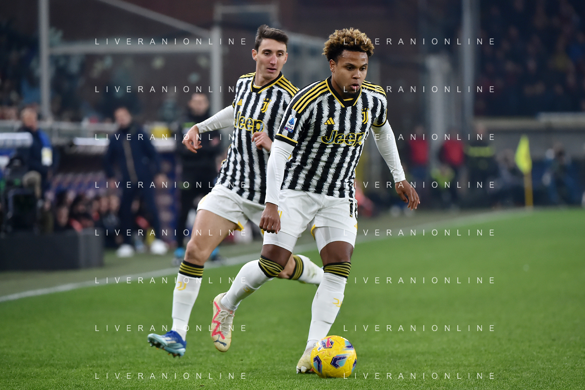Genoa vs Juventus nella foto Weston McKennie (Juventus) e dietro Andrea Cambiaso (Juventus) Genova 15-12-2023 Stadio Luigi Ferraris - Marassi Campionato Serie A TIM - 16a giornata foto Roberto Garavaglia/ag. Aldo Liverani sas