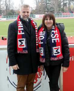 IMOLA 20 12 2023 IMOLESE CALCIO-RAVENNA SERIE D 0-1 NELLA FOTO OSPITE D'ONORE NADIA GRESINI DELLA GRESINI RACING TEAM CON PRESIDENTE DELL'IMOLESE CALCIO SANDRO DI BENEDETTO FOTO GIANNI SANNA-AG ALDO LIVERANI SAS