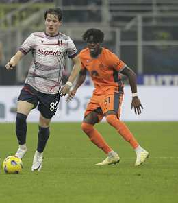 Inter vs Bologna nella foto Kacper Urbanski (Bologna) e dietro Alexis Saelemaekers (Bologna) Milano 20-12-2023 Stadio Giuseppe Meazza - San Siro Coppa Italia Frecciarossa - ottavi di finale foto Roberto Garavaglia/ag. Aldo Liverani sas/AGENZIA ALDO LIVERANI SAS