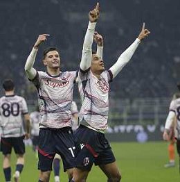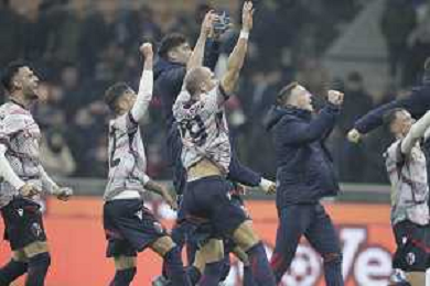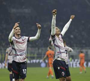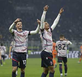 ESULTANZA DEI GIOCATORI DEL BOLOGNA A FINE PARTITA -INTER vs BOLOGNA ottavi di finale Coppa Italia Frecciarossa 20-12-2023 ©PAOLO GIAMPIETRI/AGENZIA ALDO LIVERANI SAS