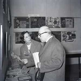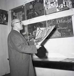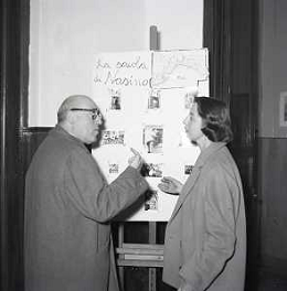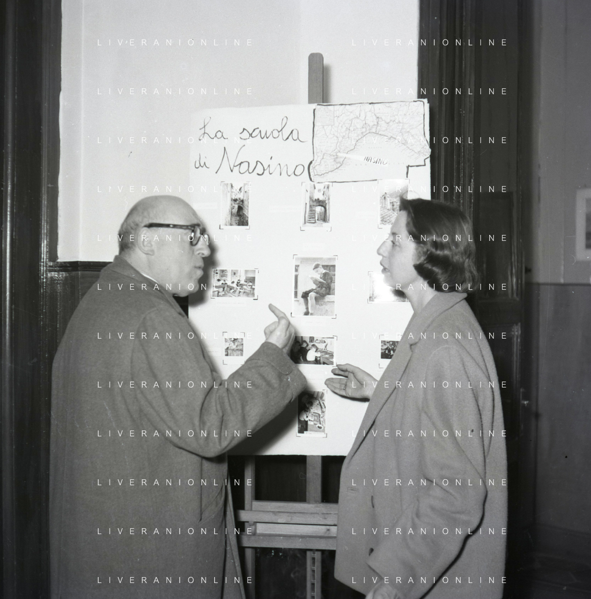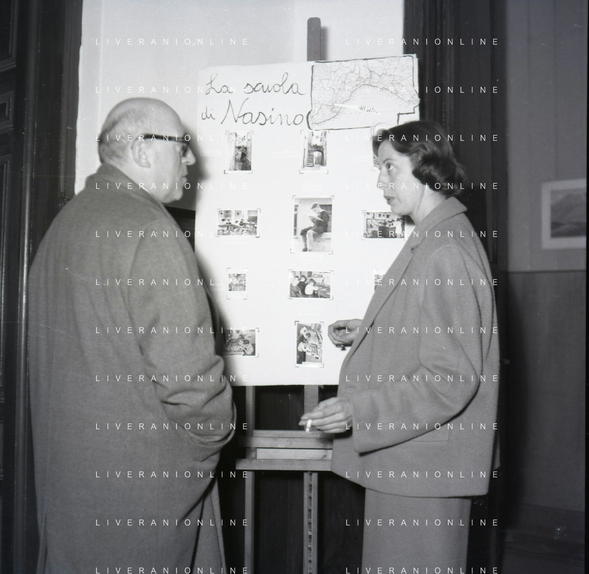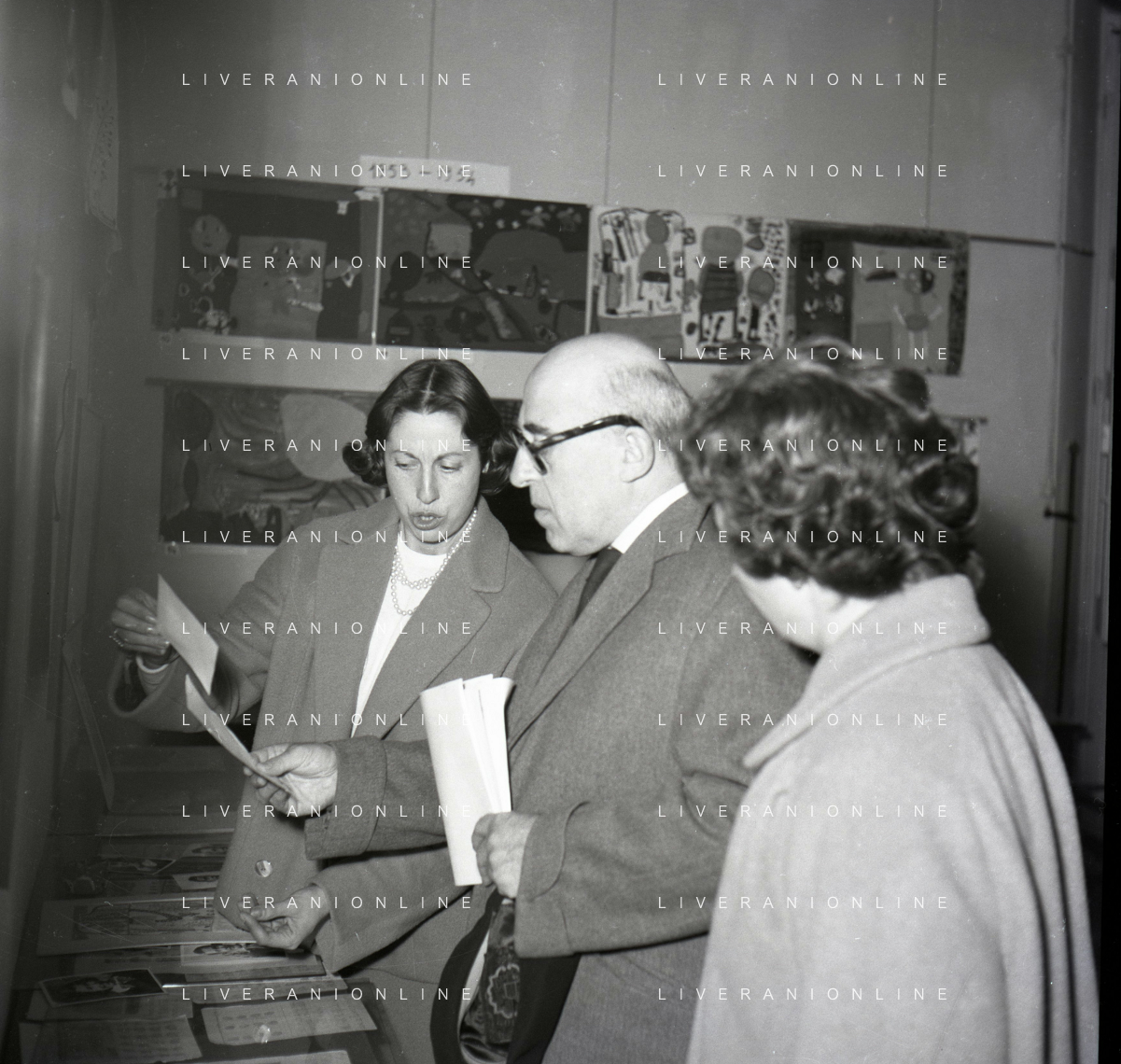 NEG-RETROSPETTIVA CESARE ZAVATTINI SCENEGIATORE-GIORNALISTA- SCRITTORE -POETA E PITTORE ITALIANO NELLA FOTO CESARE ZAVATTINI A ROMA NELL'ANNO 1955 A UNA MOSTRA DEI QUADRI DEI BAMBINI AG ALDO LIVERANI SAS