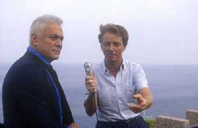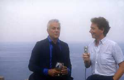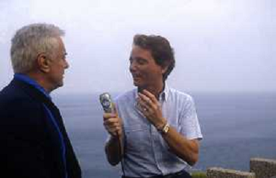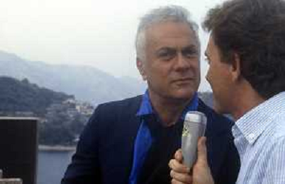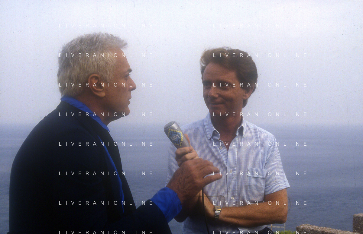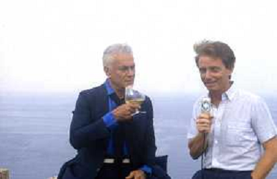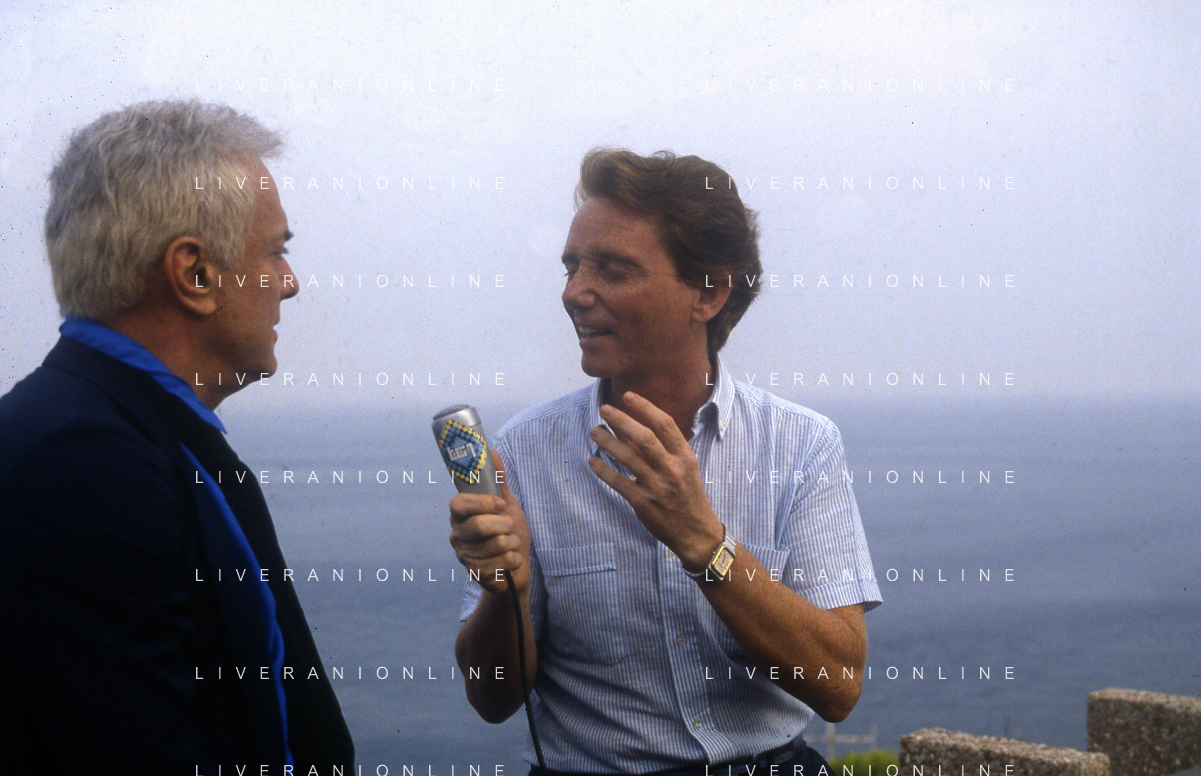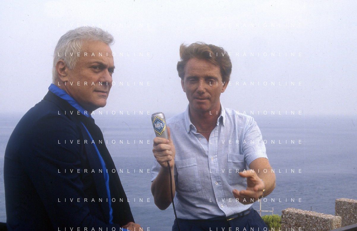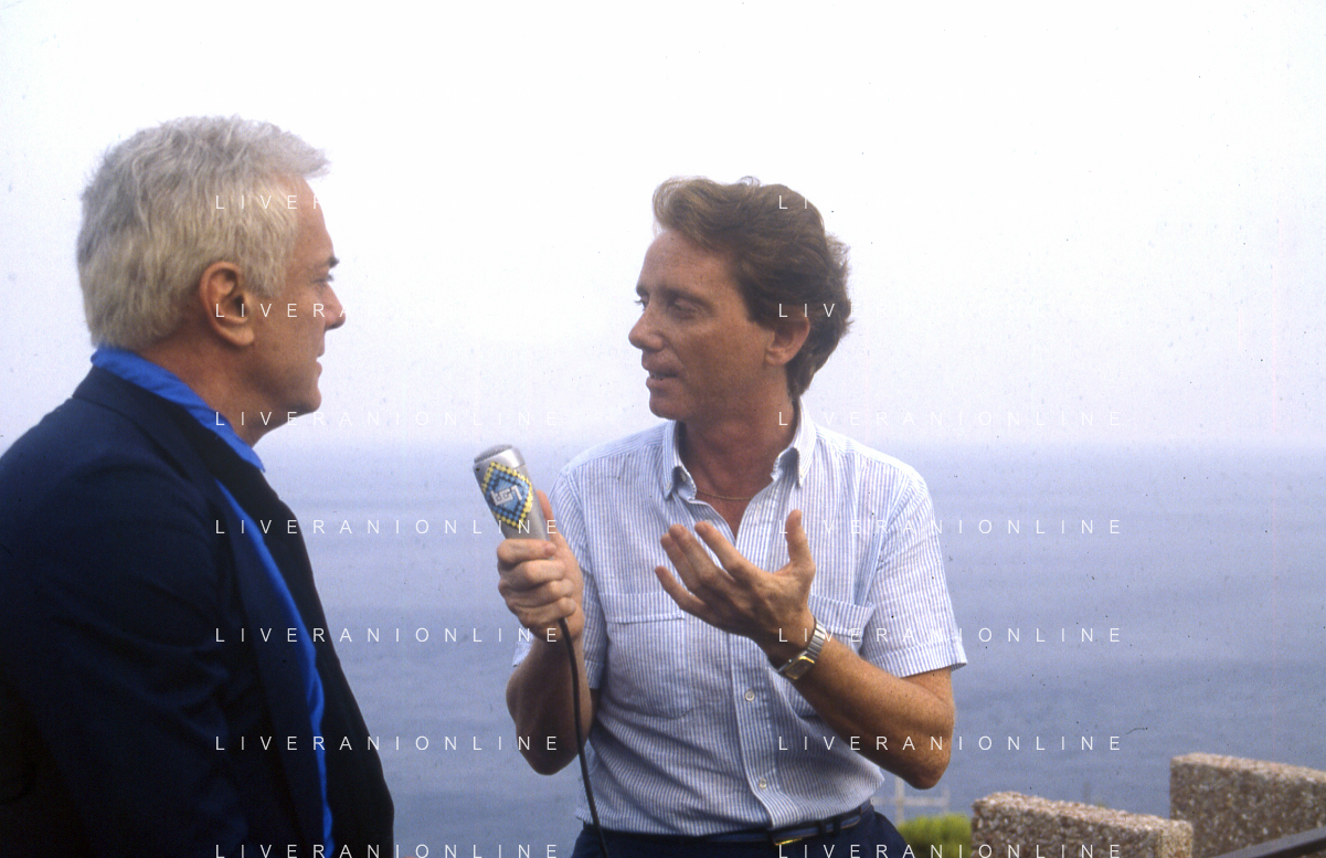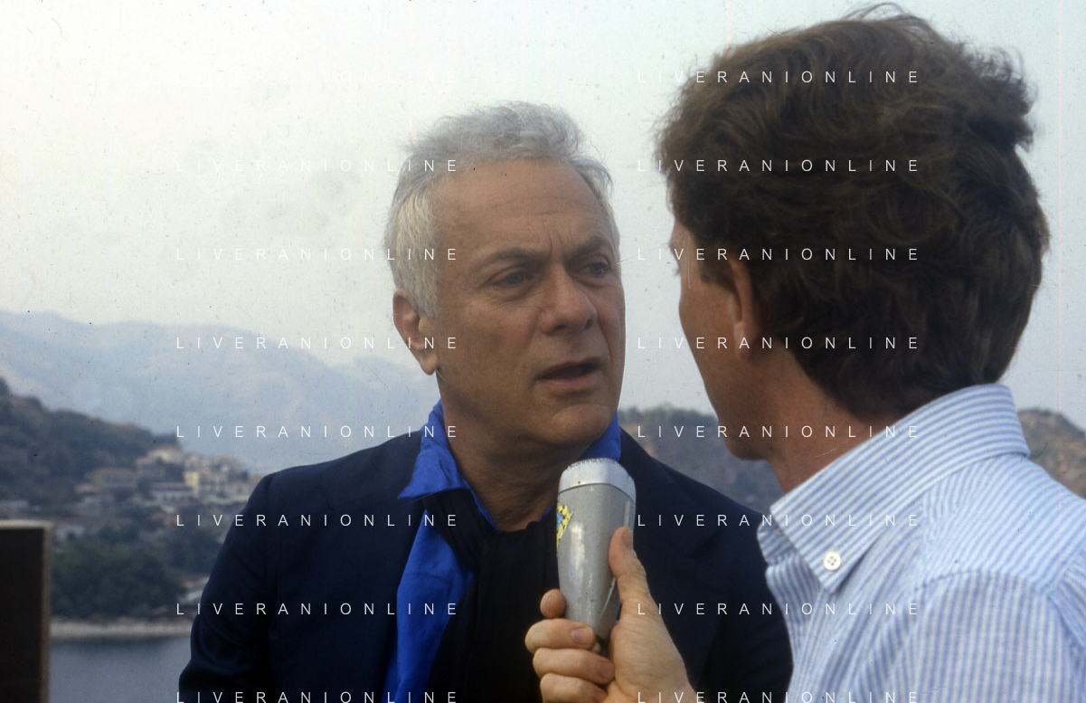 DIAP-RETROSPETTIVA TONY CURTIS ATTORE NELLA FOTO TONY CURTIS CON IL GIORNALISTA OSVALDO BEVILACQUA A TAORMINA NELL'ANNO 1985 AG ALDO LIVERANI SAS