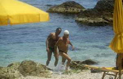 diap-RETROSPETTIVA TONY CURTIS ATTORE NELLA FOTO TONY CURTIS CON EVA ROBBINS A TAORMINA NELL'ANNO 1985 AG ALDO LIVERANI SAS