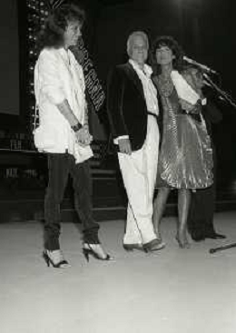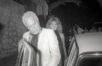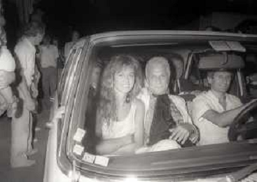 ST-RETROSPETTIVA TONY CURTIS ATTORE NELLA FOTO TONY CURTIS CON JAQUELIN BISSET A TAORMINA NELL'ANNO 1985 AG ALDO LIVERANI SAS