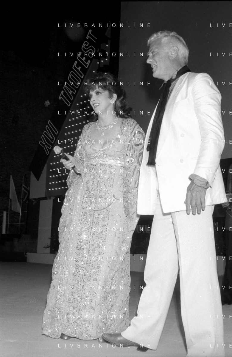 Neg- RETROSPETTIVA TONY CURTIS ATTORE NELLA FOTO TONY CURTIS CON GINA LOLLOBRIGIDA A TAORMINA NELL'ANNO 1985 AG ALDO LIVERANI SAS