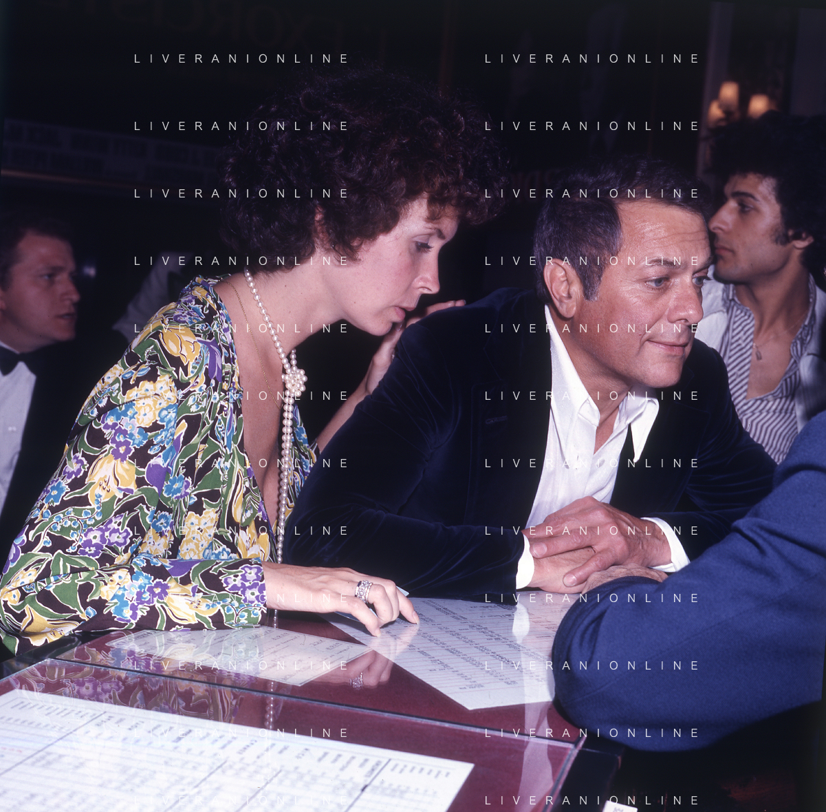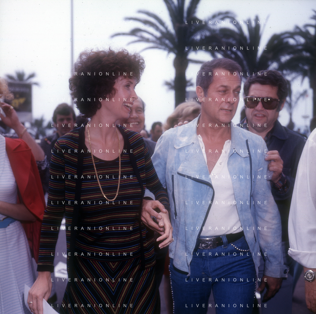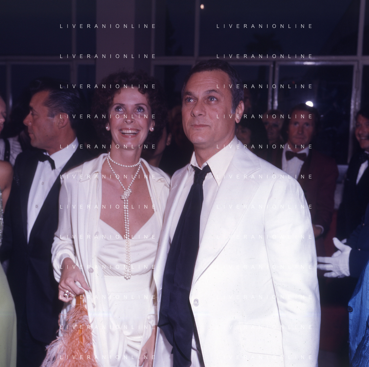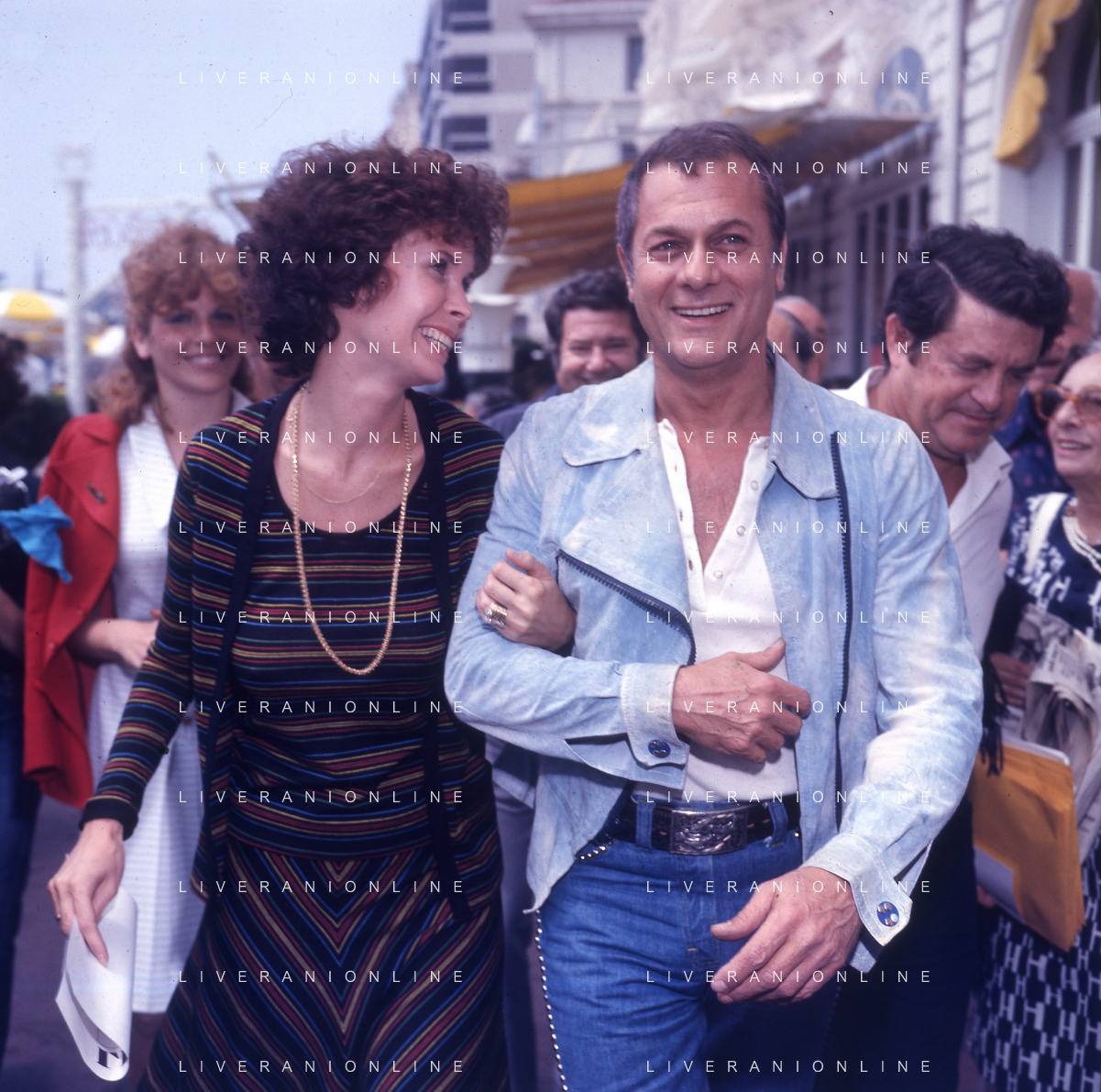 COL-RETROSPETTIVA TONY CURTIS ATTORE NELLA FOTO TONY CURTIS CON LA MOGLIE LESLIE ALLEN A CANNES NELL'ANNO 1974 AG ALDO LIVERANI SAS
