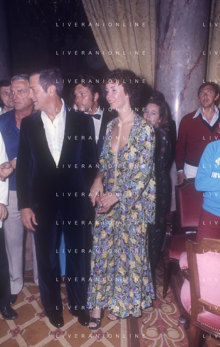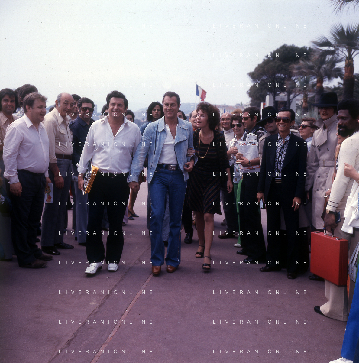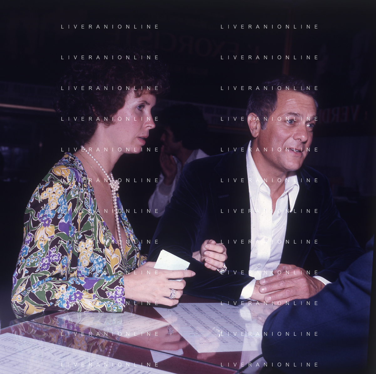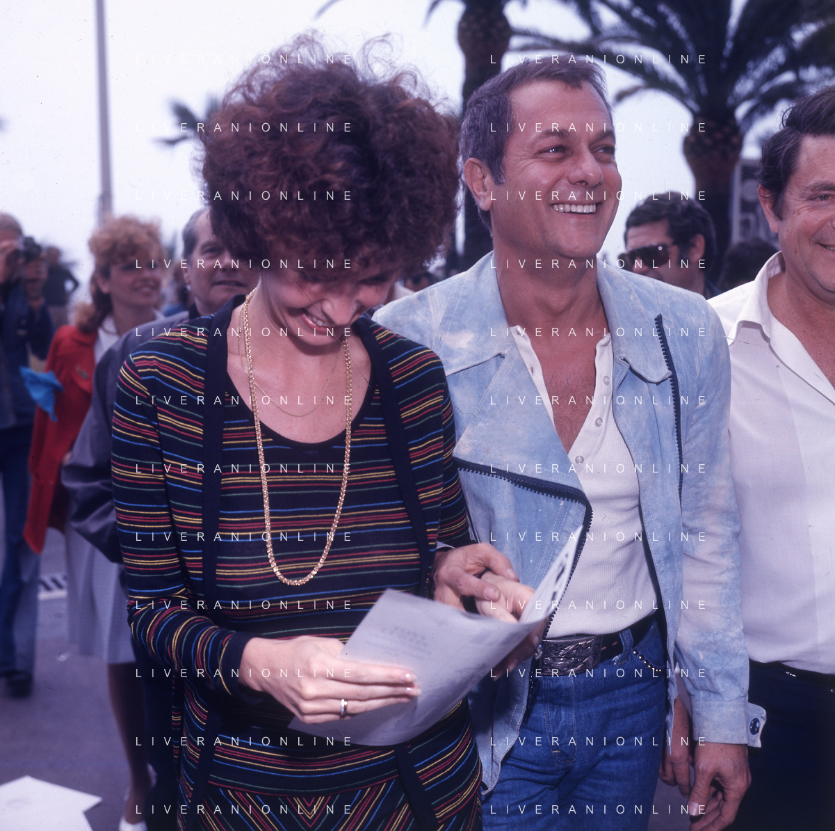 COL-RETROSPETTIVA TONY CURTIS ATTORE NELLA FOTO TONY CURTIS CON LA MOGLIE LESLIE ALLEN A CANNES NELL'ANNO 1974 AG ALDO LIVERANI SAS