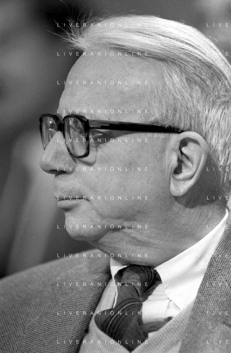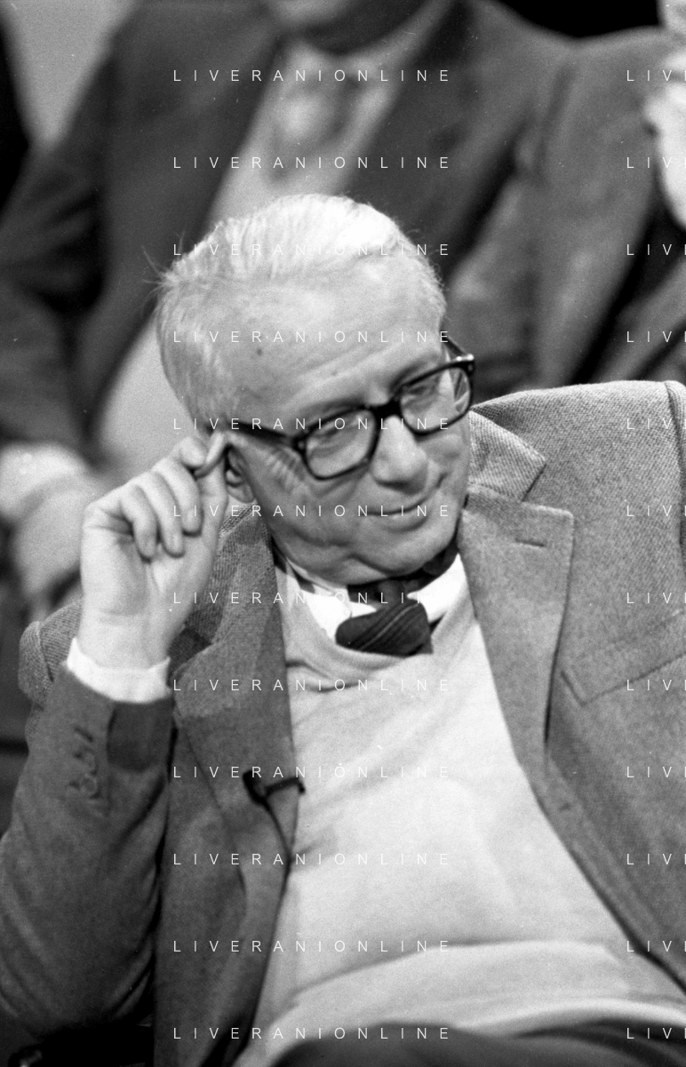 NEG-RETROSPETTIVA ENZO BIAGI GIORNALISTA NELLA FOTO ENZO BIAGI CON PIERO ANGELA NELL'ANNO 1984 NELLA TRASMISSIONE TELEVISIVA‘“ LA DOMENICA SPORTIVA“ AG ALDO LIVERANI SAS