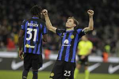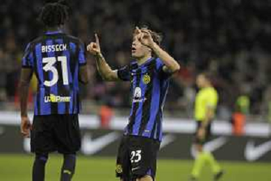 Inter vs Lecce nella foto Nicolo' Barella (Inter) segna il gol del 2 a 0 Milano 23-12-2023 Stadio Giuseppe Meazza - San Siro Campionato Serie A TIM - 17a giornata foto Roberto Garavaglia/ag. Aldo Liverani sas/AGENZIA ALDO LIVERANI SAS