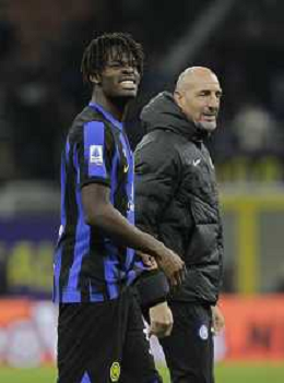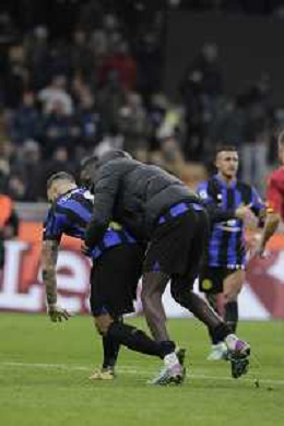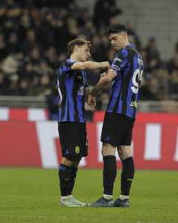 Inter vs Lecce nella foto Marko Arnautovic (Inter) SX e Marcus Thuram (Inter) DX a fine gara Milano 23-12-2023 Stadio Giuseppe Meazza - San Siro Campionato Serie A TIM - 17a giornata foto Roberto Garavaglia/ag. Aldo Liverani sas