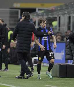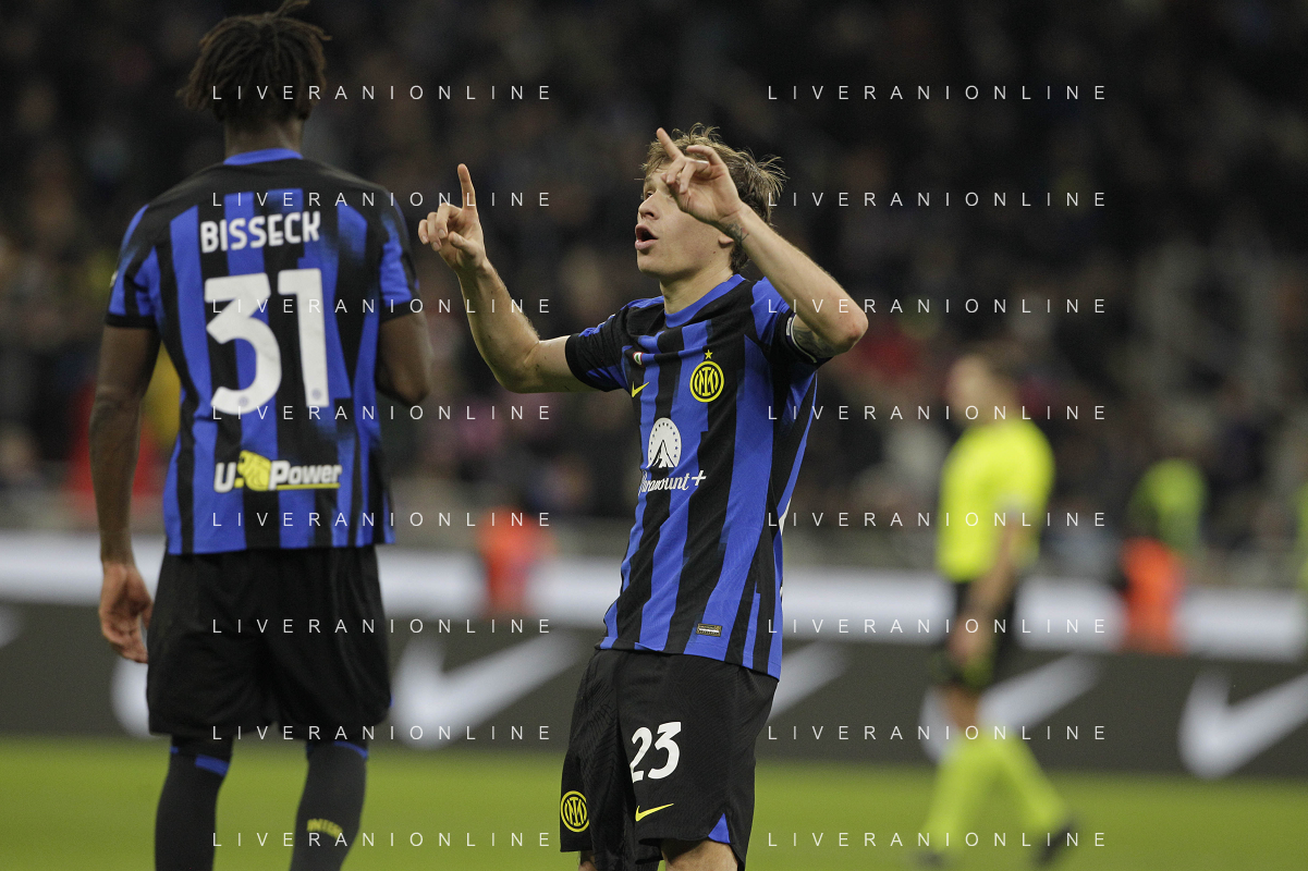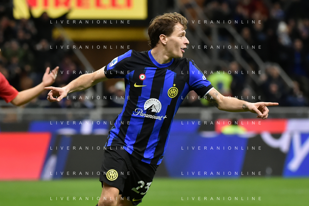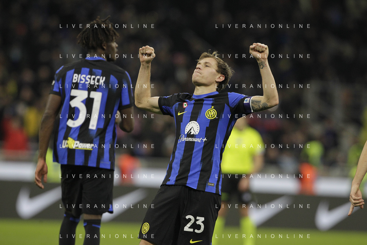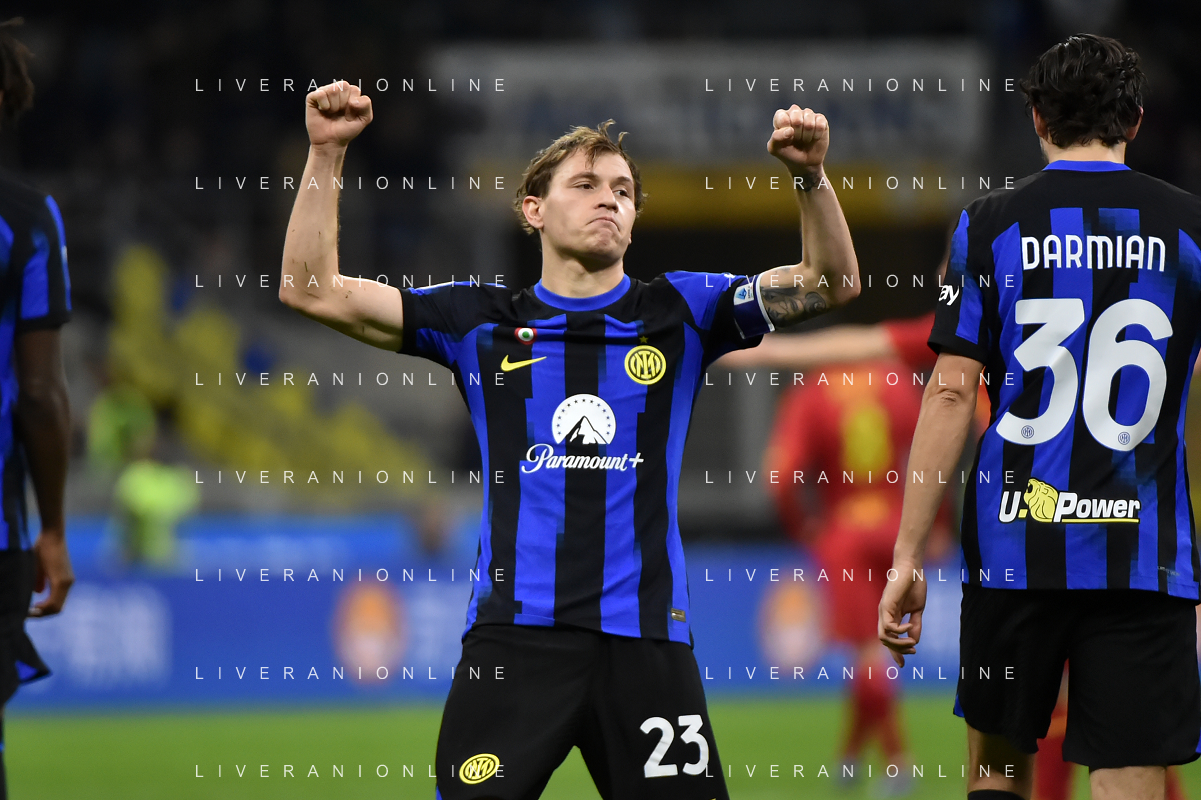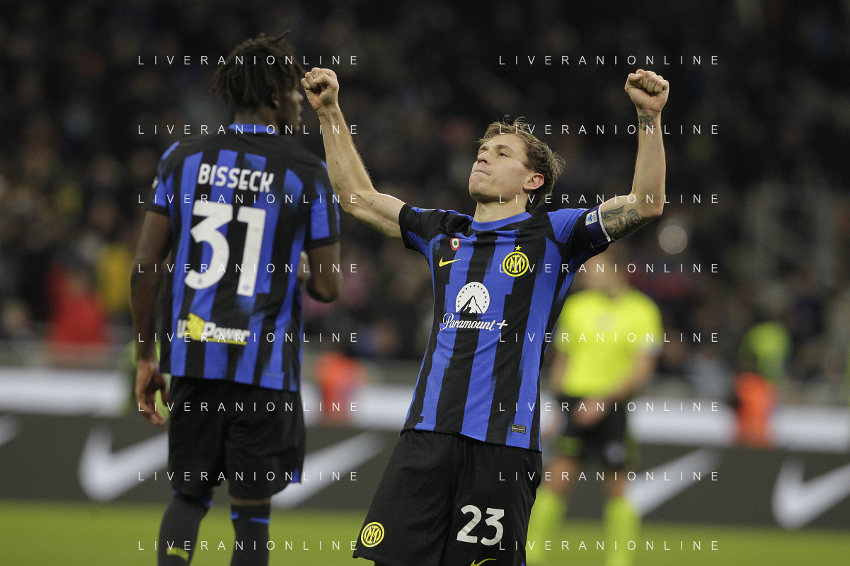 Inter vs Lecce nella foto Nicolo' Barella (Inter) esulta dopo il gol del 2 a 0 Milano 23-12-2023 Stadio Giuseppe Meazza - San Siro Campionato Serie A TIM - 17a giornata foto Roberto Garavaglia/ag. Aldo Liverani sas/AGENZIA ALDO LIVERANI SAS