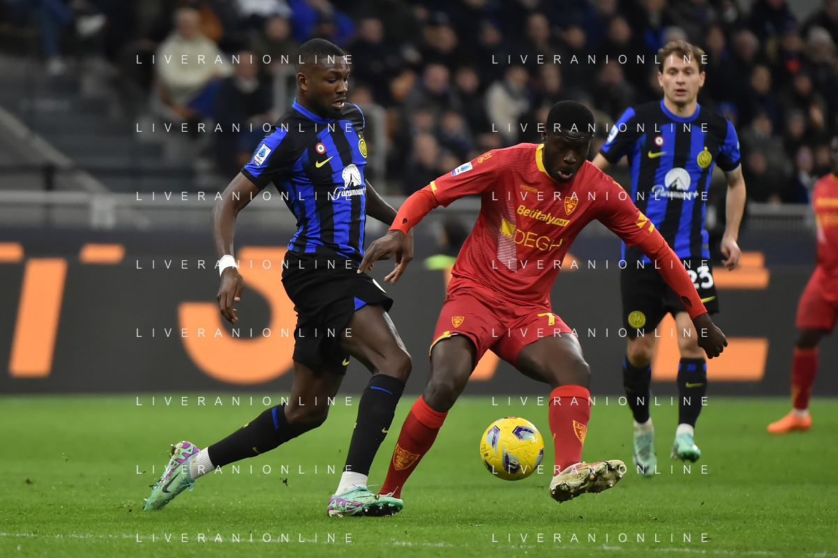 Inter vs Lecce nella foto Marcus Thuram (Inter) e Mohamed Kaba (Lecce) Milano 23-12-2023 Stadio Giuseppe Meazza - San Siro Campionato Serie A TIM - 17a giornata foto Roberto Garavaglia/ag. Aldo Liverani sas/AGENZIA ALDO LIVERANI SAS