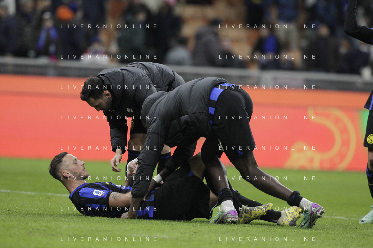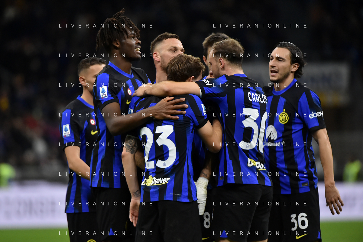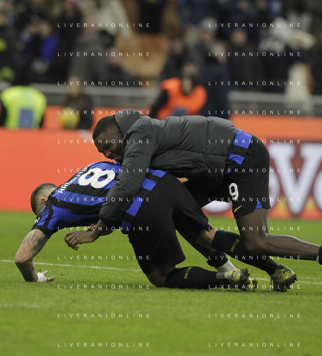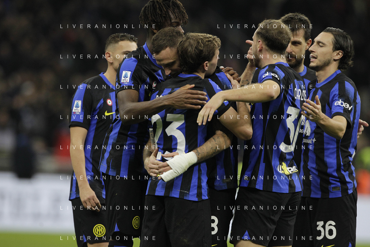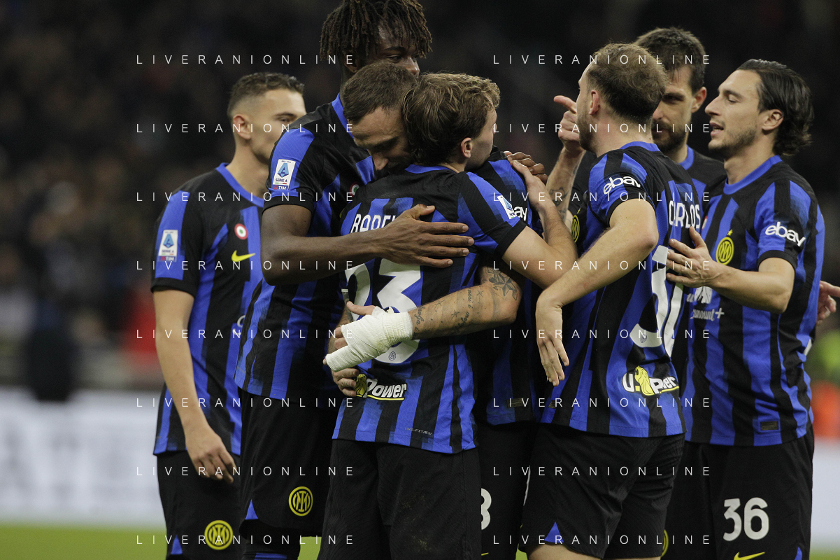 Inter vs Lecce nella foto esultanza Inter dopo il gol del 2 a 0 Milano 23-12-2023 Stadio Giuseppe Meazza - San Siro Campionato Serie A TIM - 17a giornata foto Roberto Garavaglia/ag. Aldo Liverani sas/AGENZIA ALDO LIVERANI SAS