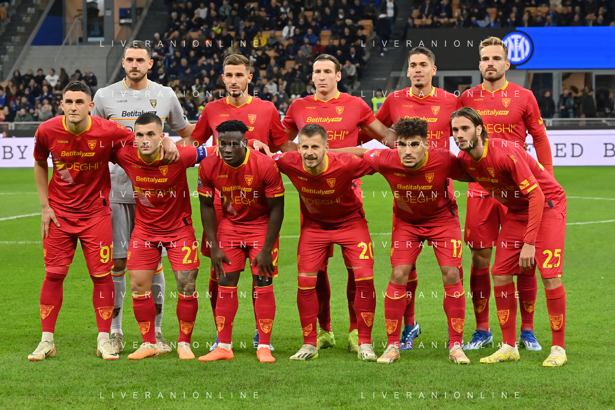 Inter vs Lecce nella foto formazione Lecce, in piedi da SX Wladimiro Falcone, Remi Oudin, Federico Baschirotto, Joan Gonzalez e Marin Pongracic; in basso da SX Roberto Piccoli, Gabriel Strefezza, Lameck Banda, Ylber Latif Ramadani, Valentin Gendrey e Antonio Gallo Milano 23-12-2023 Stadio Giuseppe Meazza - San Siro Campionato Serie A TIM - 17a giornata foto Roberto Garavaglia/ag. Aldo Liverani sas