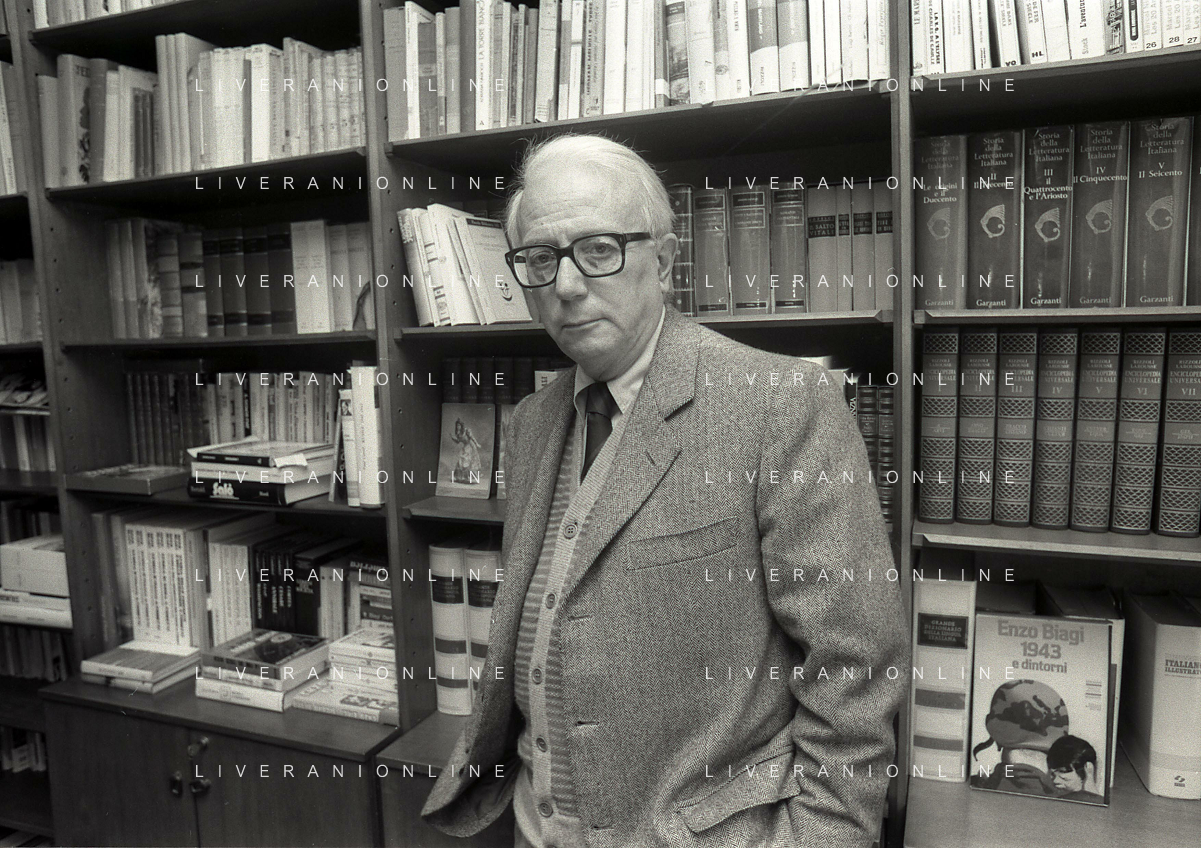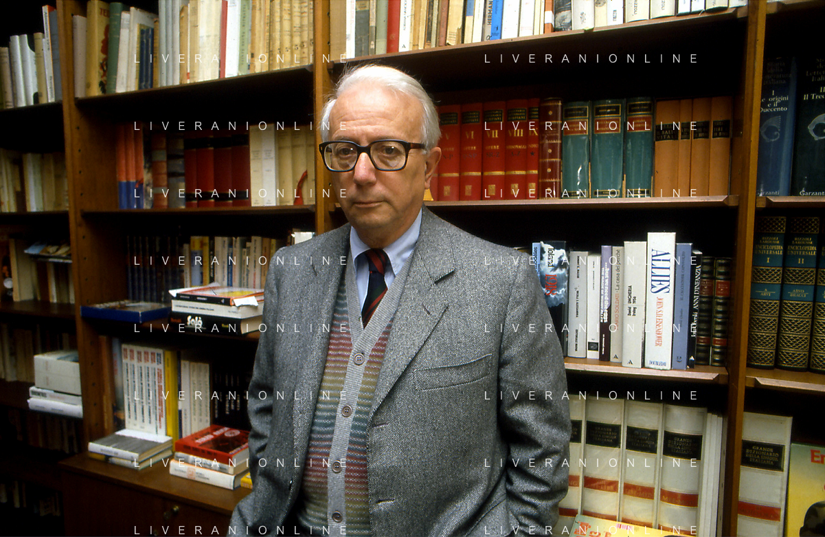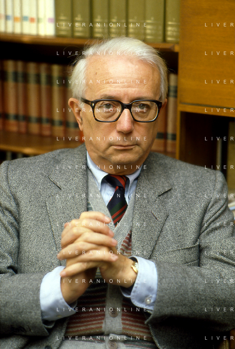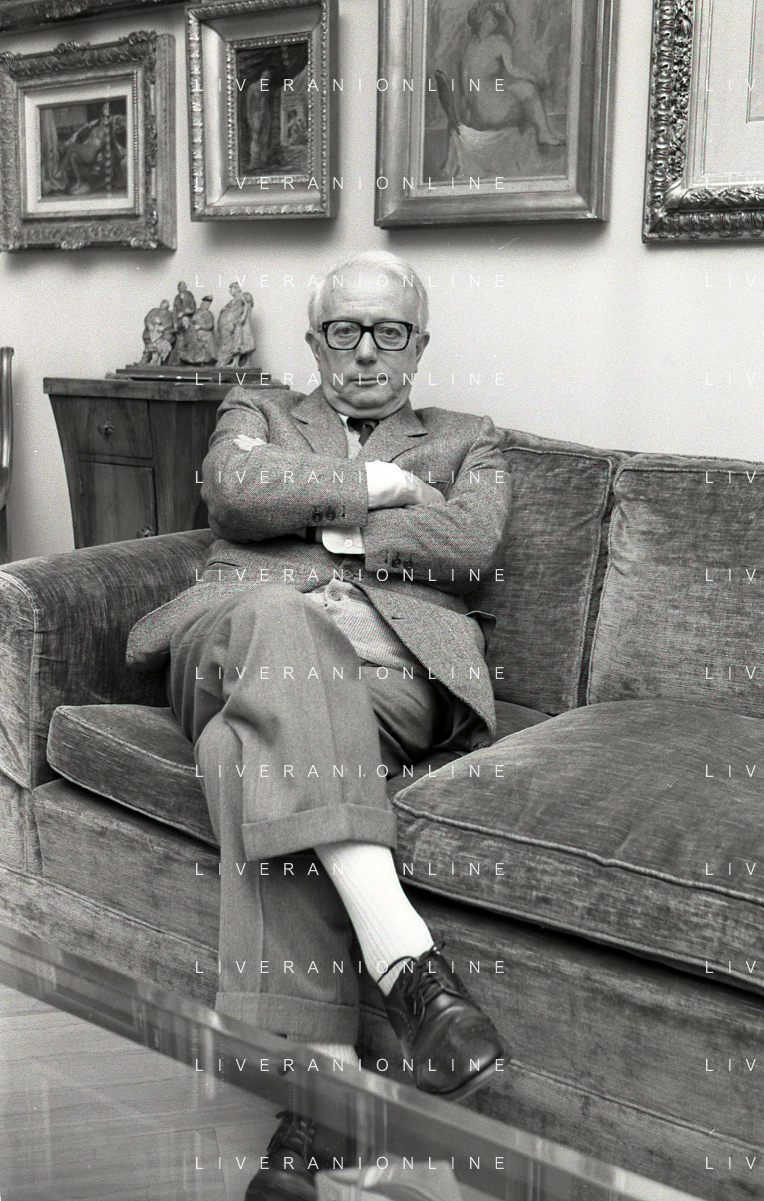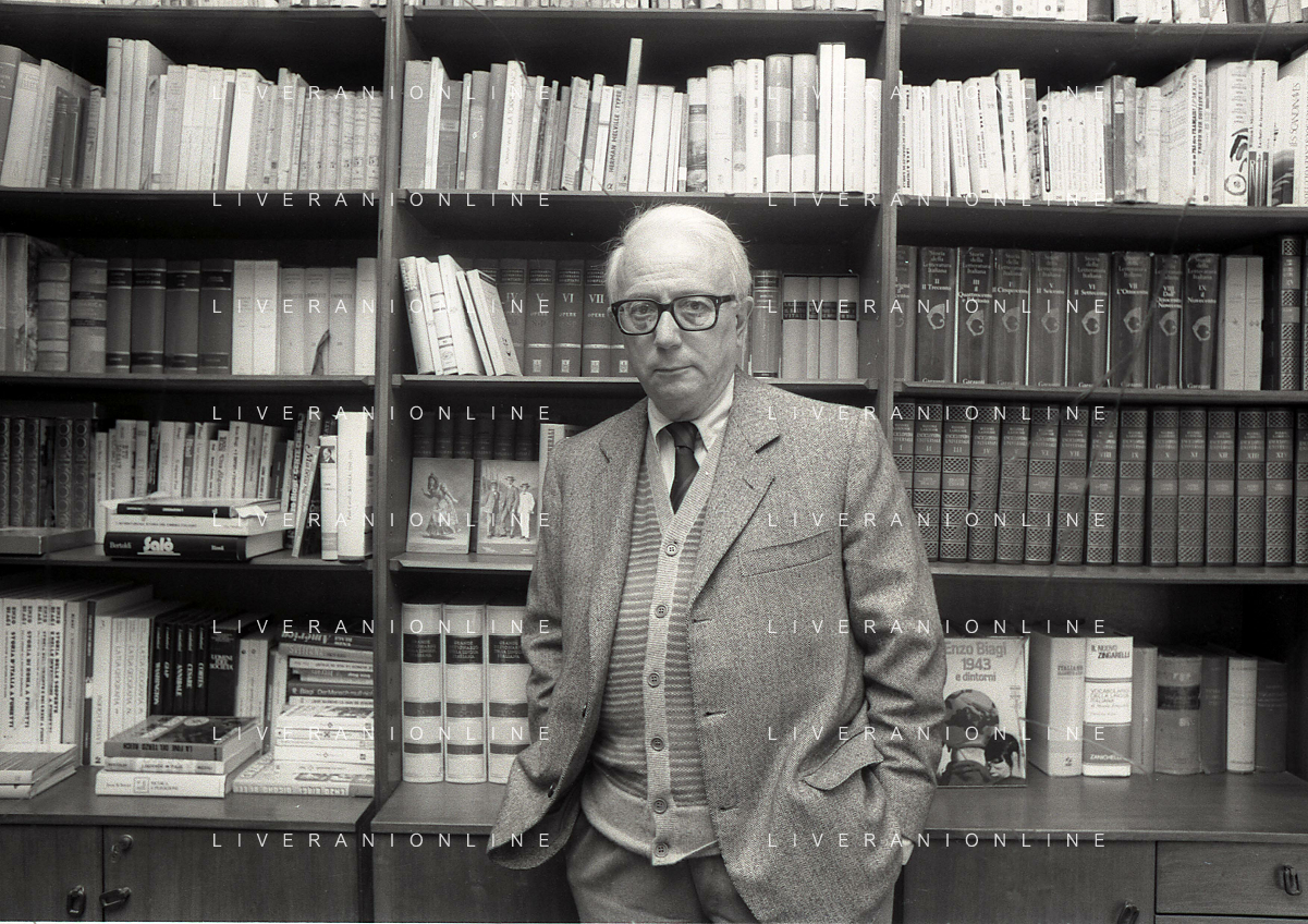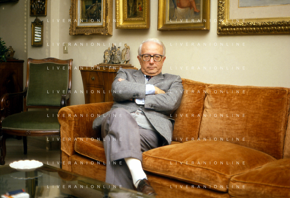 RETROSPETTIVA ENZO BIAGI GIORNALISTA E SCRITTORE E CONDUTTORE TELEVISIVO NELLA FOTO ENZO BIAGI NELL'ANNO 1985 NELLA SUA ABITAZIONE A MILANO AG ALDO LIVERANI SAS
