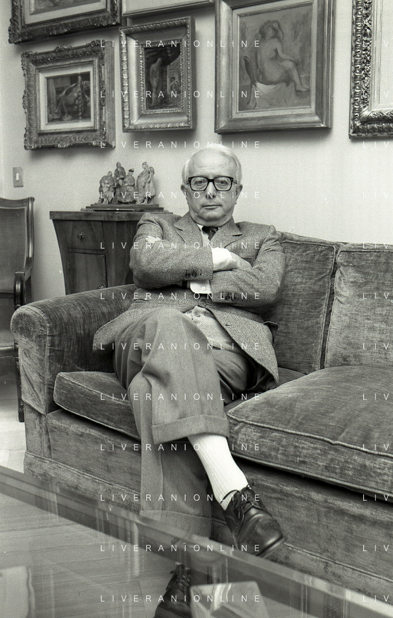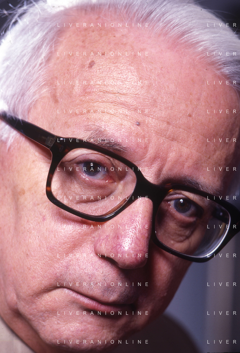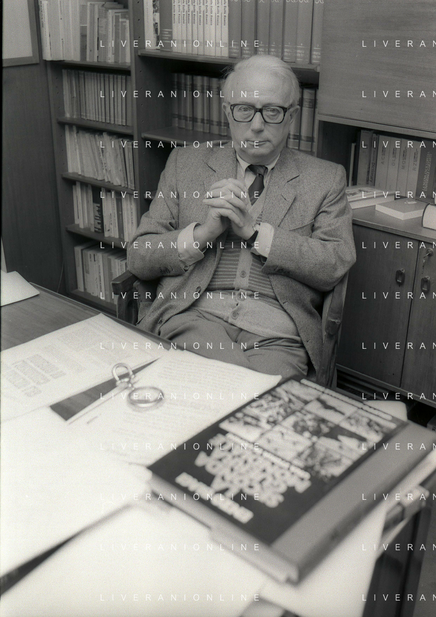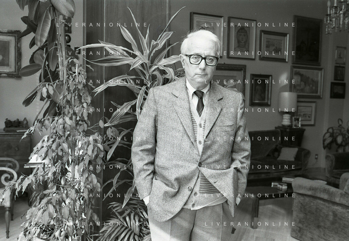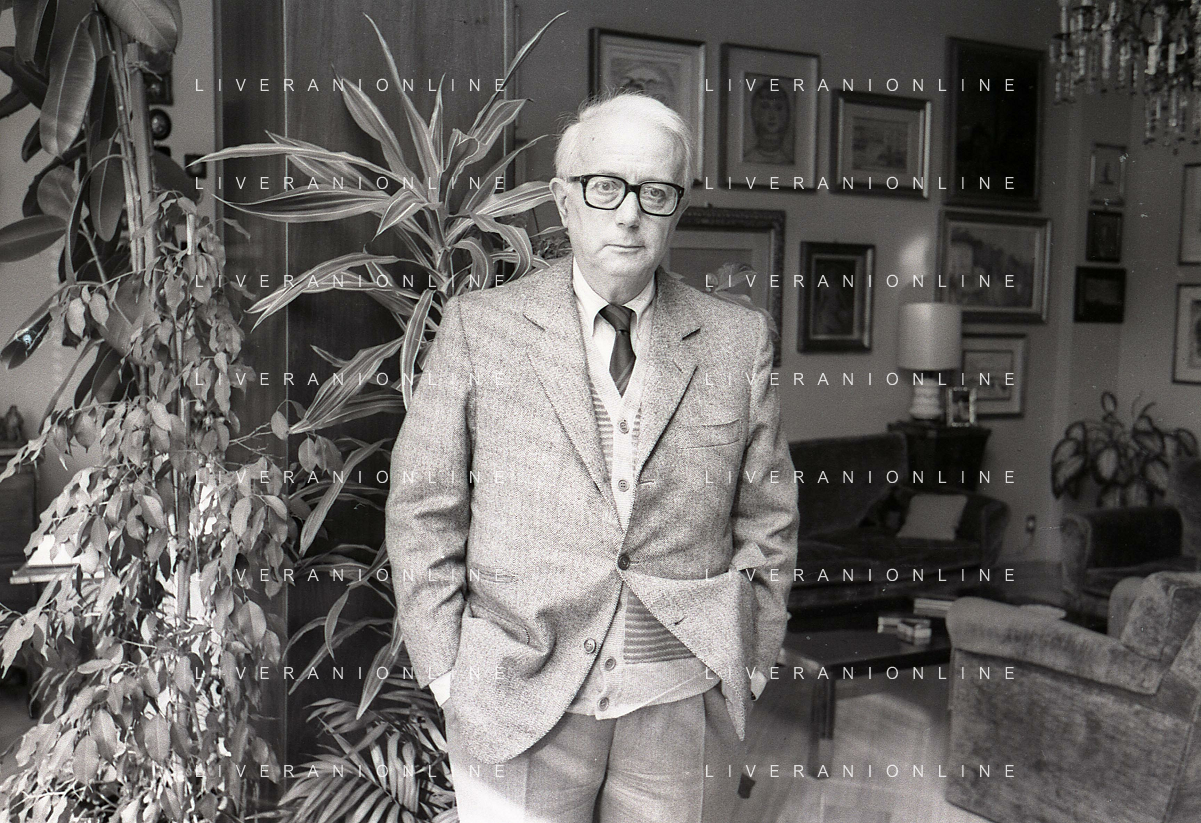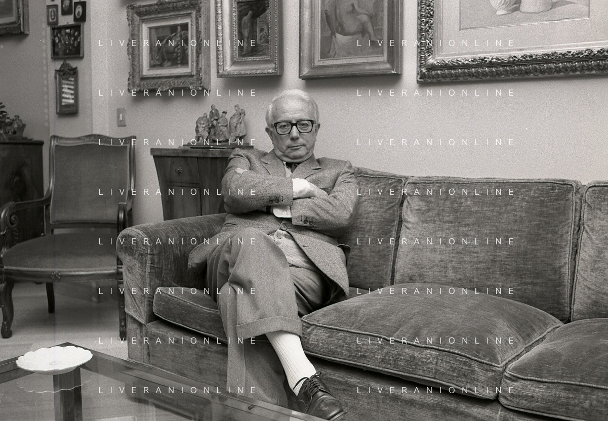 RETROSPETTIVA ENZO BIAGI GIORNALISTA E SCRITTORE E CONDUTTORE TELEVISIVO NELLA FOTO ENZO BIAGI NELL'ANNO 1985 NELLA SUA ABITAZIONE A MILANO AG ALDO LIVERANI SAS