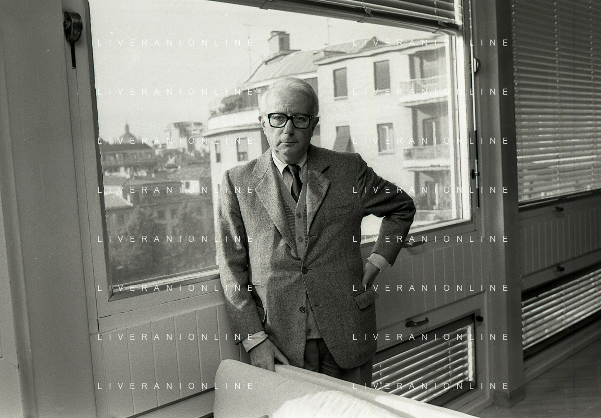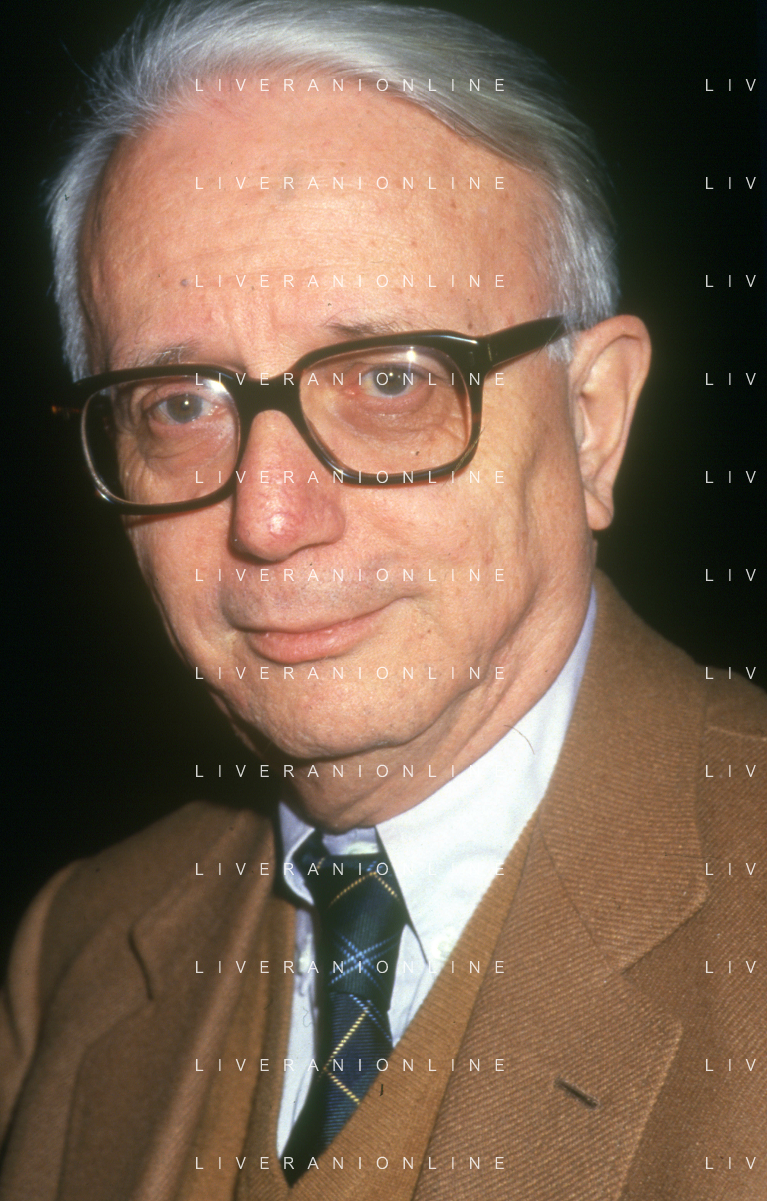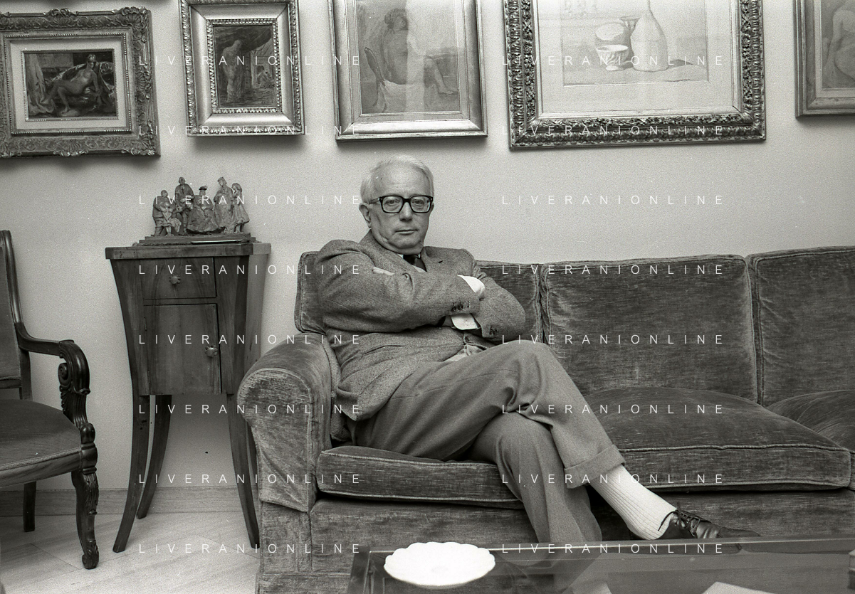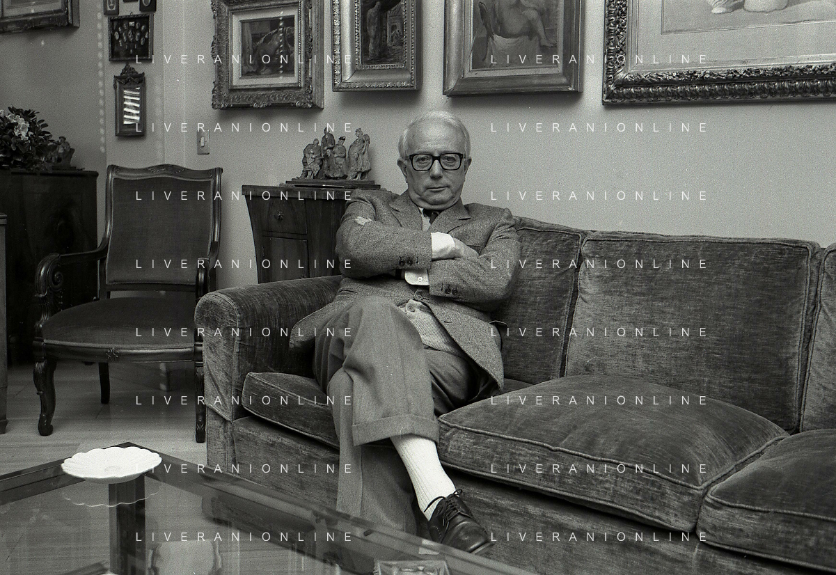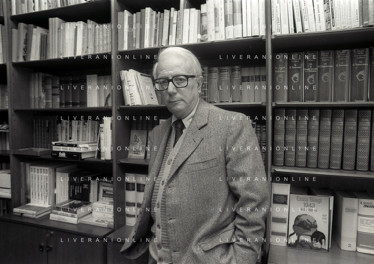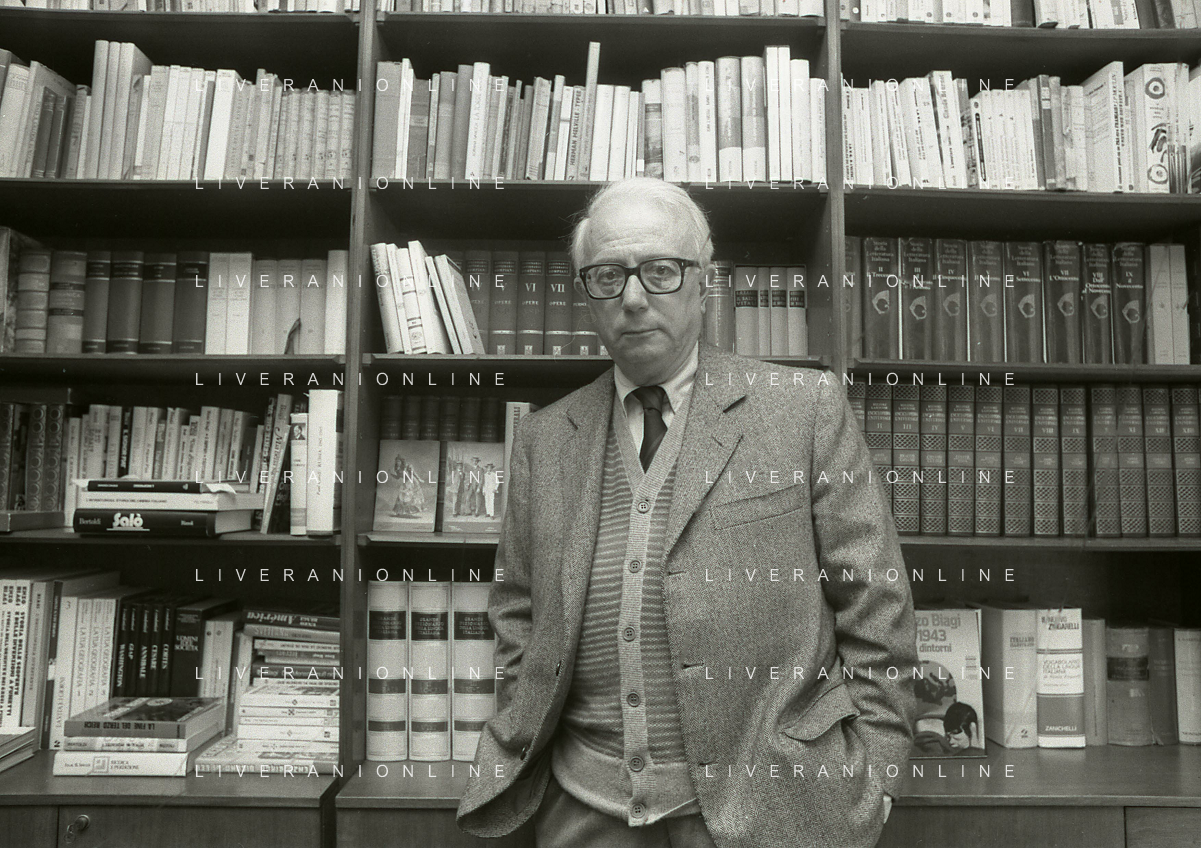 RETROSPETTIVA ENZO BIAGI GIORNALISTA E SCRITTORE E CONDUTTORE TELEVISIVO NELLA FOTO ENZO BIAGI NELL'ANNO 1985 NELLA SUA ABITAZIONE A MILANO AG ALDO LIVERANI SAS