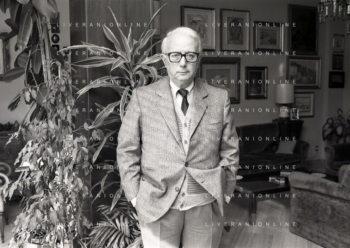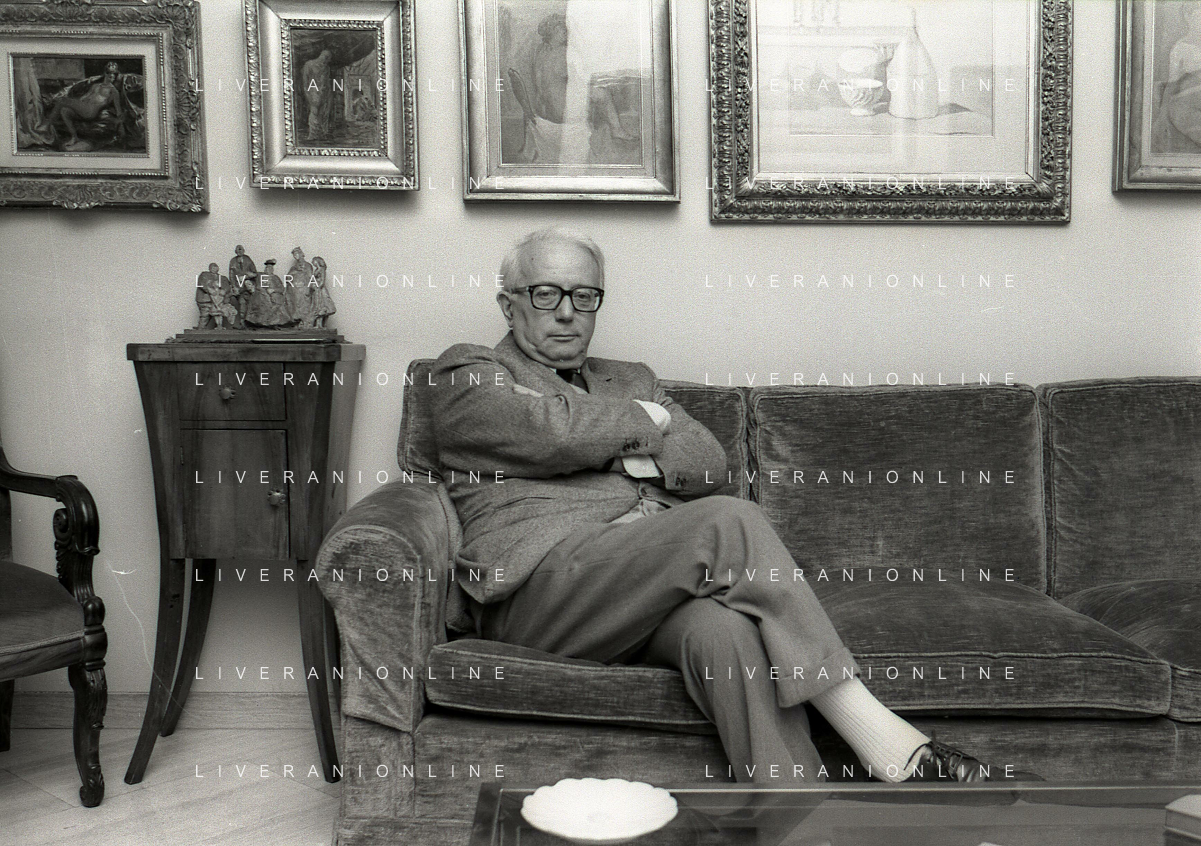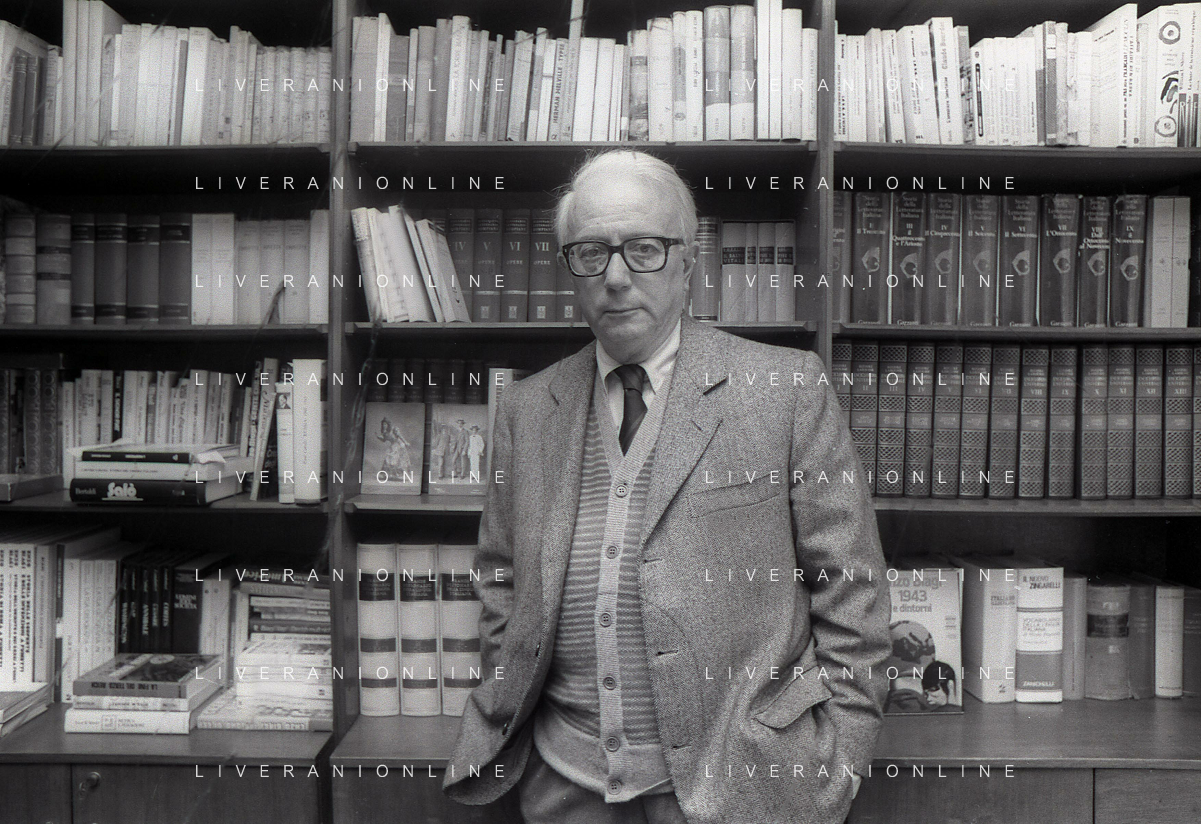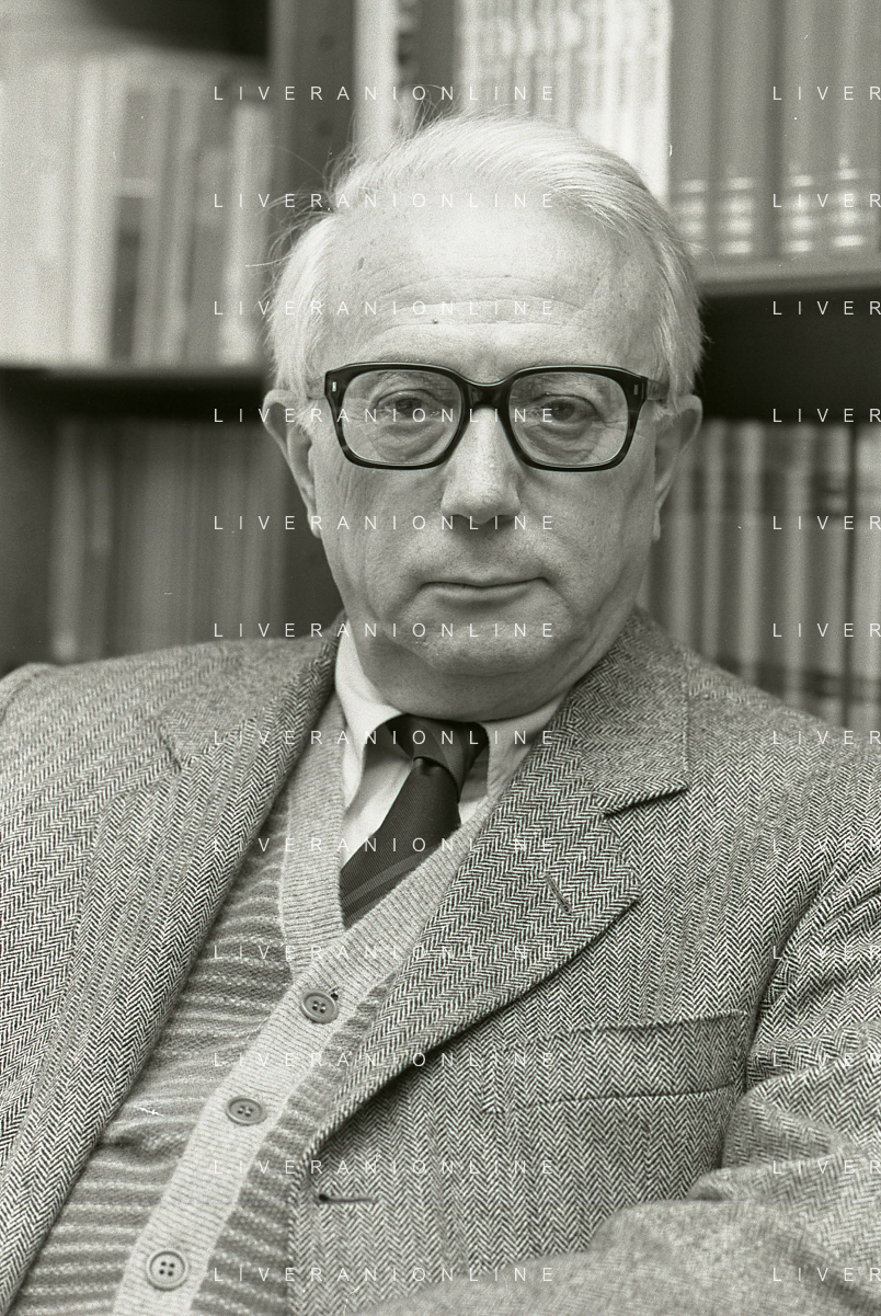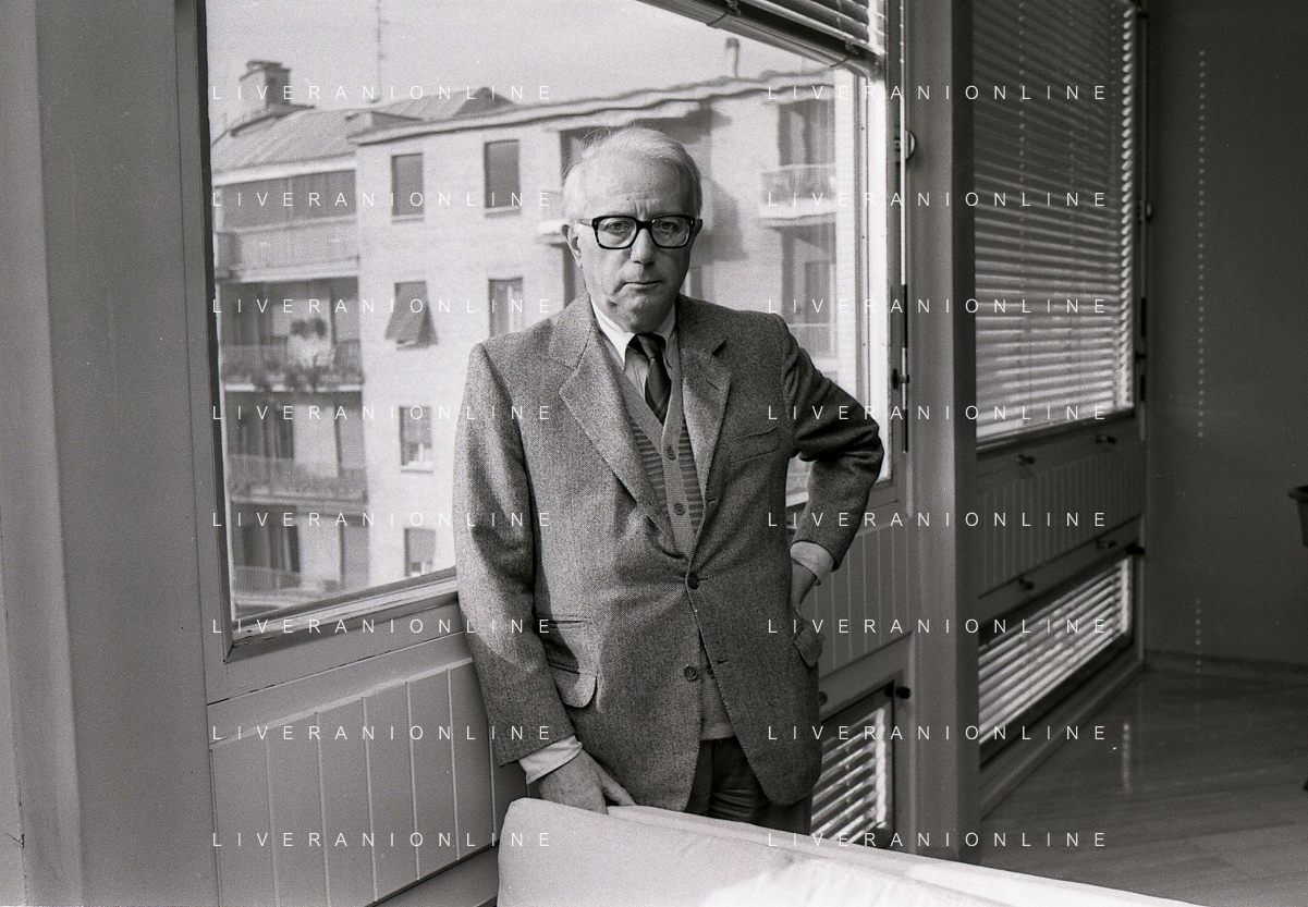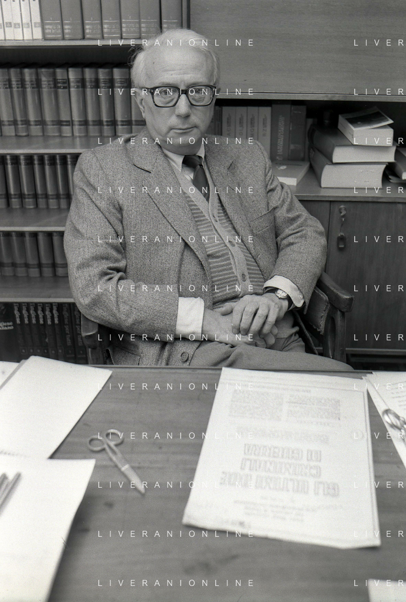 RETROSPETTIVA ENZO BIAGI GIORNALISTA E SCRITTORE E CONDUTTORE TELEVISIVO NELLA FOTO ENZO BIAGI NELL'ANNO 1985 NELLA SUA ABITAZIONE A MILANO AG ALDO LIVERANI SAS