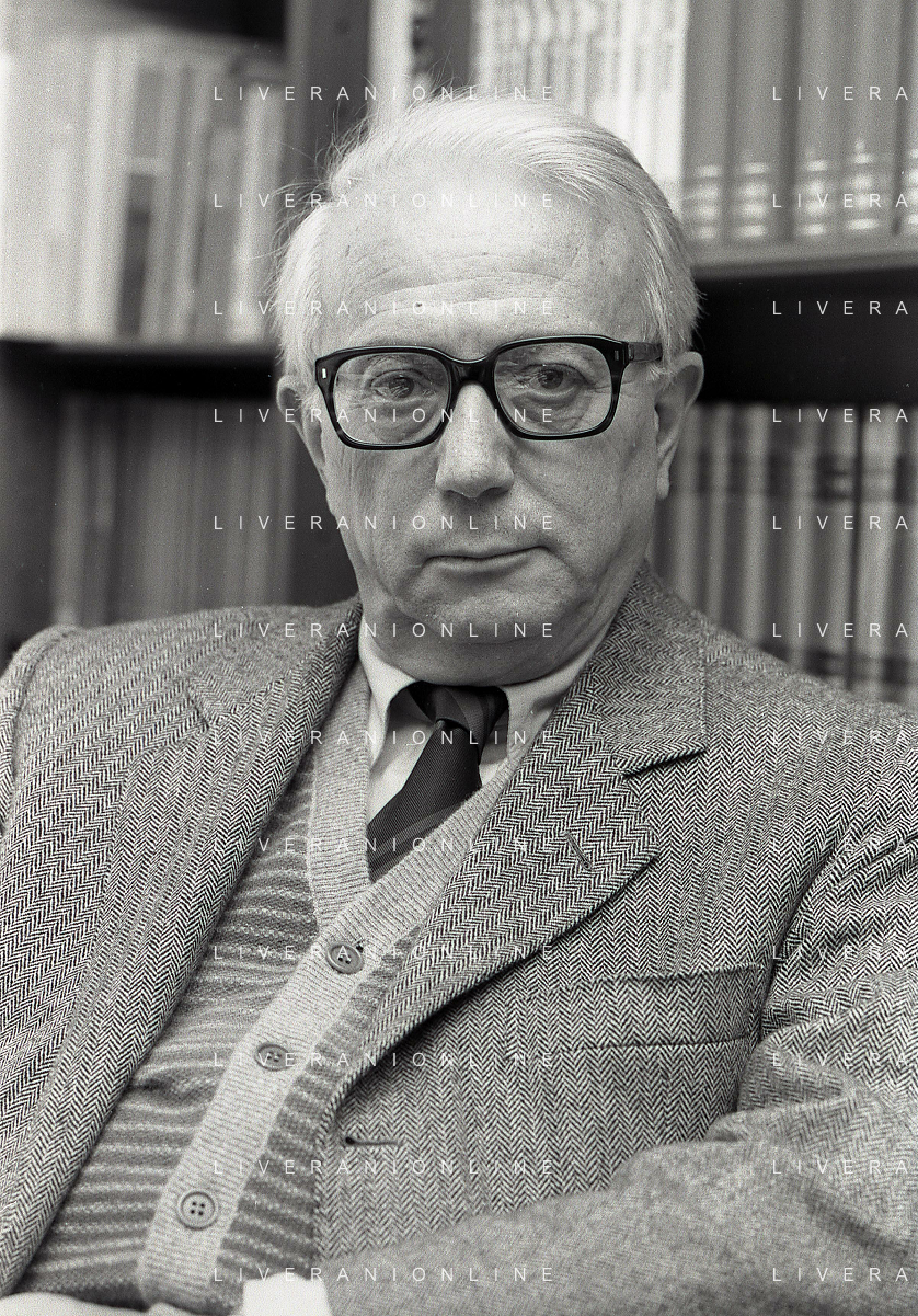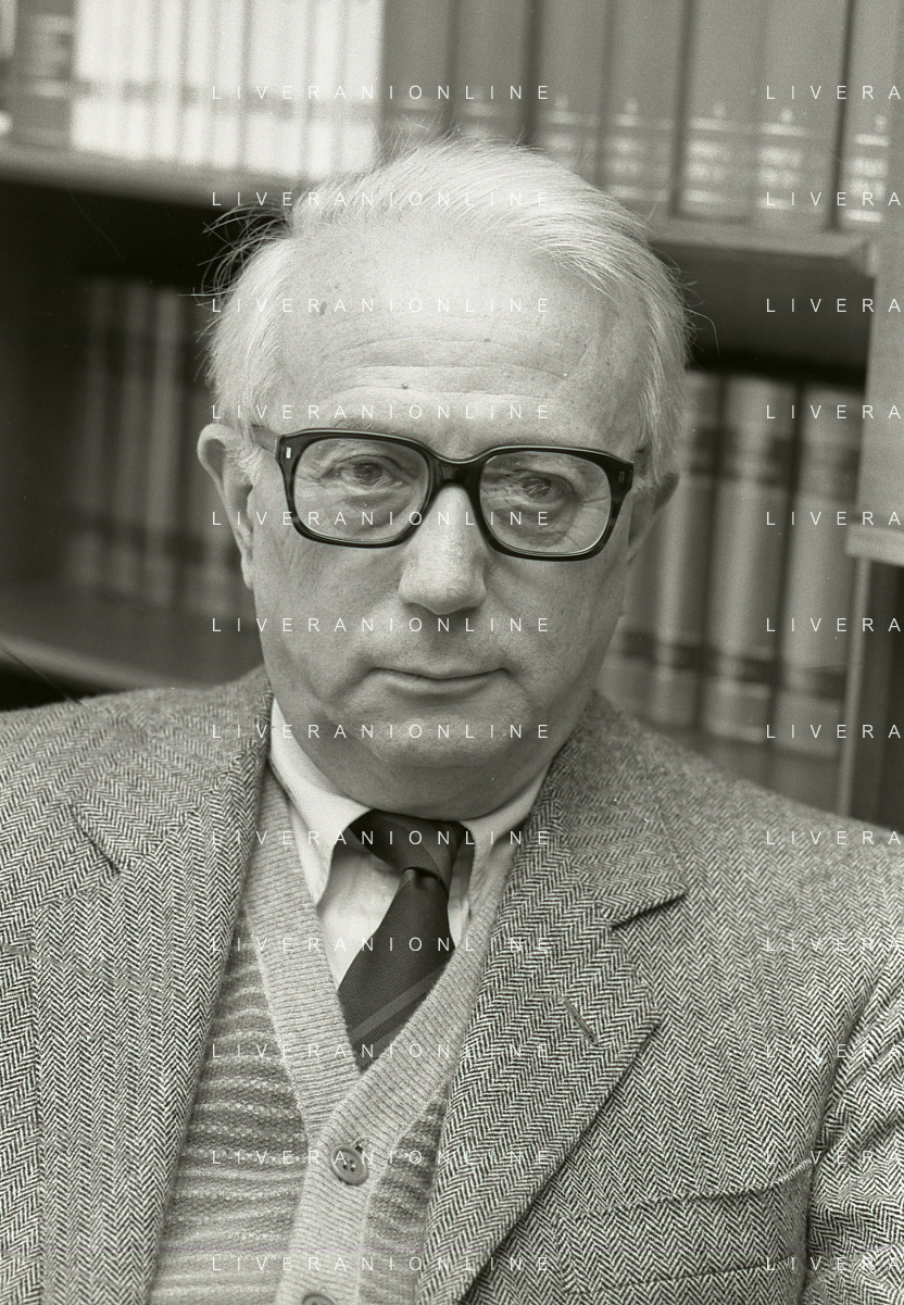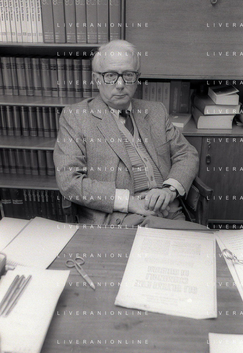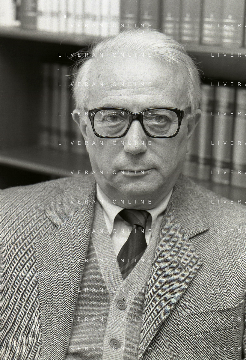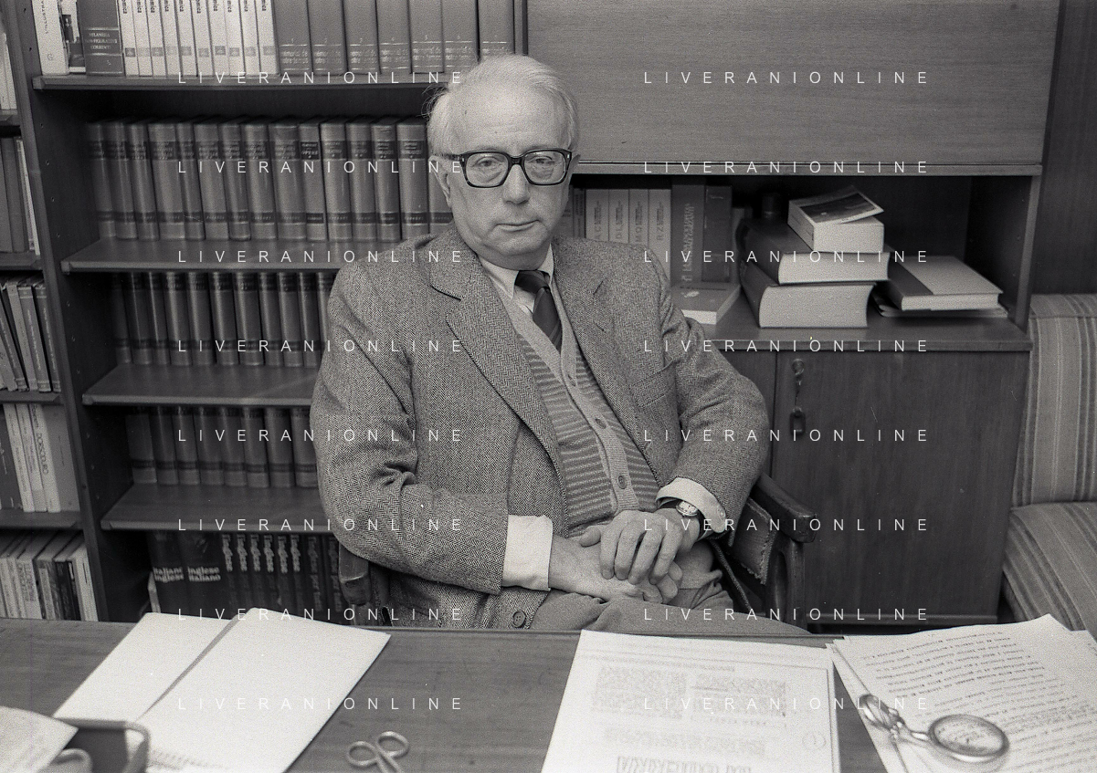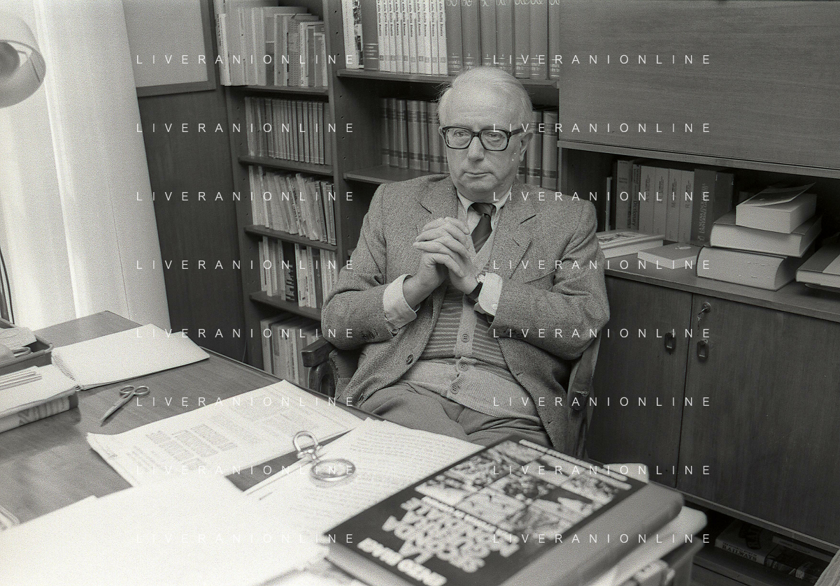 RETROSPETTIVA ENZO BIAGI GIORNALISTA E SCRITTORE E CONDUTTORE TELEVISIVO NELLA FOTO ENZO BIAGI NELL'ANNO 1985 NELLA SUA ABITAZIONE A MILANO AG ALDO LIVERANI SAS