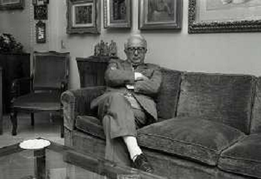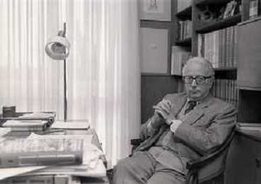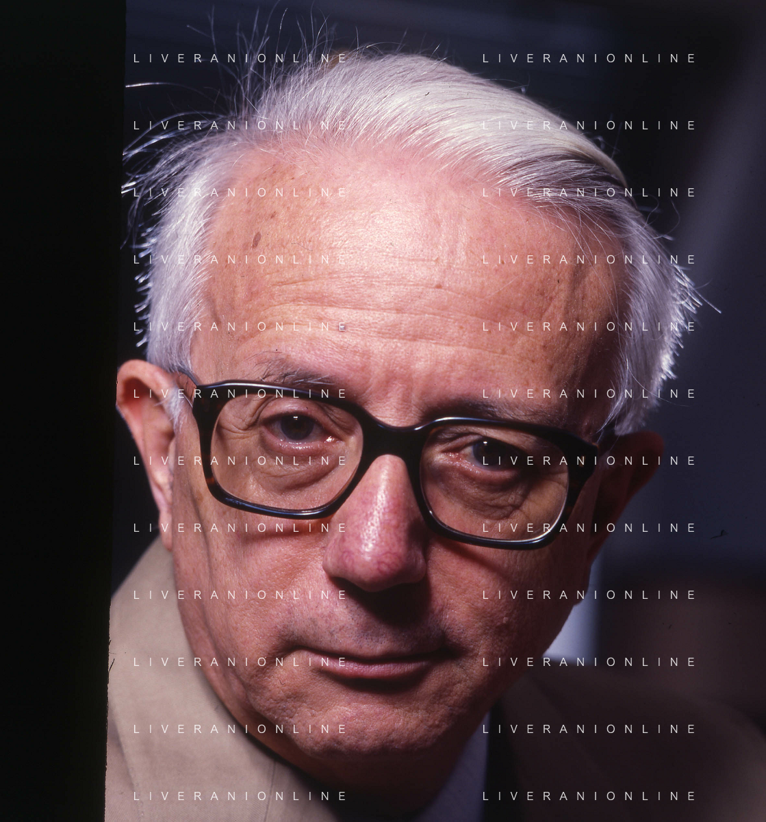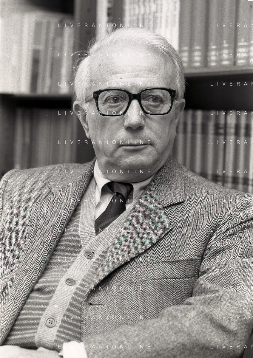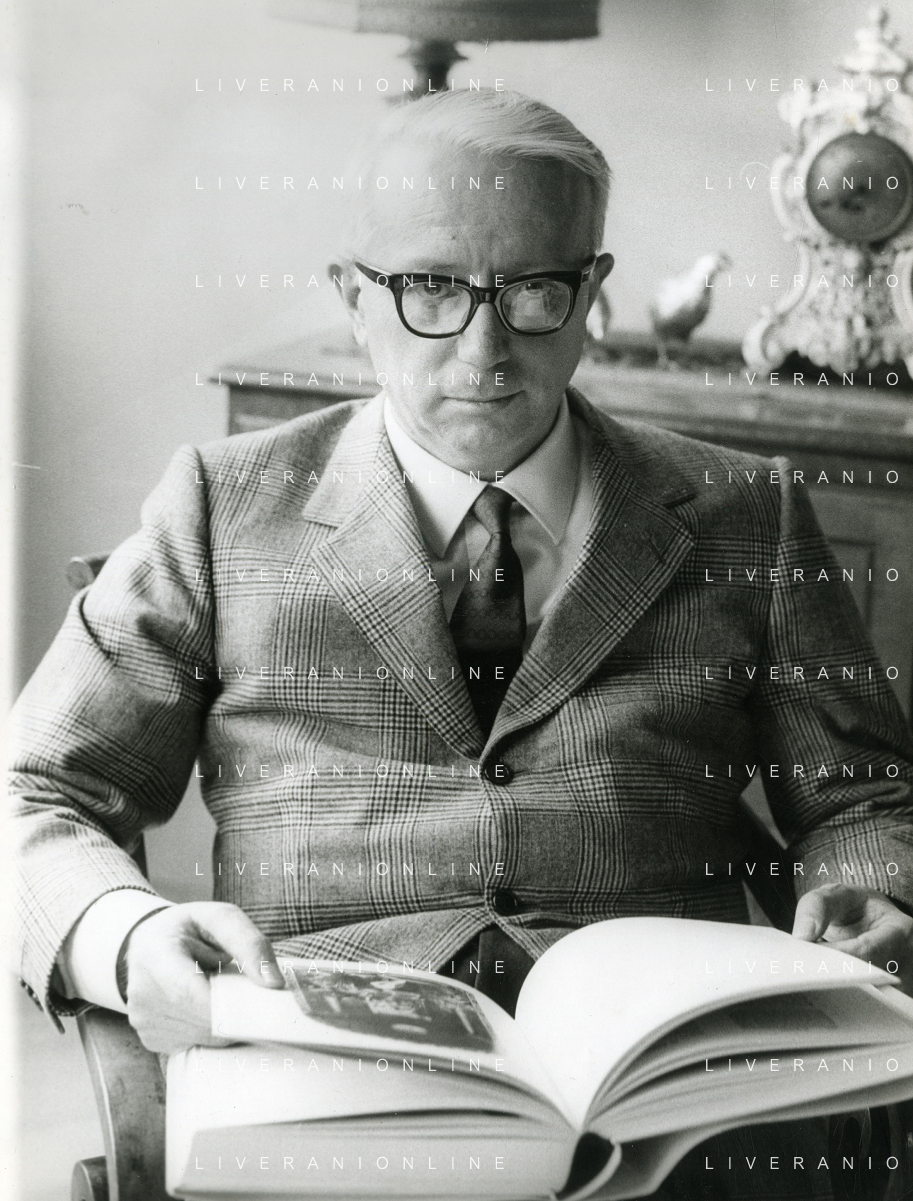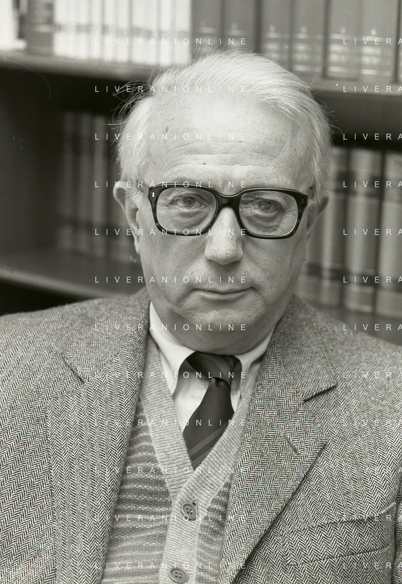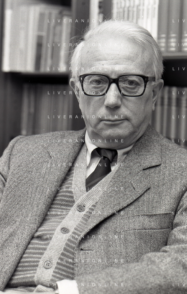 RETROSPETTIVA ENZO BIAGI GIORNALISTA E SCRITTORE E CONDUTTORE TELEVISIVO NELLA FOTO ENZO BIAGI NELL'ANNO 1985 NELLA SUA ABITAZIONE A MILANO AG ALDO LIVERANI SAS