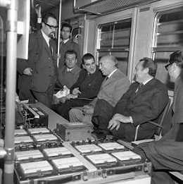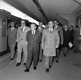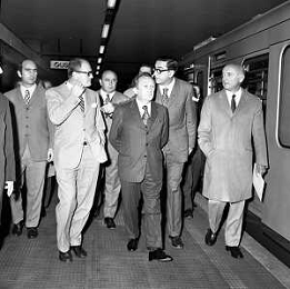RETROSPETTIVA ITALO VIGLIANESI MINISTRO DEI TRASPORTI nella foto ALL'INAUGURAZIONE DEL NUOVO TRONCO DELLA METROPOLITANA DI MILANO E LA NUOVA TRATTA 'GOBBA-GORGONZOLA' NELL'ANNO 1970 /AGENZIA ALDO LIVERANI SAS
