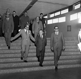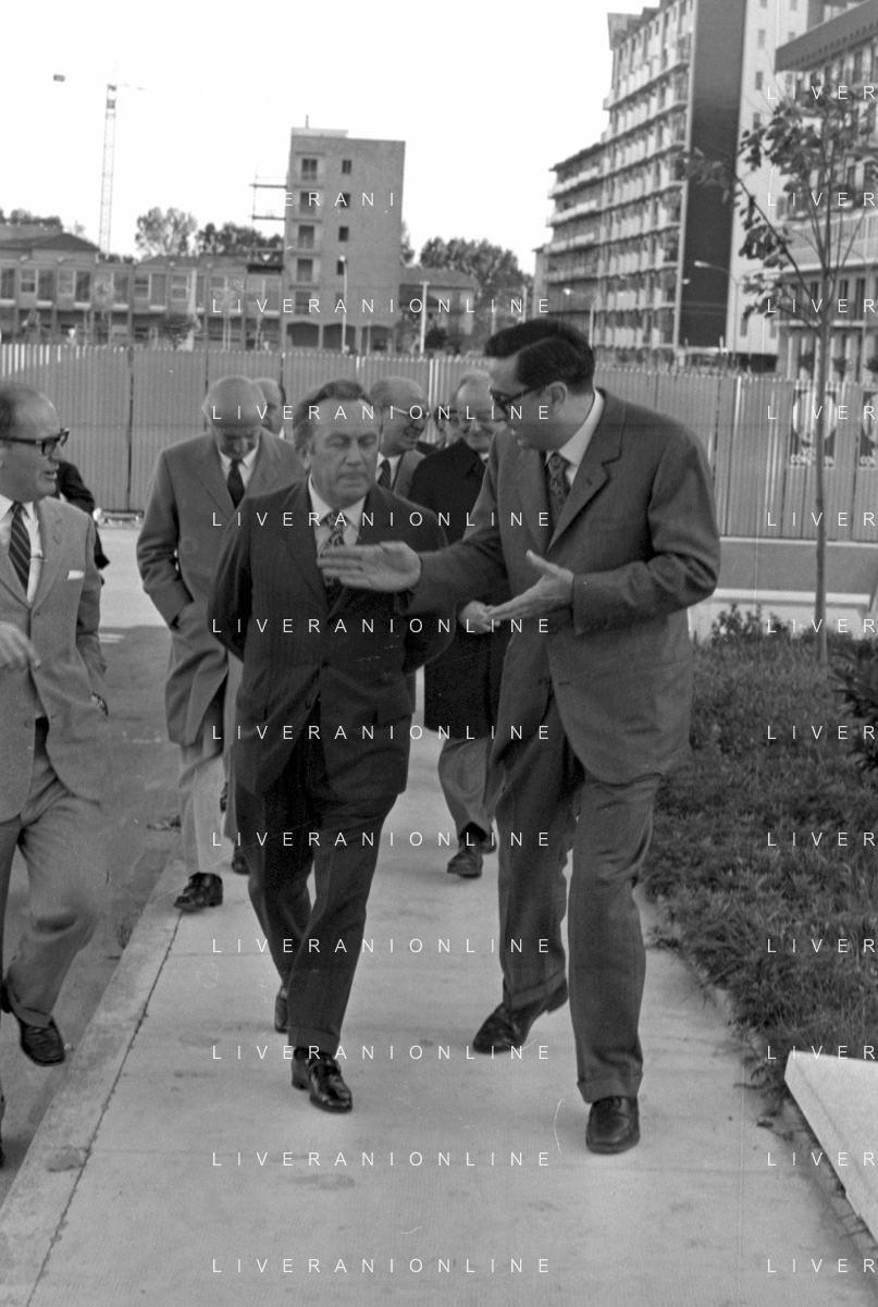 RETROSPETTIVA ITALO VIGLIANESI MINISTRO DEI TRASPORTI nella foto ALL'INAUGURAZIONE DEL NUOVO TRONCO E LA NUOVA TRATTA DELLA METROPOLITANA DI MILANO 'GOBBA-GORGONZOLA' NELL'ANNO 1970 CON IL SINDACO DI MILANO ALDO ANIASI /AGENZIA ALDO LIVERANI SAS