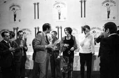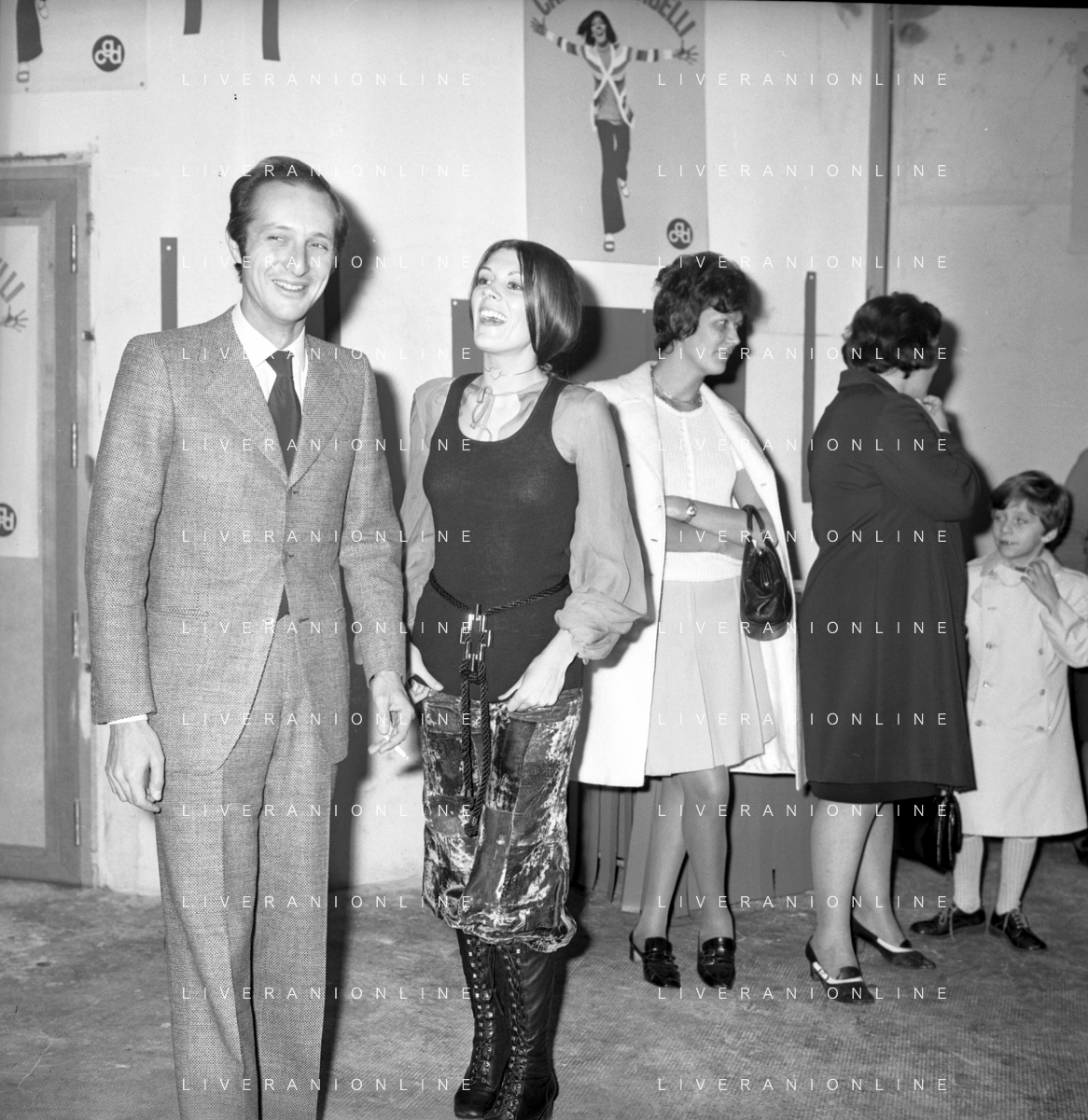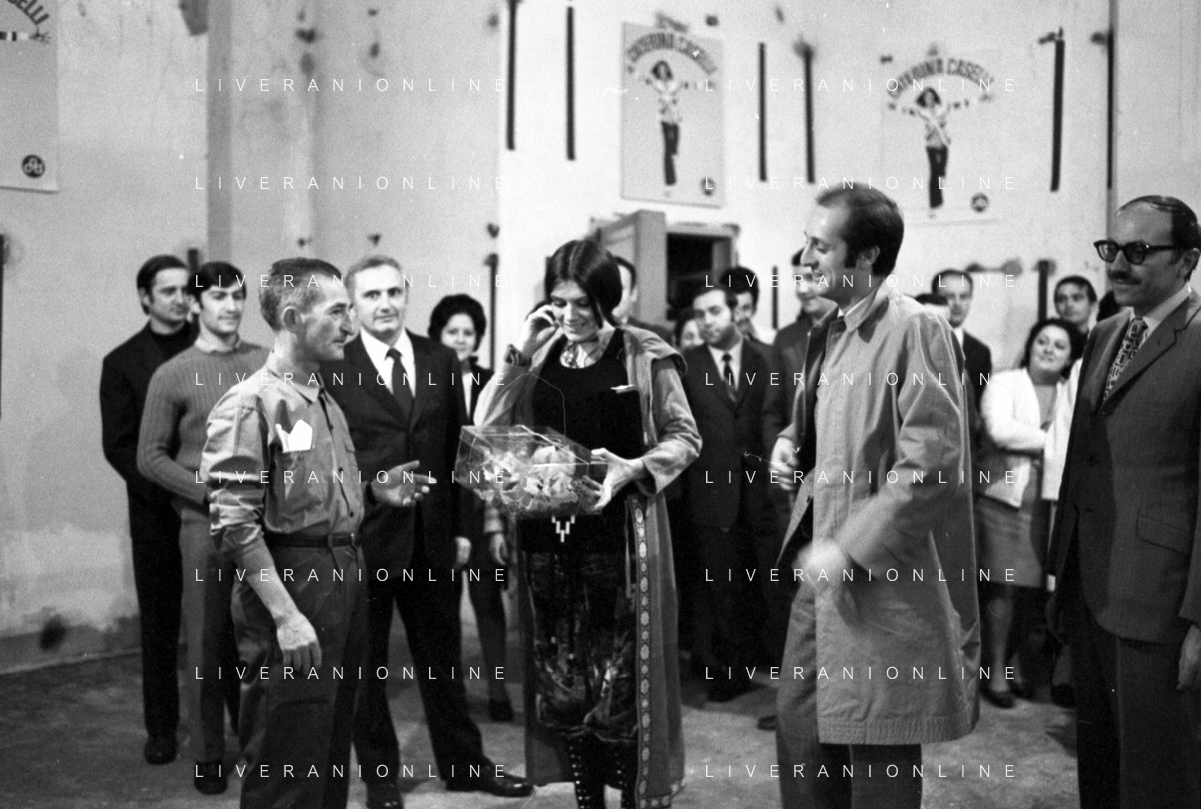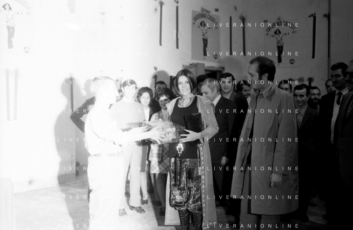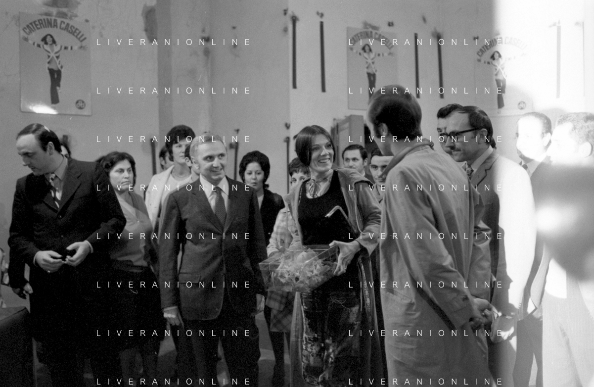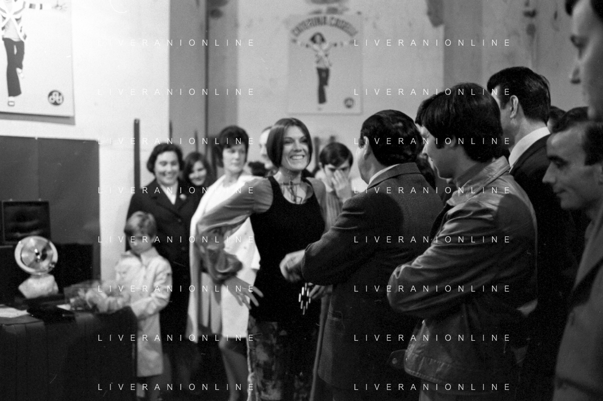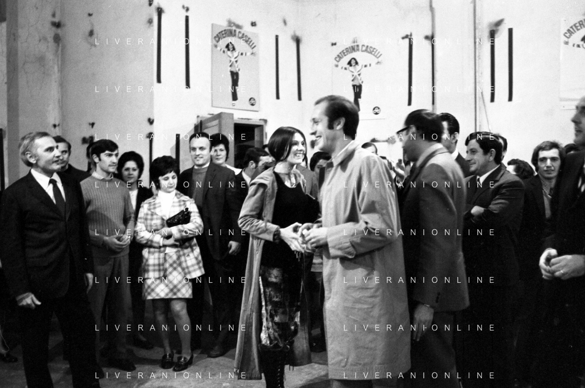 RETROSPETTIVA CATERINA CASELLI CANTANTE NELLA FOTO CON IL MARITO PIERO SUGAR INCONTRANO I LAVORATORI DELLA CASA DISCOGRAFICA CBS A MILANO OTTOBRE 1970 /AGENZIA ALDO LIVERANI SAS