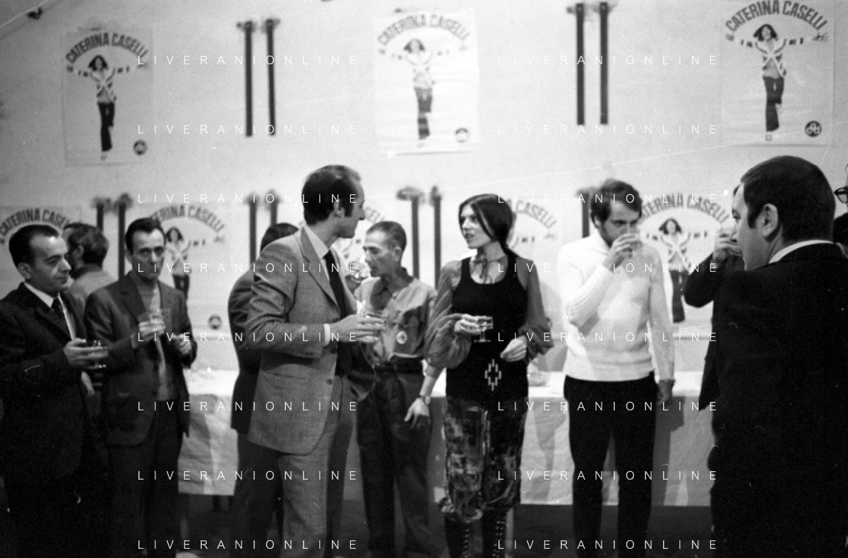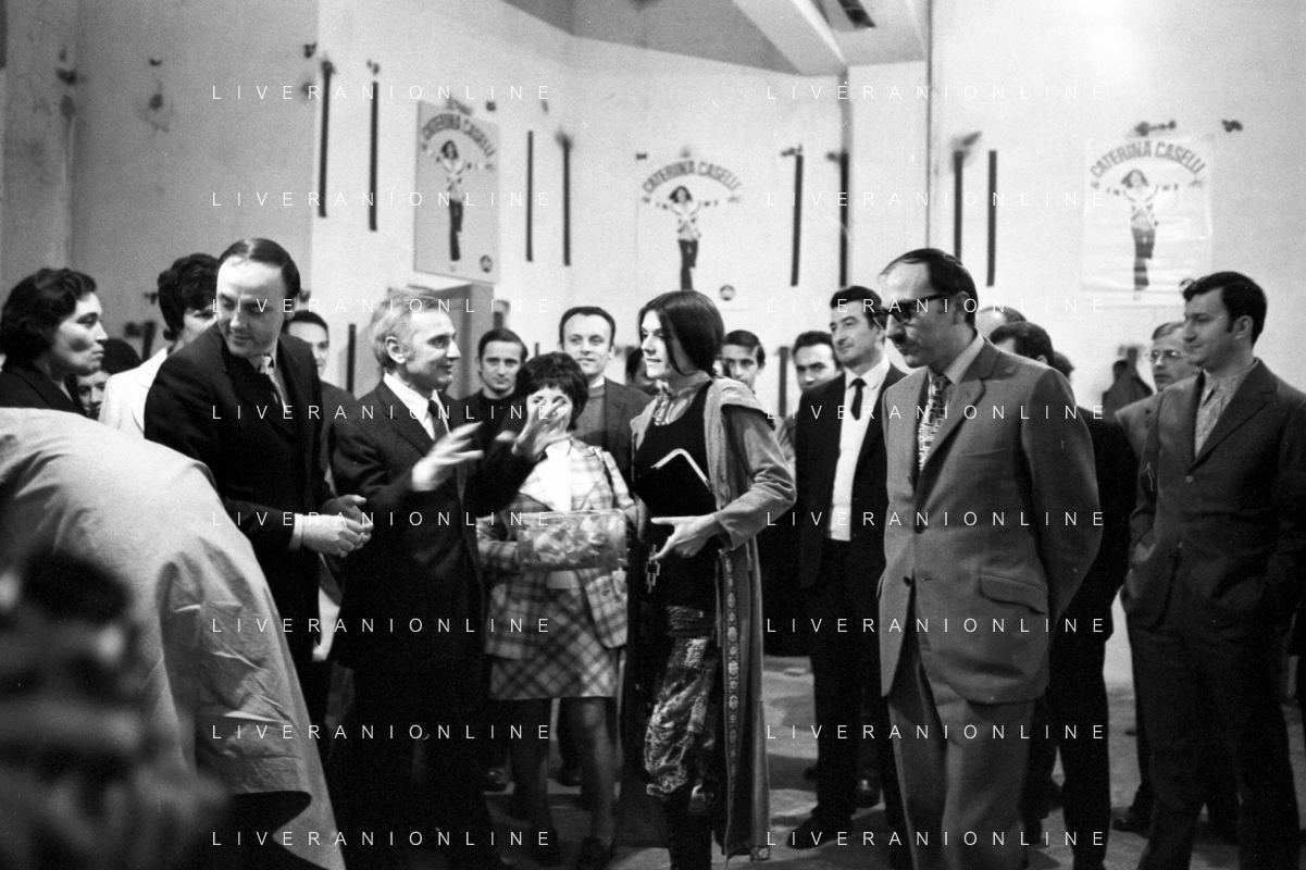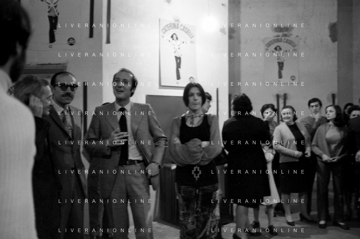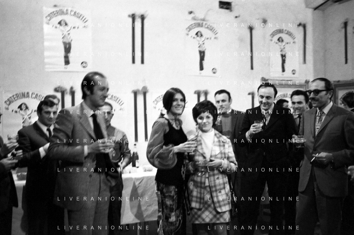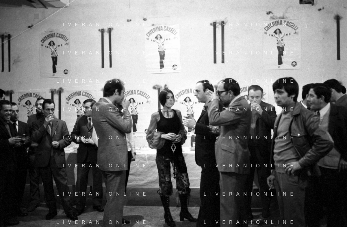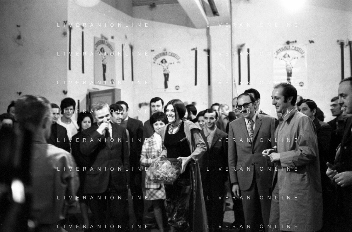 RETROSPETTIVA CATERINA CASELLI CANTANTE NELLA FOTO CON IL MARITO PIERO SUGAR INCONTRANO I LAVORATORI DELLA CASA DISCOGRAFICA CBS A MILANO OTTOBRE 1970 /AGENZIA ALDO LIVERANI SAS