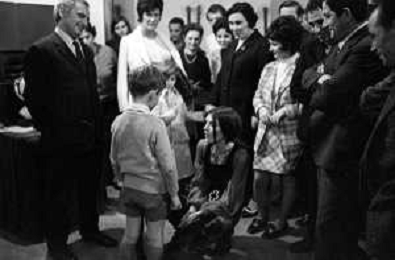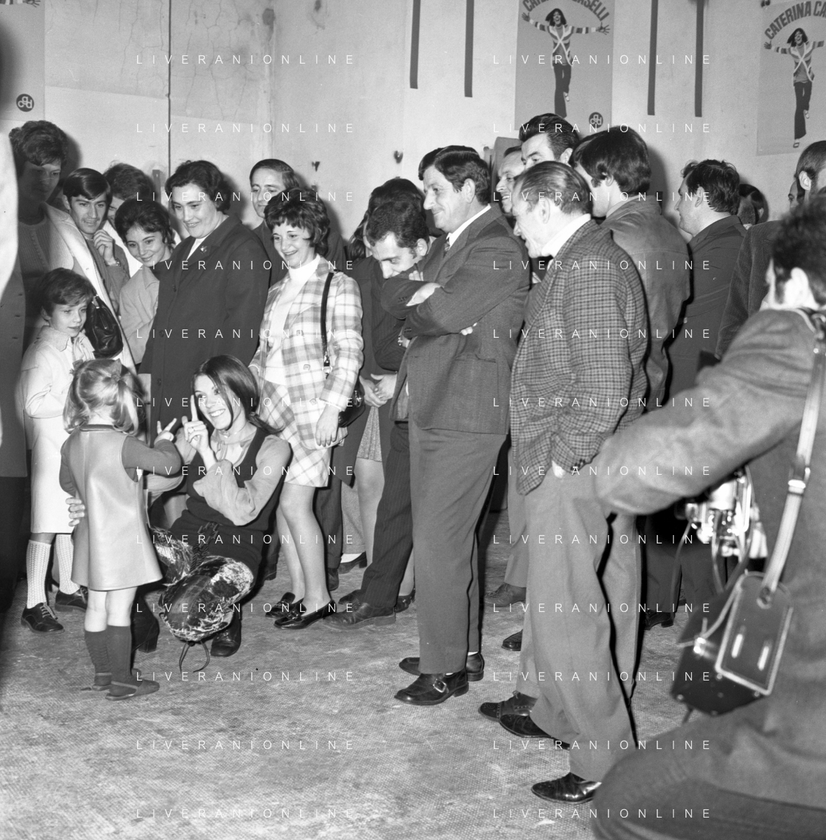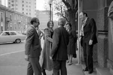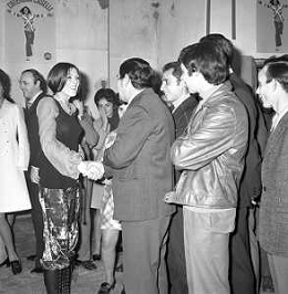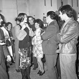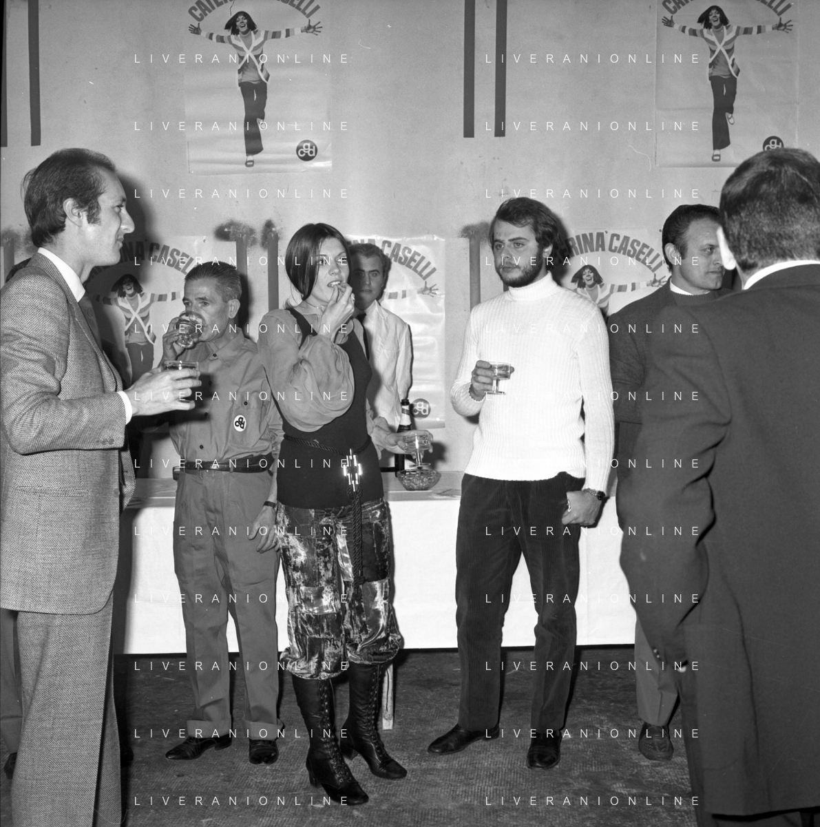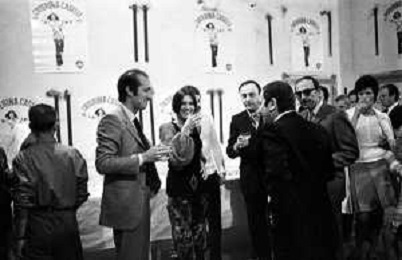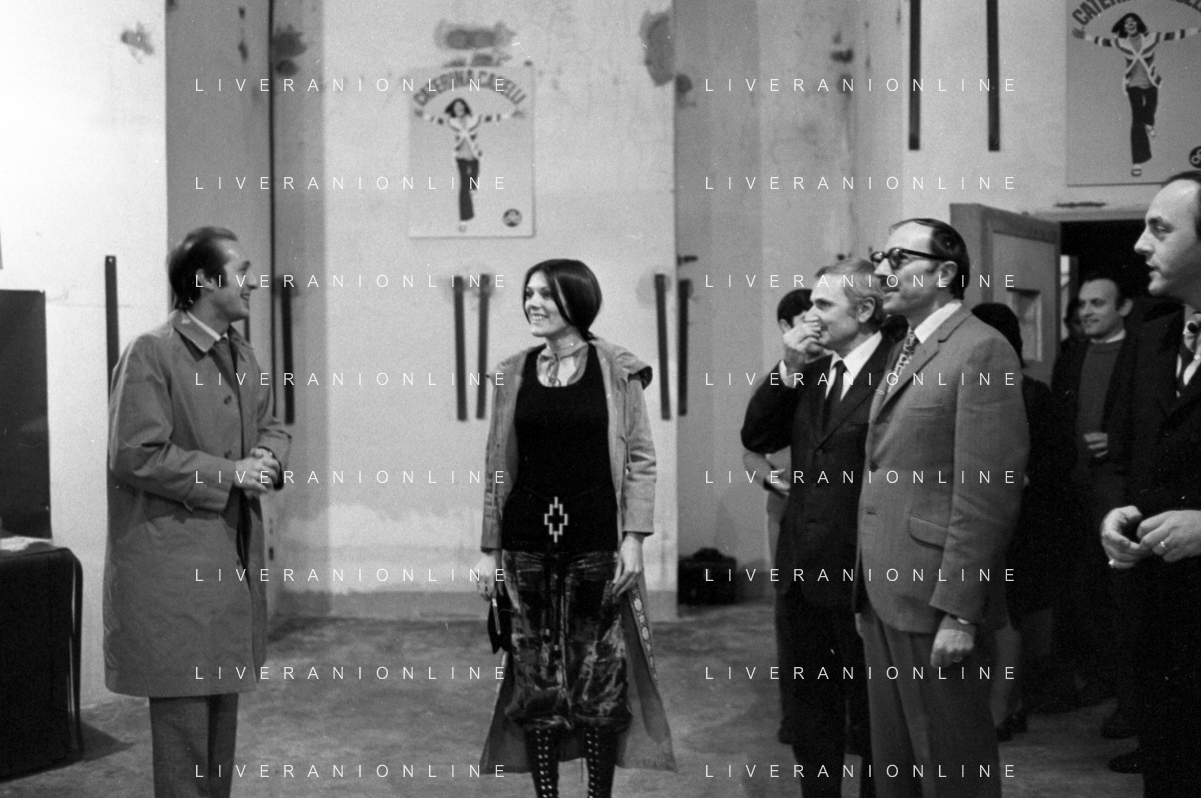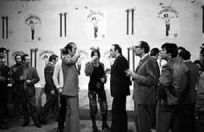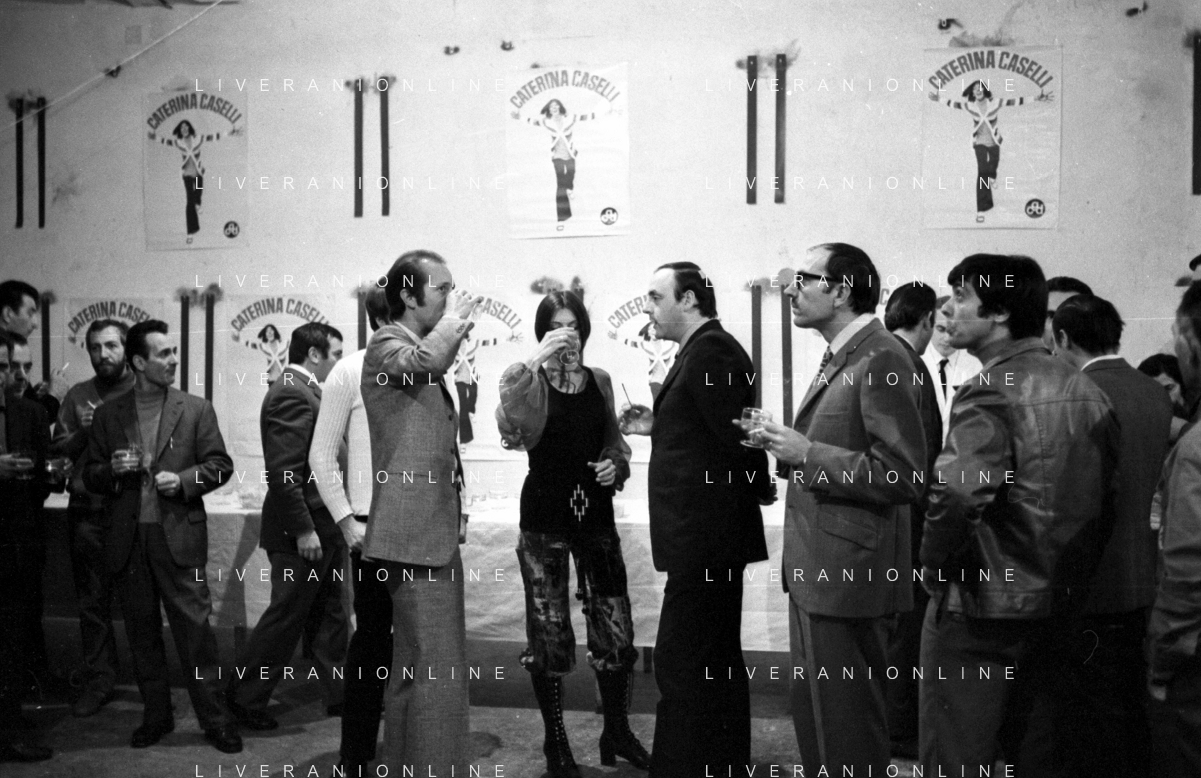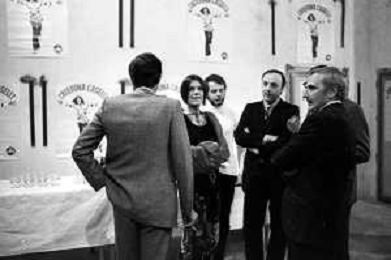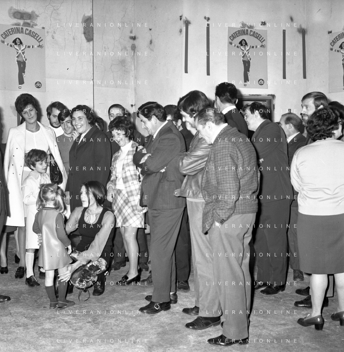 RETROSPETTIVA CATERINA CASELLI CANTANTE NELLA FOTO CON IL MARITO PIERO SUGAR INCONTRANO I LAVORATORI DELLA CASA DISCOGRAFICA CBS A MILANO OTTOBRE 1970 /AGENZIA ALDO LIVERANI SAS