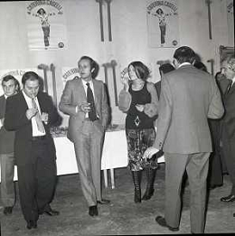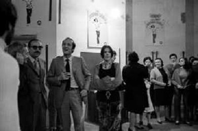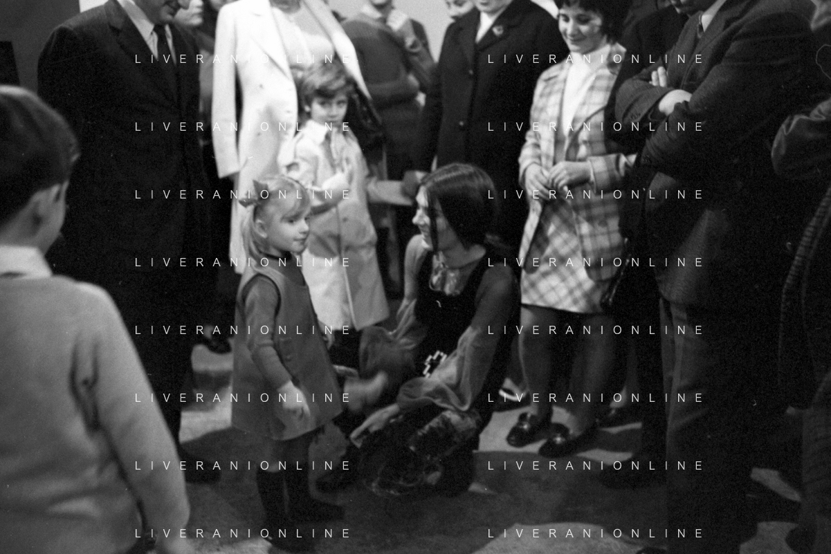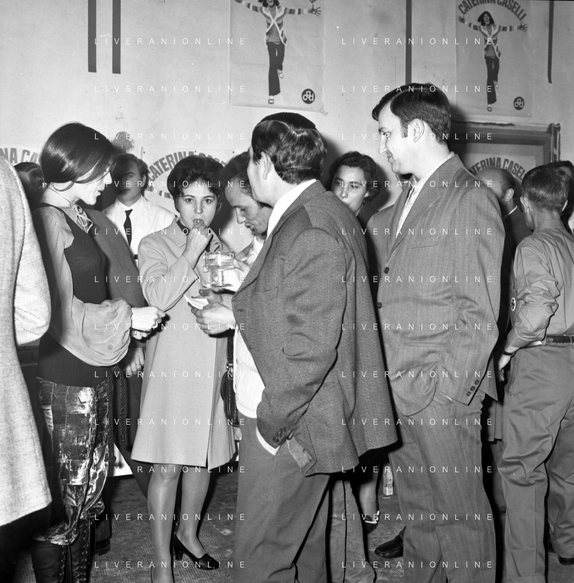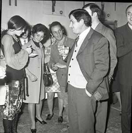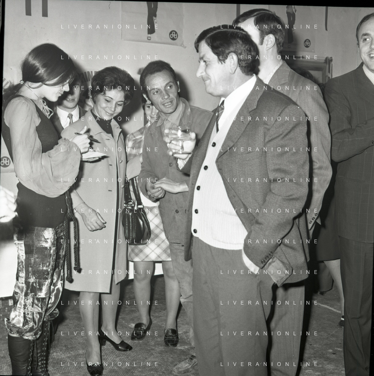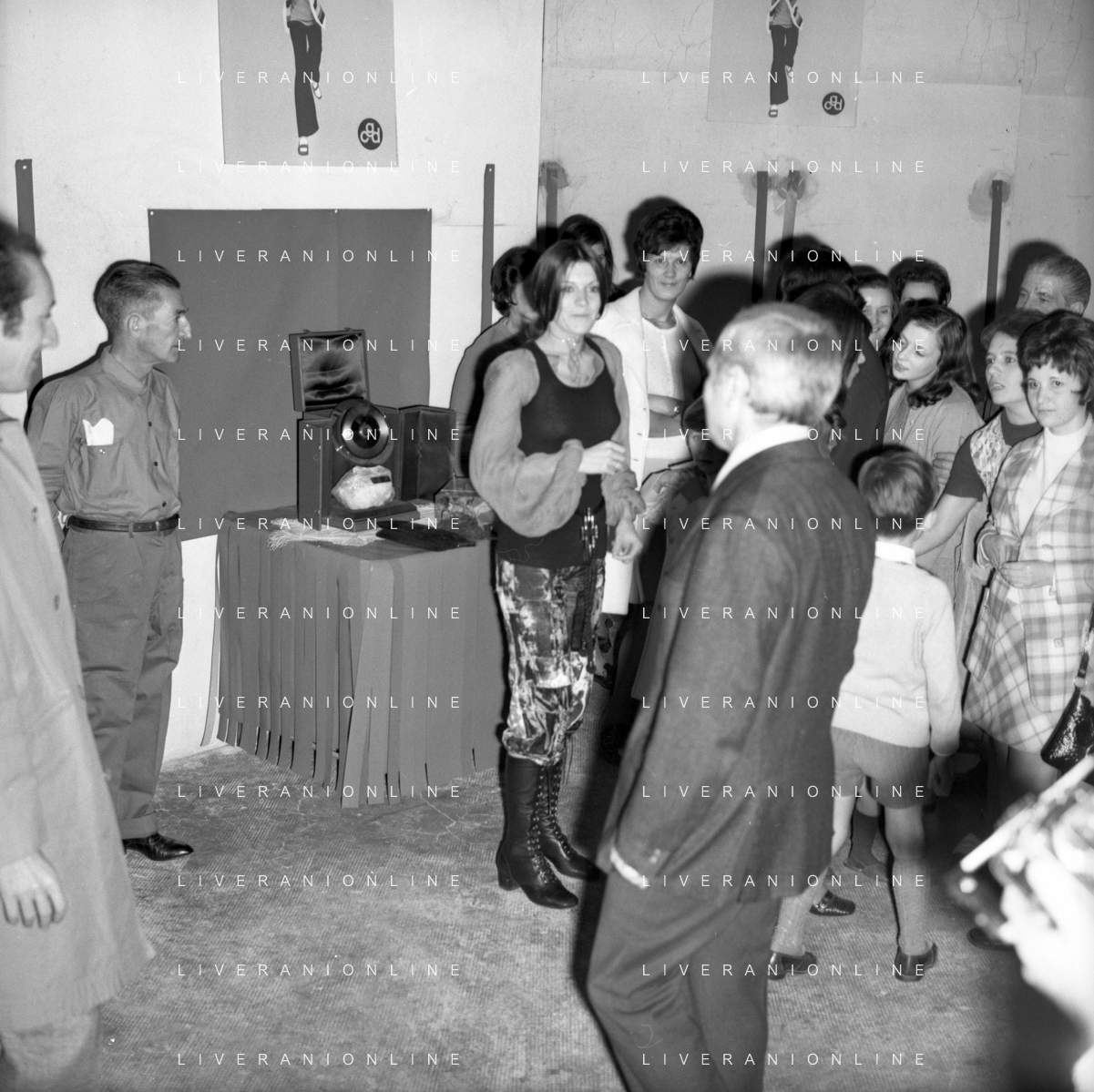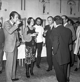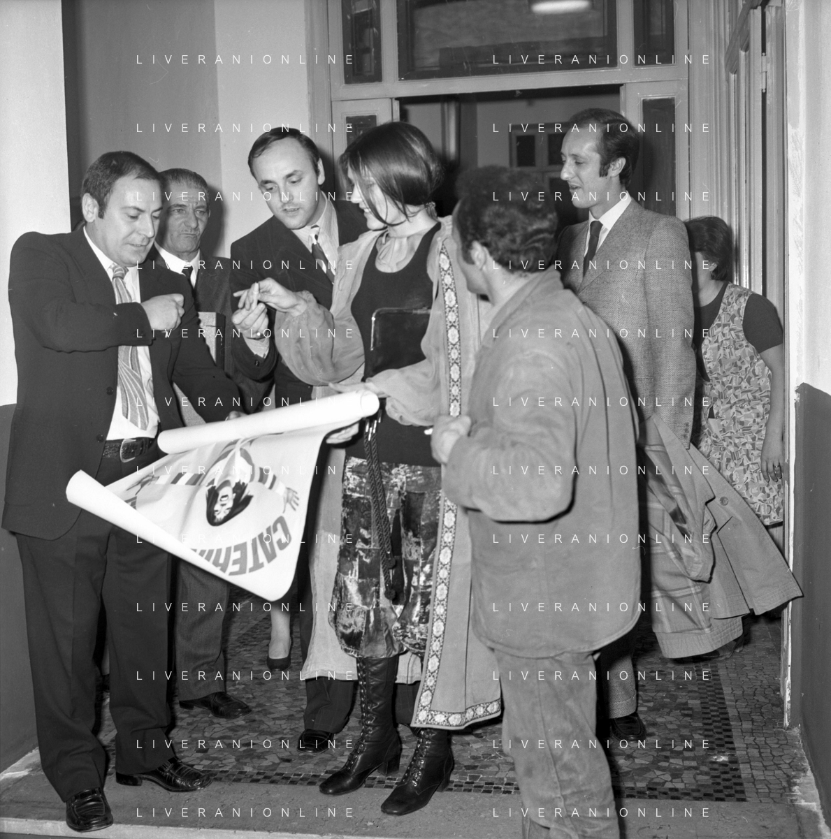 RETROSPETTIVA CATERINA CASELLI CANTANTE NELLA FOTO CON IL MARITO PIERO SUGAR INCONTRANO I LAVORATORI DELLA CASA DISCOGRAFICA CBS A MILANO OTTOBRE 1970 /AGENZIA ALDO LIVERANI SAS