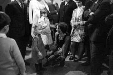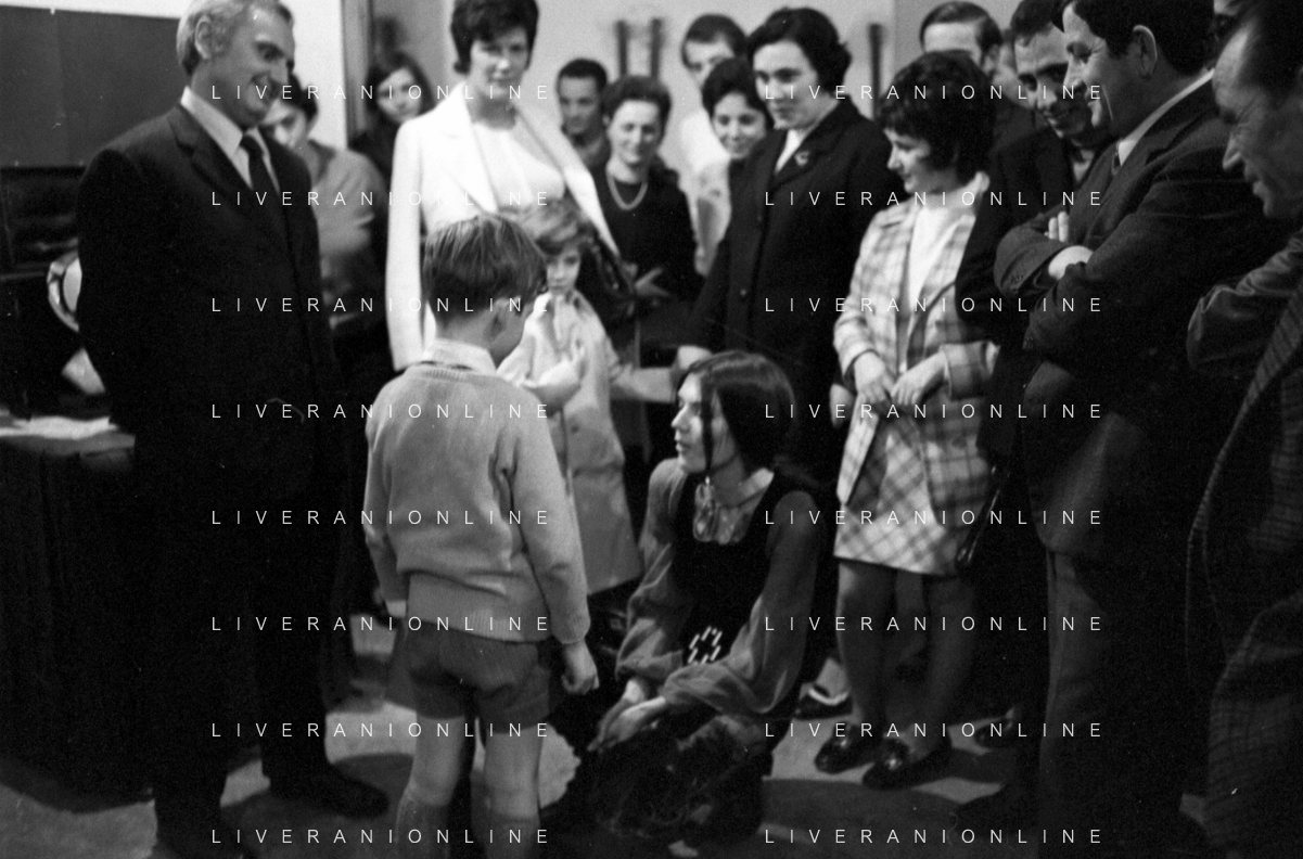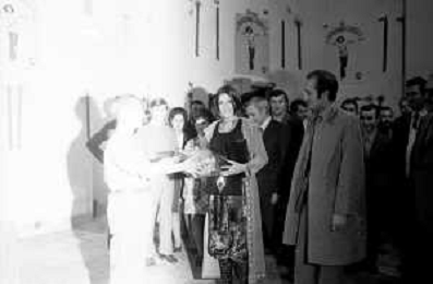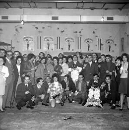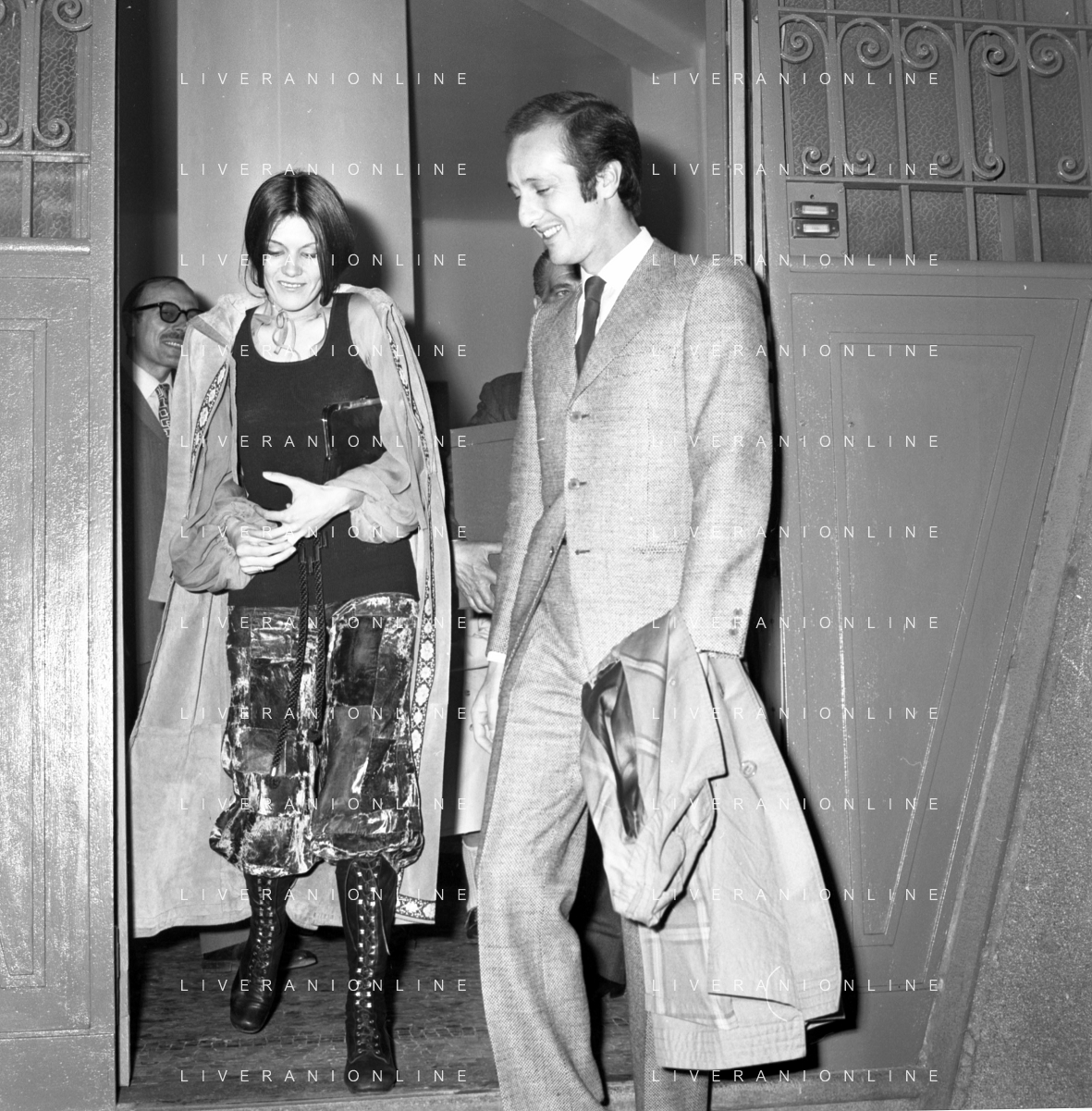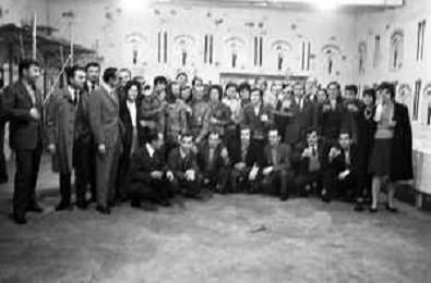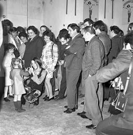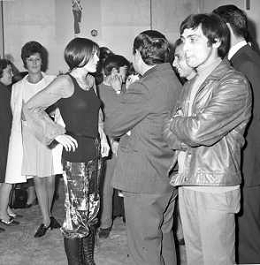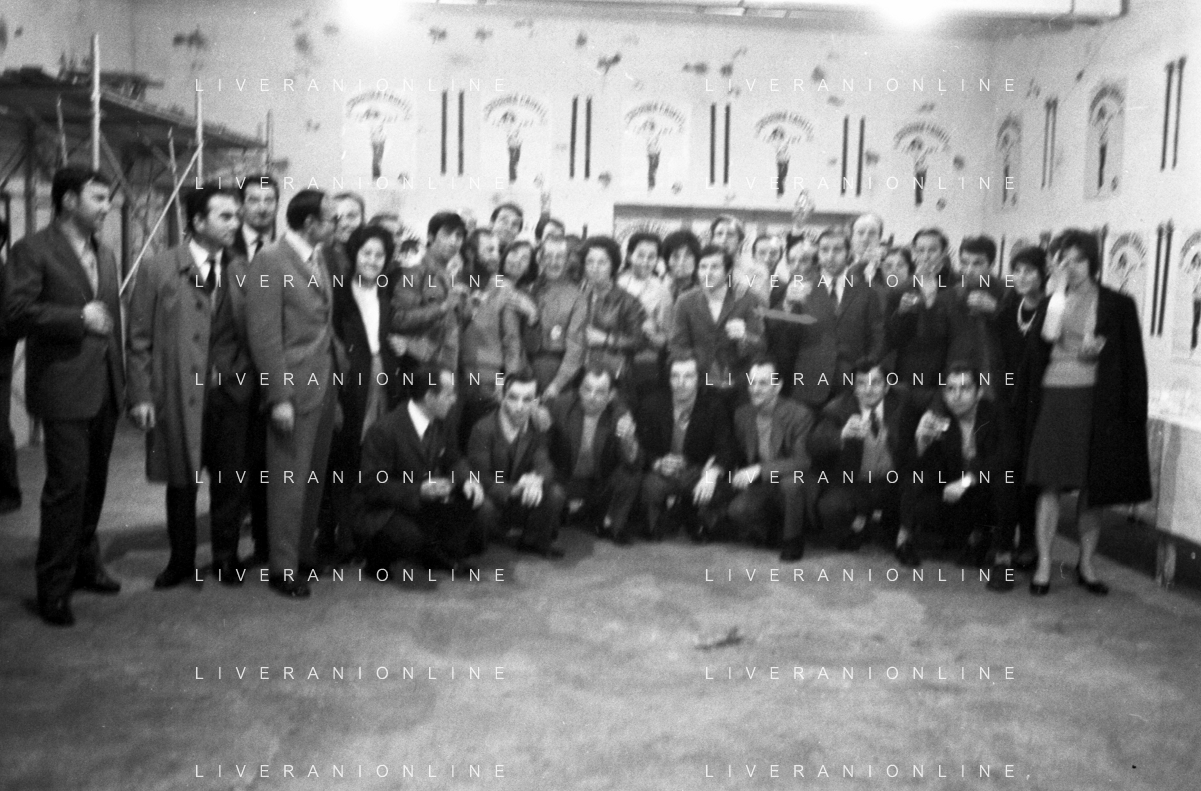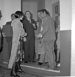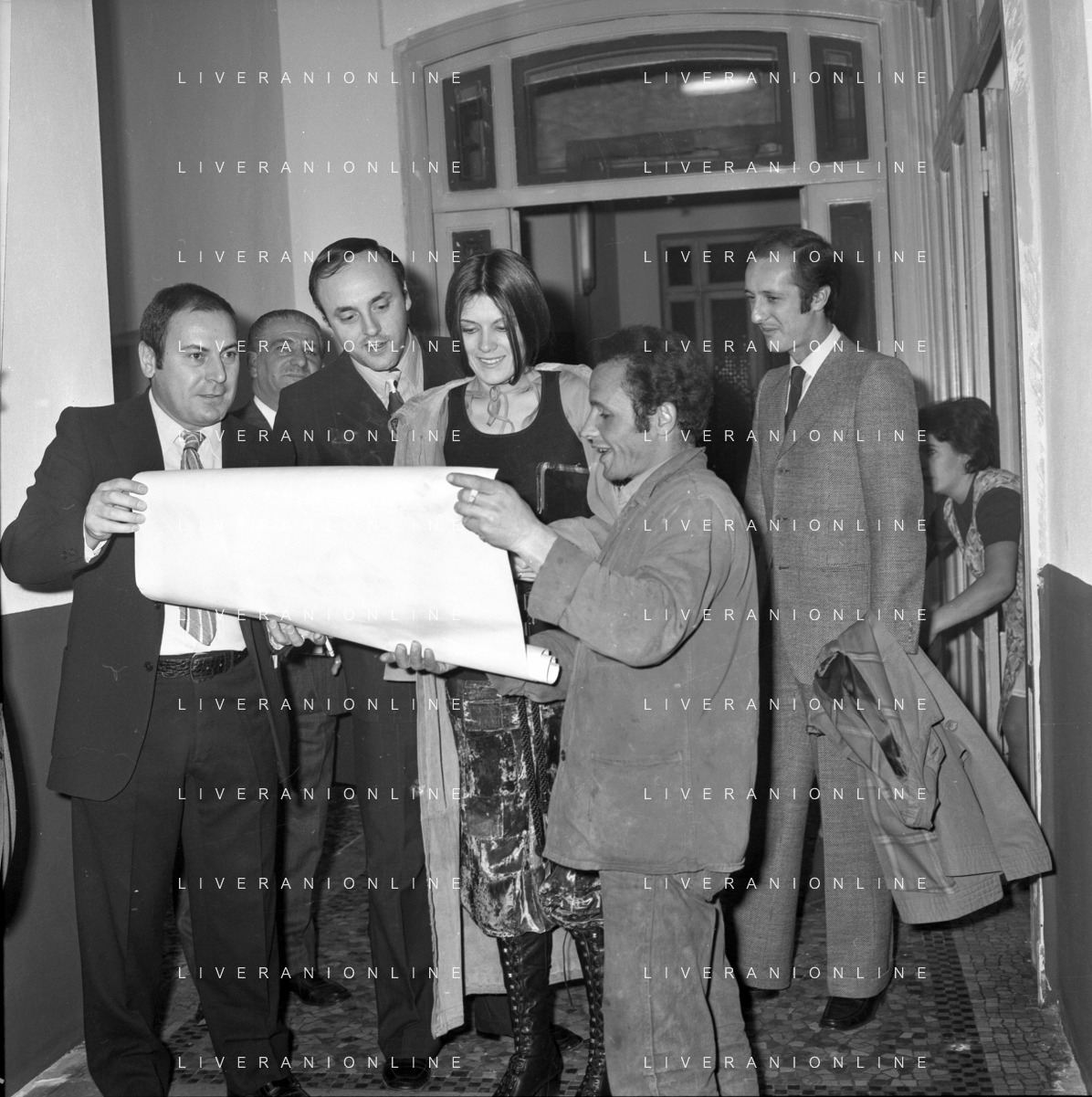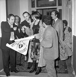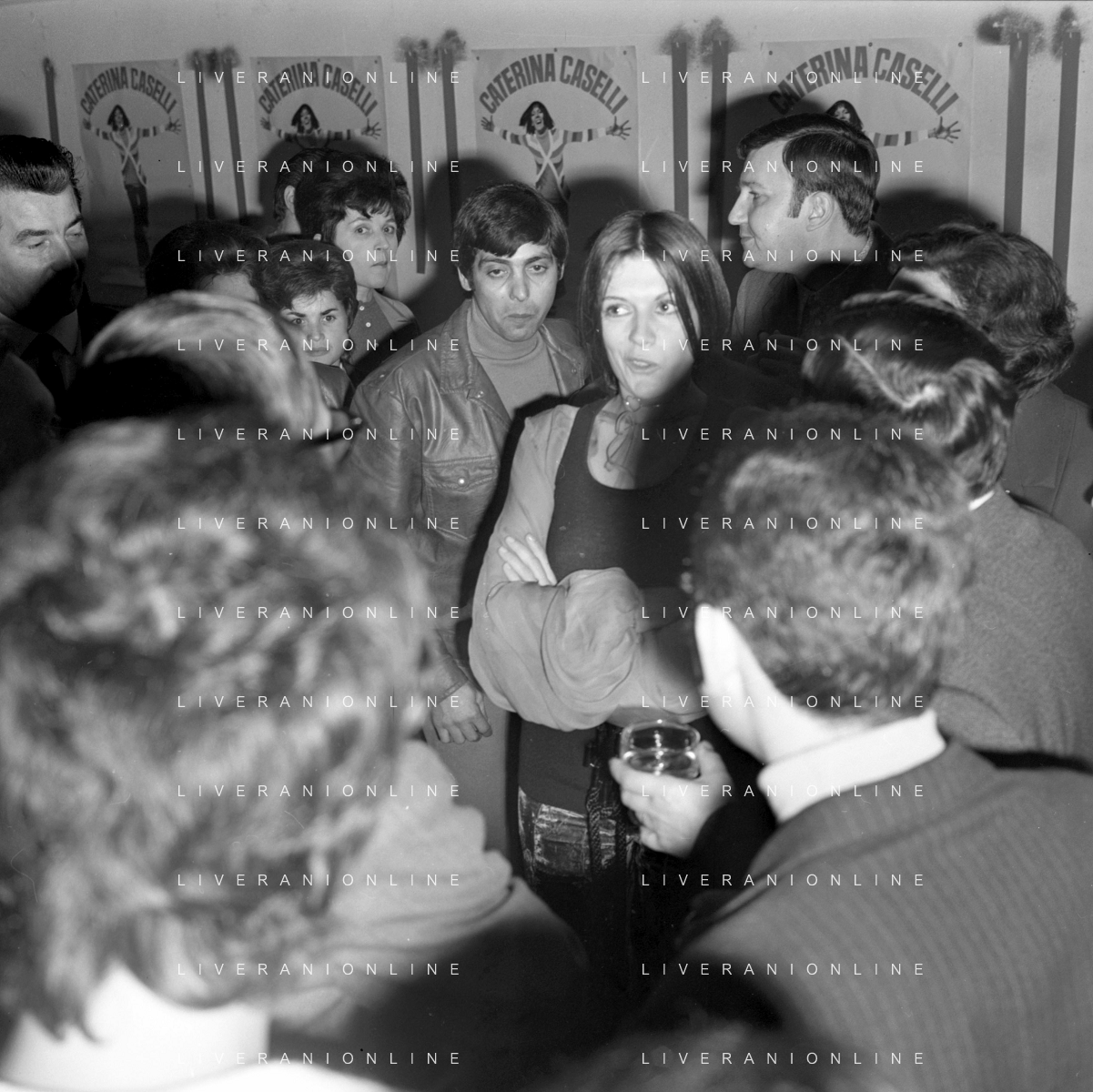 RETROSPETTIVA CATERINA CASELLI CANTANTE NELLA FOTO CON IL MARITO PIERO SUGAR INCONTRANO I LAVORATORI DELLA CASA DISCOGRAFICA CBS A MILANO OTTOBRE 1970 /AGENZIA ALDO LIVERANI SAS