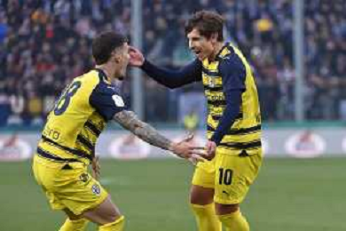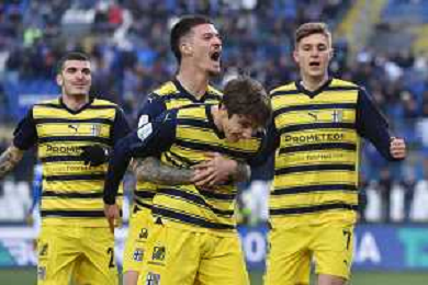 TVRG Brescia vs Parma nella foto esultanza Parma dopo il gol dell'1 a 0 Brescia 26-12-2023 Stadio Mario Rigamonti Campionato Serie BKT - 19a giornata foto Roberto Garavaglia/ag. Aldo Liverani sas/AGENZIA ALDO LIVERANI SAS