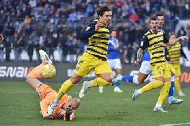 TVRG Brescia vs Parma nella foto Adrian Bernabe' Garcia (Parma) occasione da gol per il possibile 3 a 0 Brescia 26-12-2023 Stadio Mario Rigamonti Campionato Serie BKT - 19a giornata foto Roberto Garavaglia/ag. Aldo Liverani sas/AGENZIA ALDO LIVERANI SAS