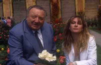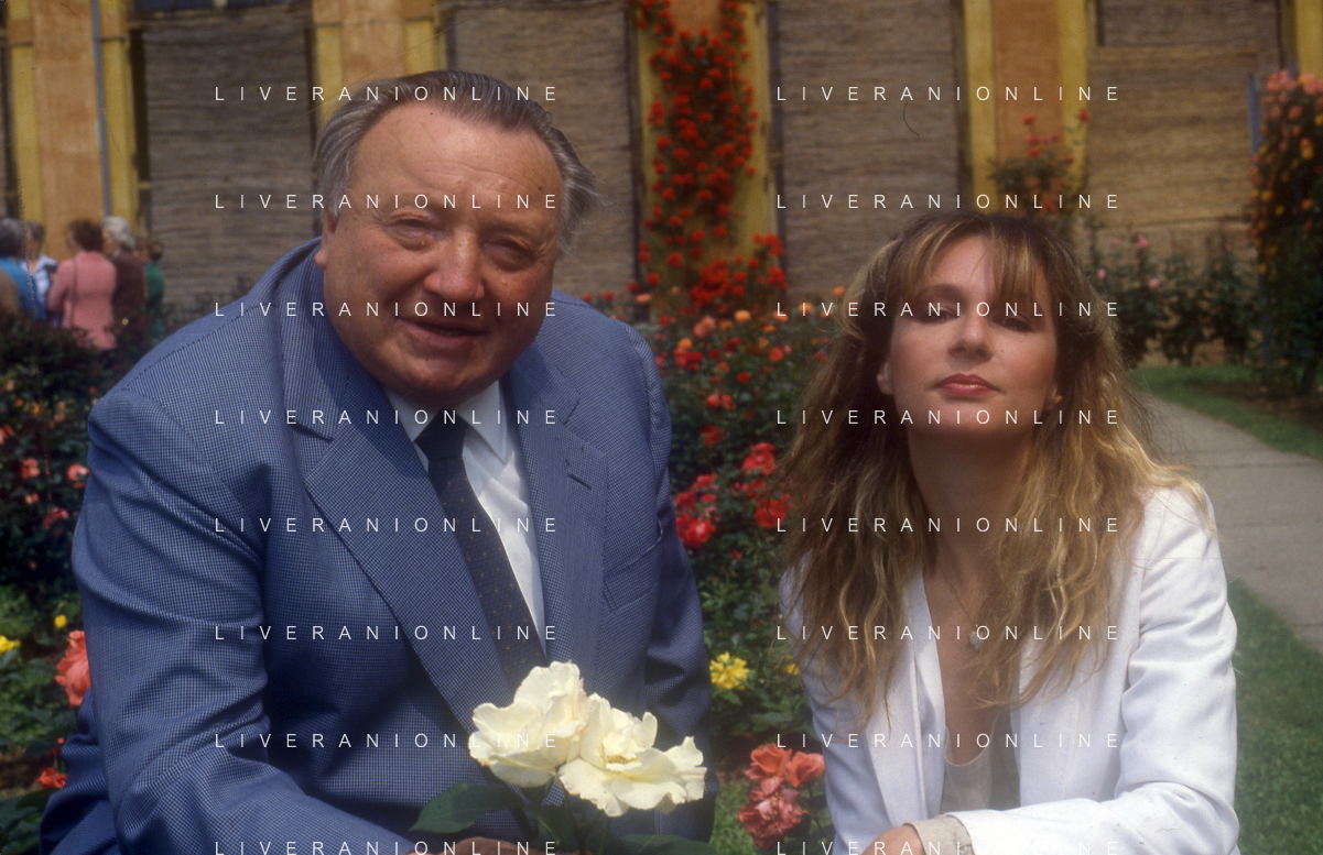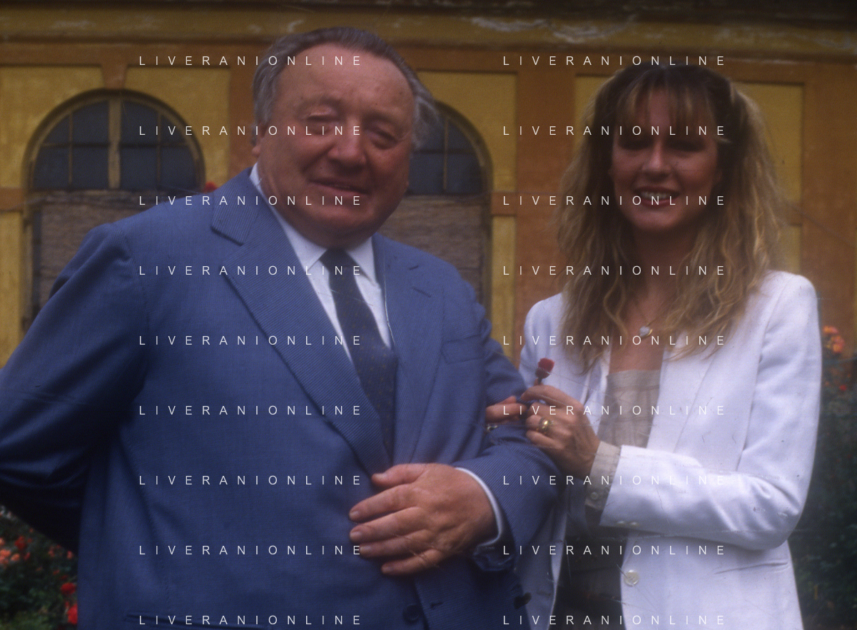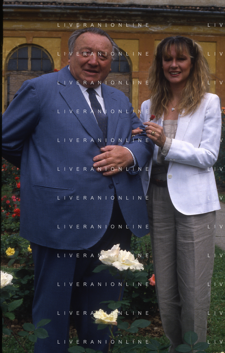 DIAP-RETROSPETTIVA LORETTA GOGGI-CANTANTE-ATTRICE-IMITATRICE-CONDUTTRICE TELEVISIVA E SCRITTRICE NELLA FOTO LORETTA GOGGI CON NISO FUMAGALLI NELL'ANNO 1983 A MONZA PER LA PREMIAZIONE DELLA ROSA DELL'ANNO AG ALDO LIVERANI SAS
